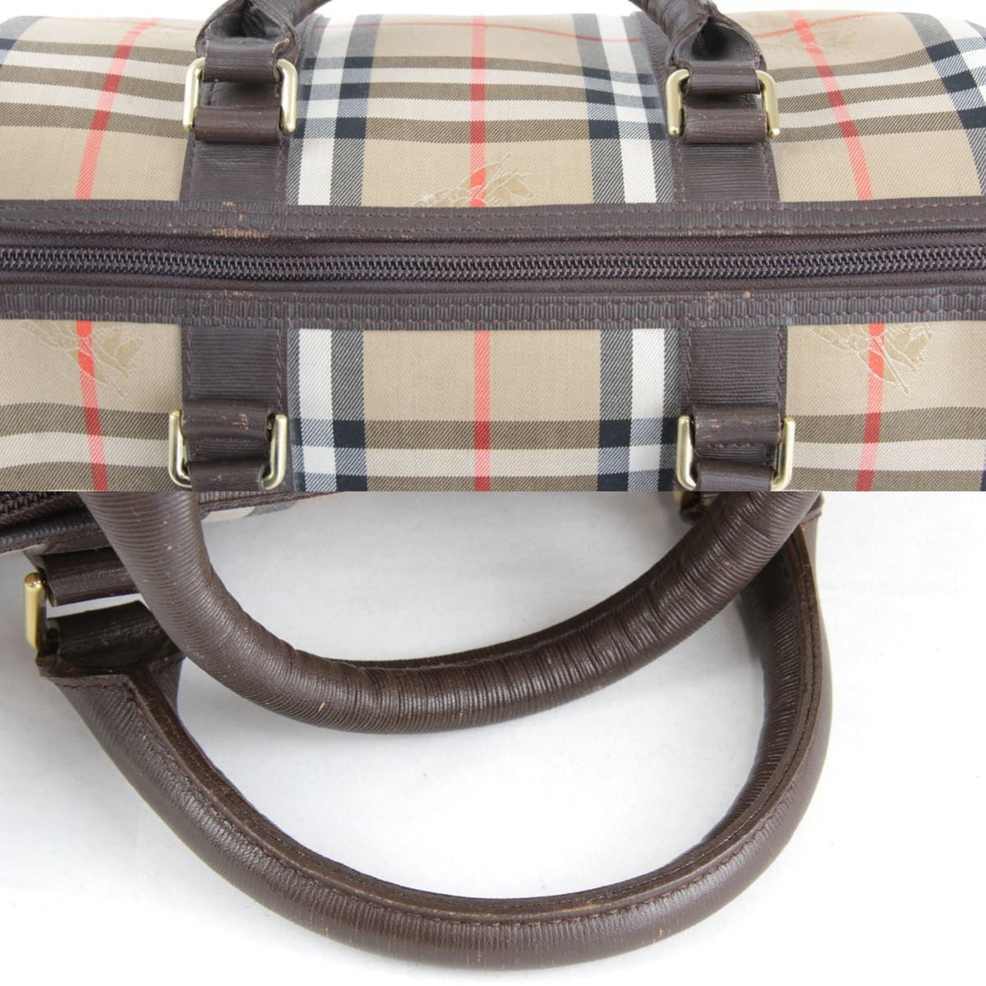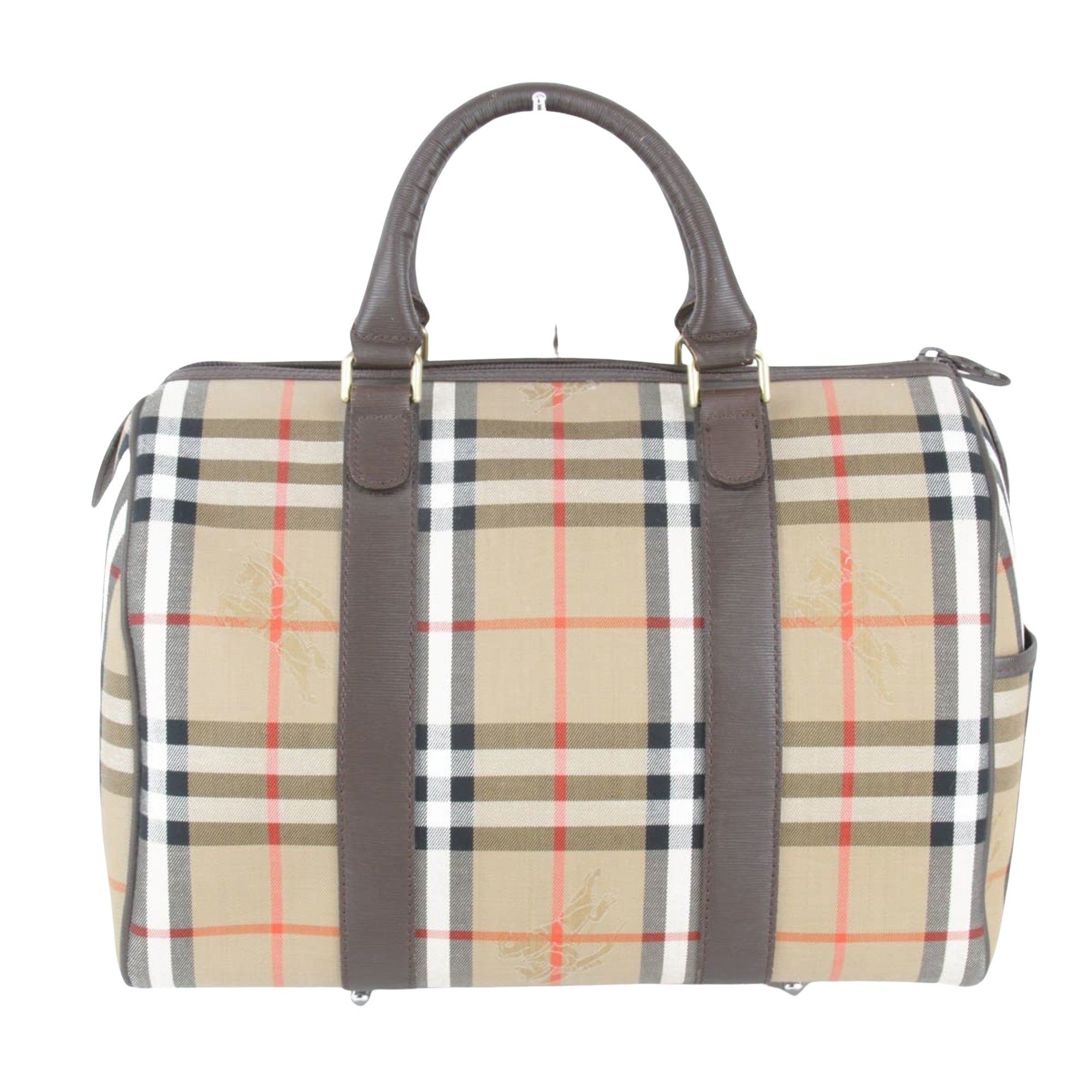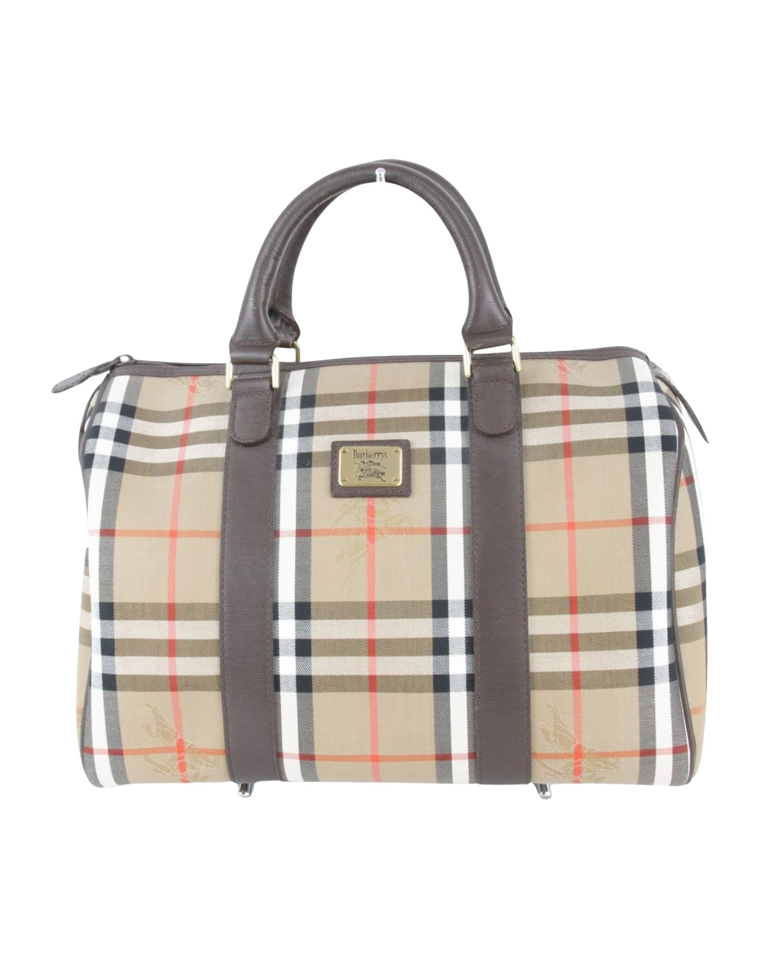 Brand: Burberry Model: Nova Check Color: Brown Material: Canvas Inclusions: / Dimensions: 25cm x 29cm x 14cm Serial number: NA Condition: AB - good condition. Presenting the Burberry Nova Check Boston bag a classic piece for the stylish woman. Crafted from signature Burberry canvas in brown this bag exudes elegance. Despite moderate dirt and traces of use it remains a timeless accessory. The design features a zipper closure for security and convenience. However there are some signs of wear including cracks on the handle peeling on the inside and lint balls in the inner pocket. Additionally there is sun damage evident on the overall outside. These minor flaws do not diminish the overall appeal of this iconic Burberry piece making it a must-have for any fashion enthusiast. We recommend that you look at all the pictures before making your purchase to ensure that you are satisfied with the condition of the item.