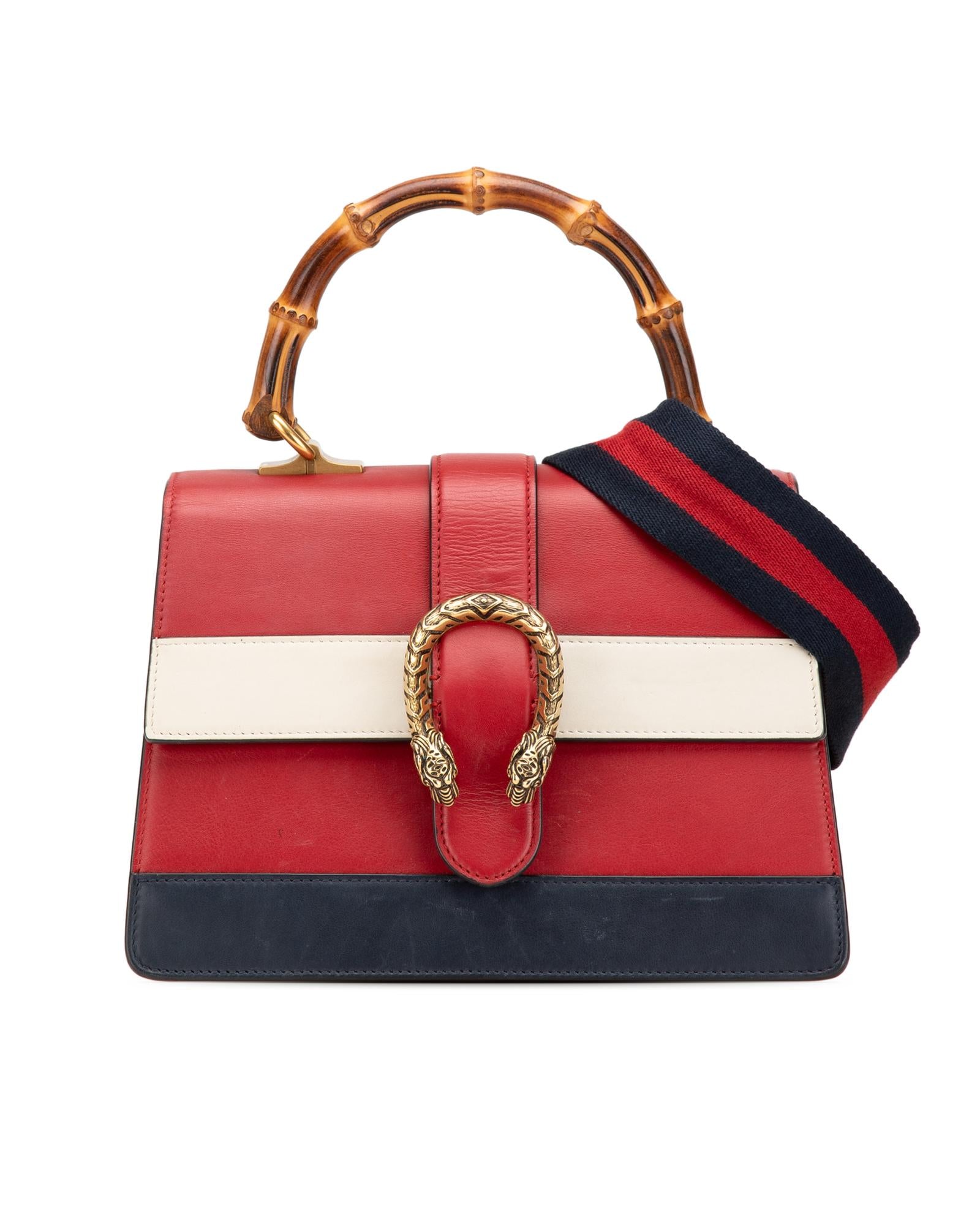 The Dionysus satchel features a leather body a bamboo top handle a detachable flat strap a front flap with a magnetic closure interior zip and slip compartments and interior slip pockets.Brand: Gucci