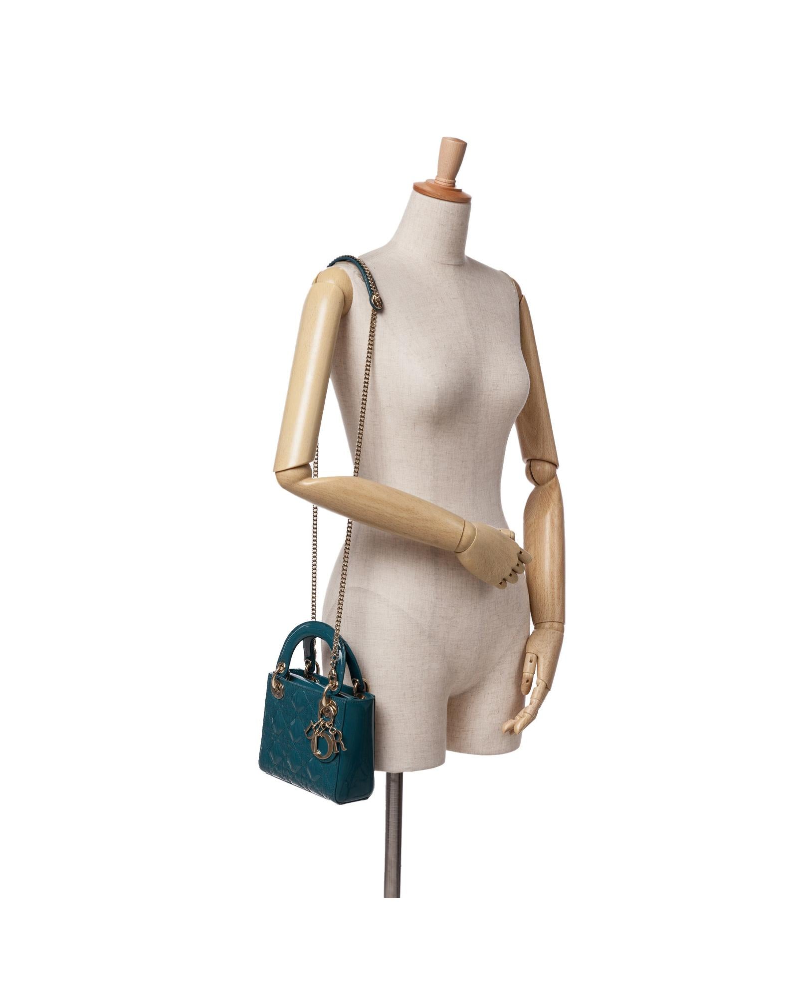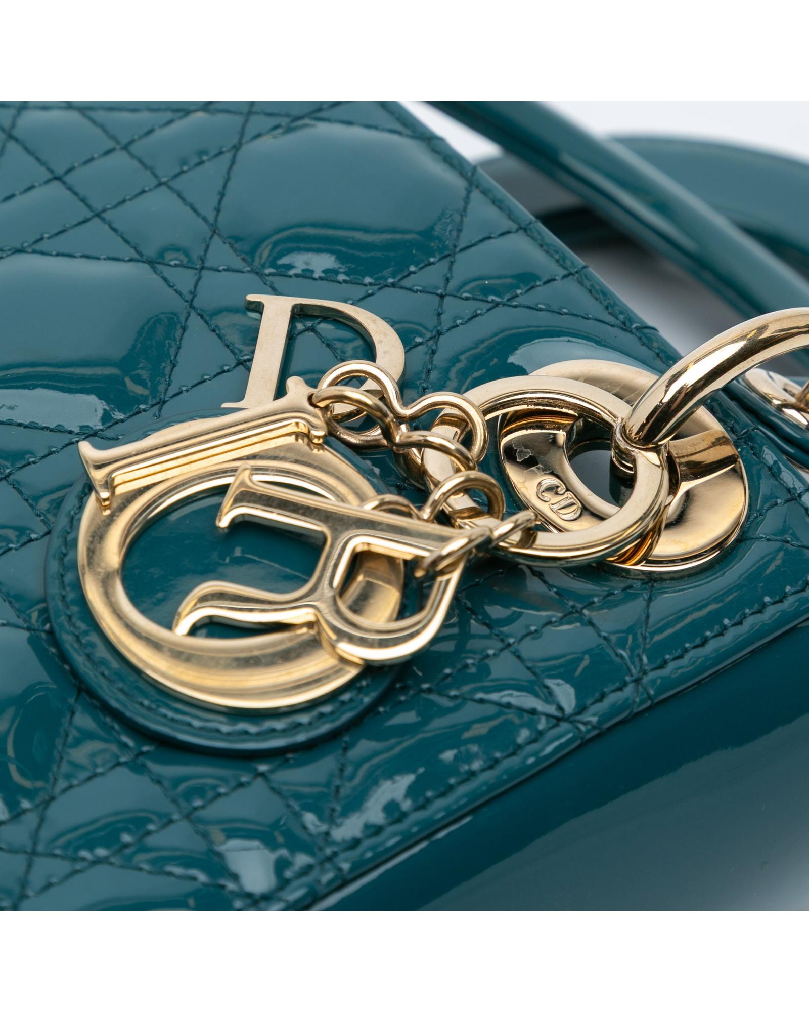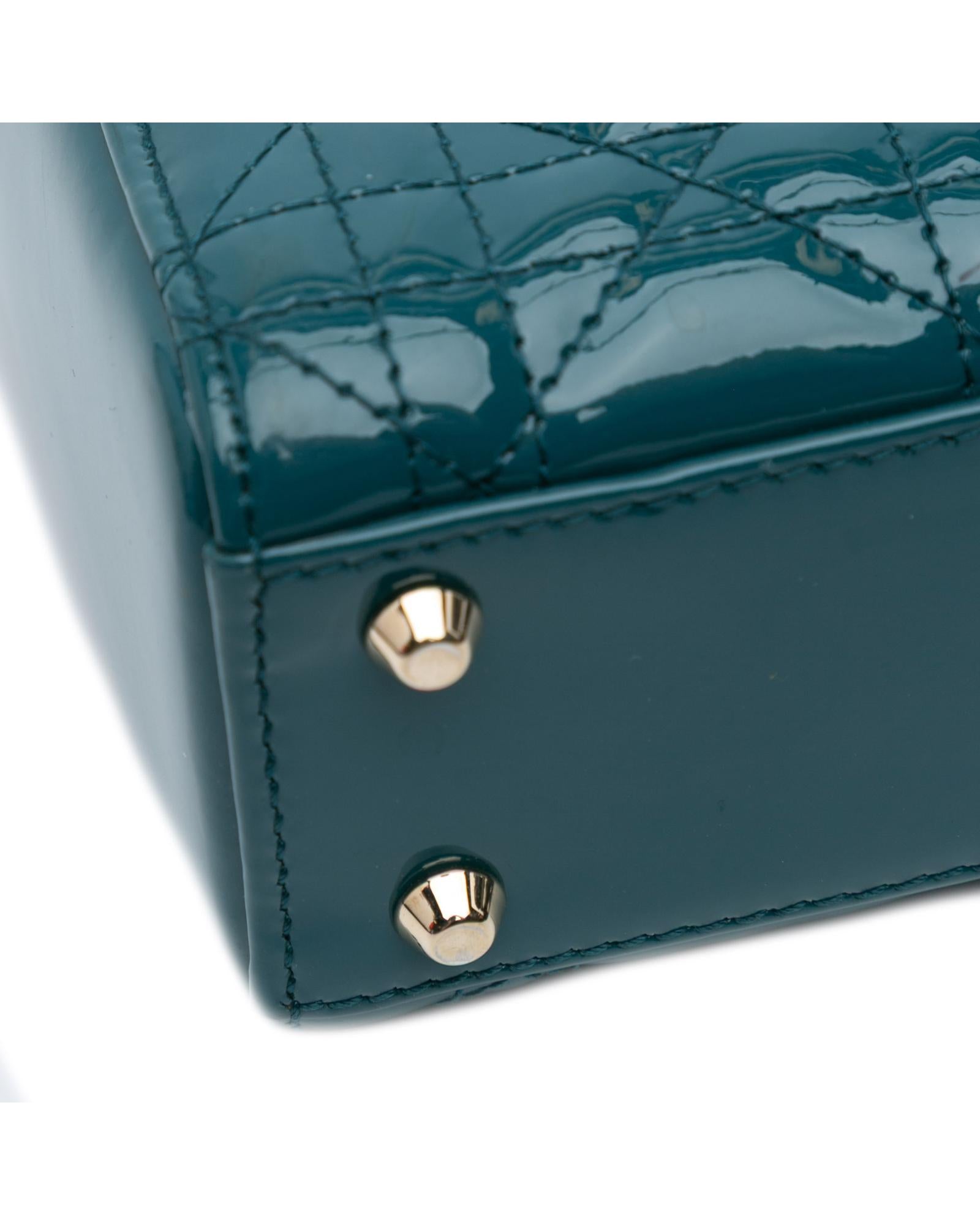 The Lady Dior features a quilted patent leather body flat top handles a detachable chain link strap with leather shoulder guard a fold in flap closure and an interior zip pocket.Brand: Dior