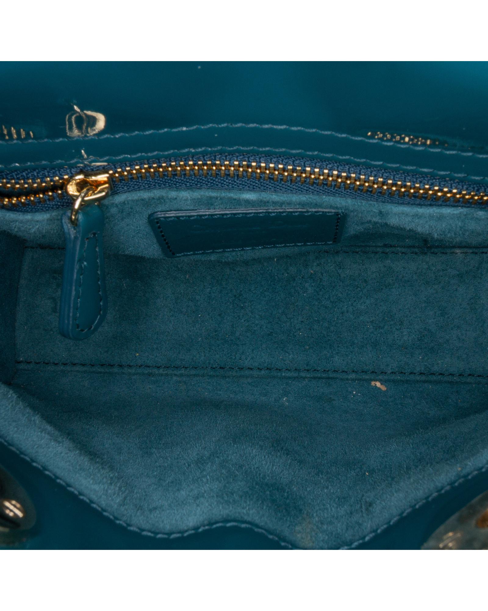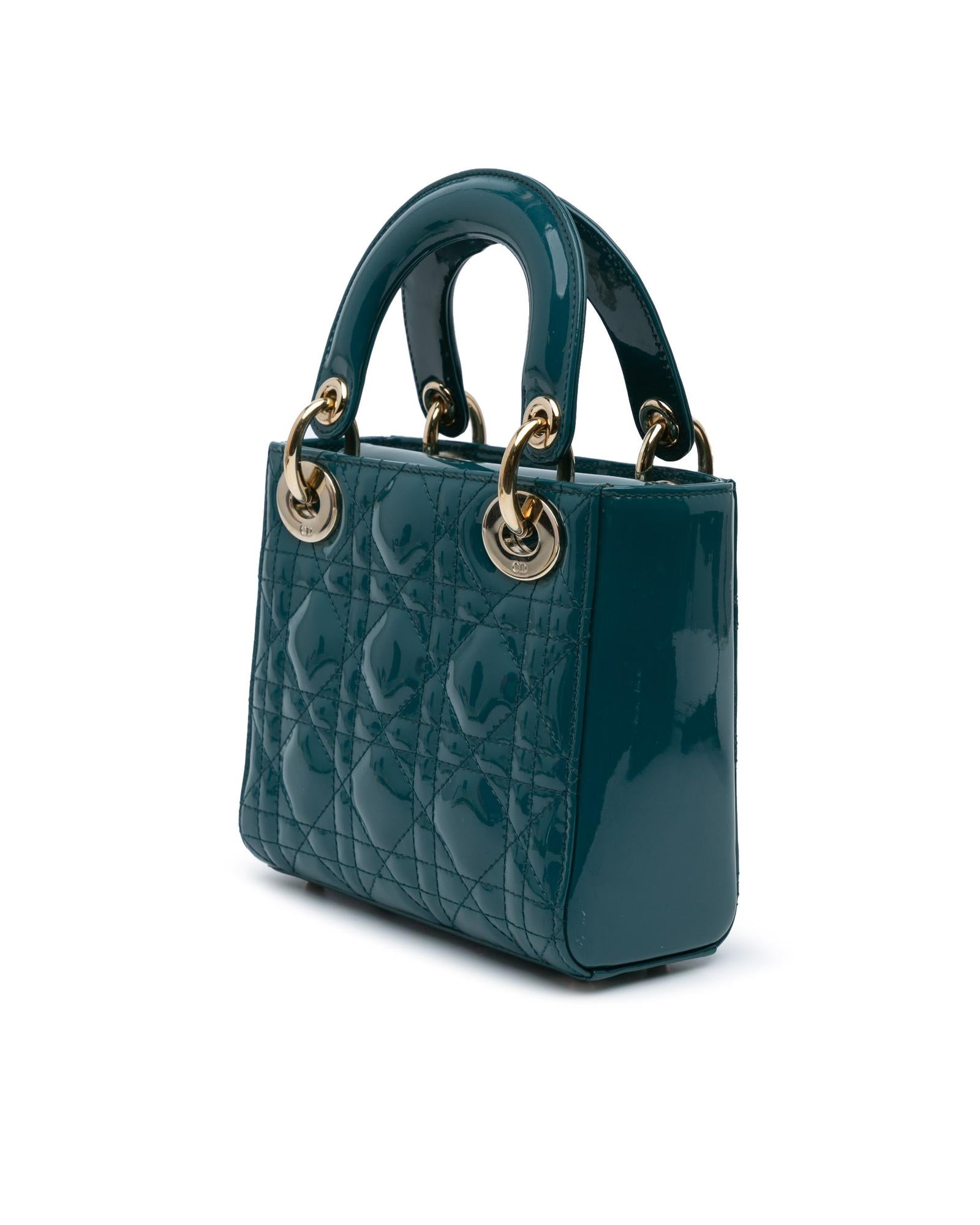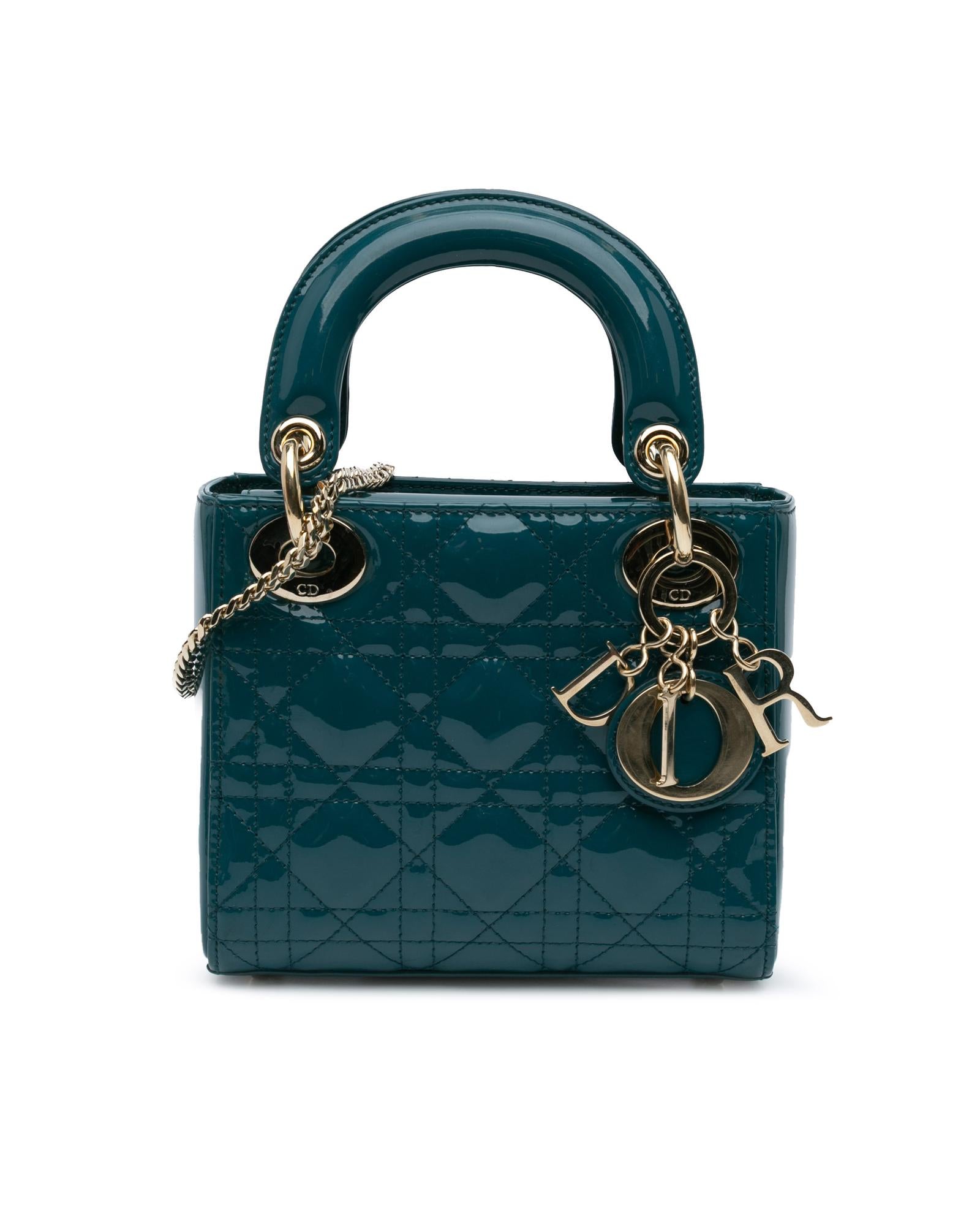 The Lady Dior features a quilted patent leather body flat top handles a detachable chain link strap with leather shoulder guard a fold in flap closure and an interior zip pocket.Brand: Dior