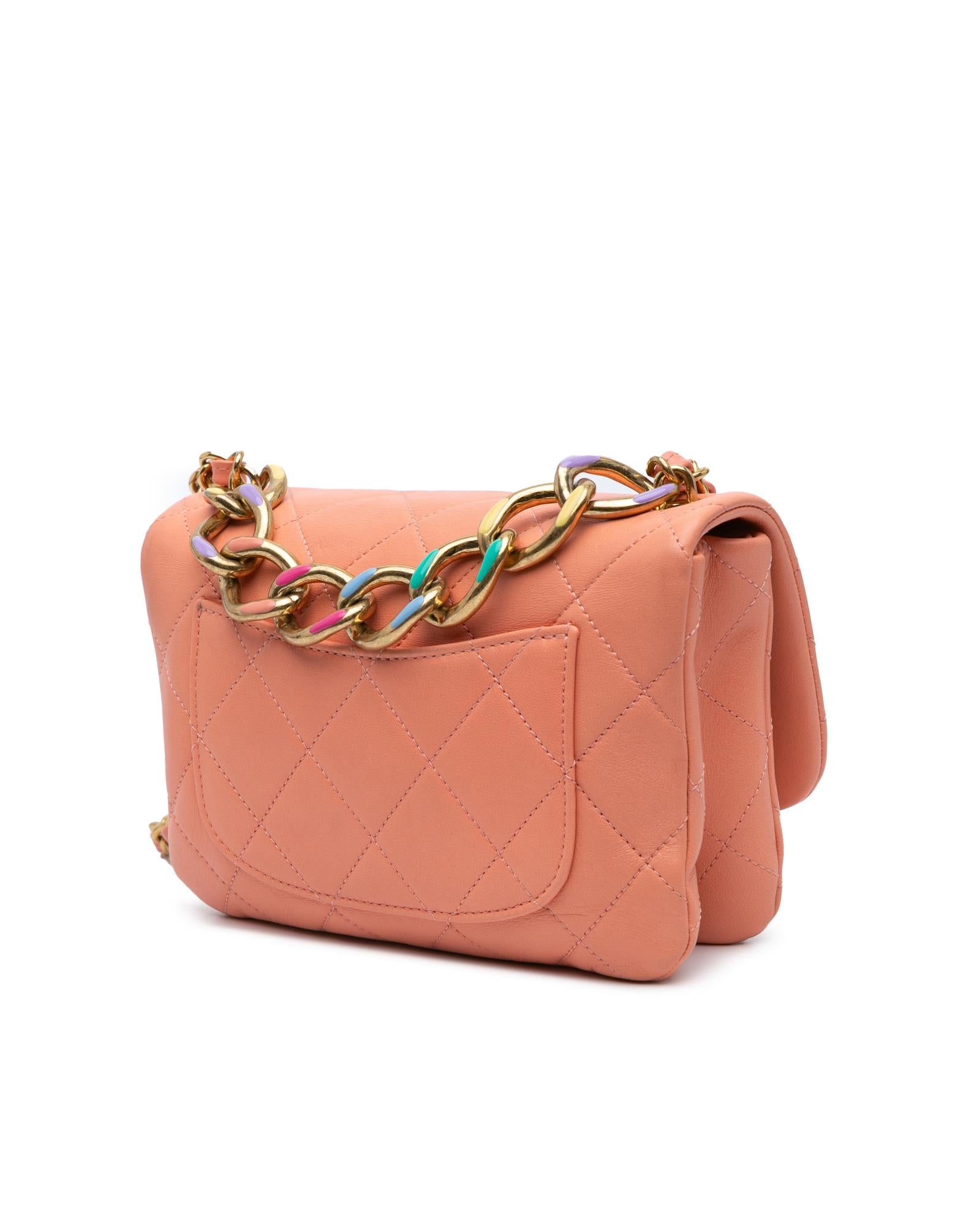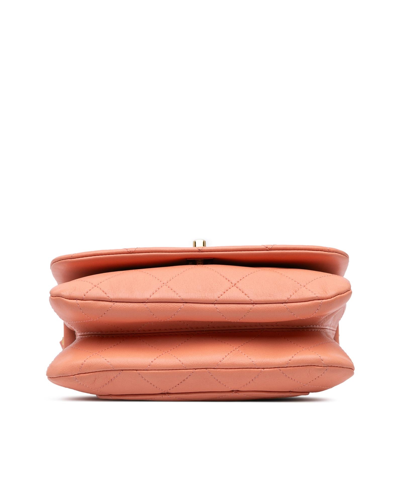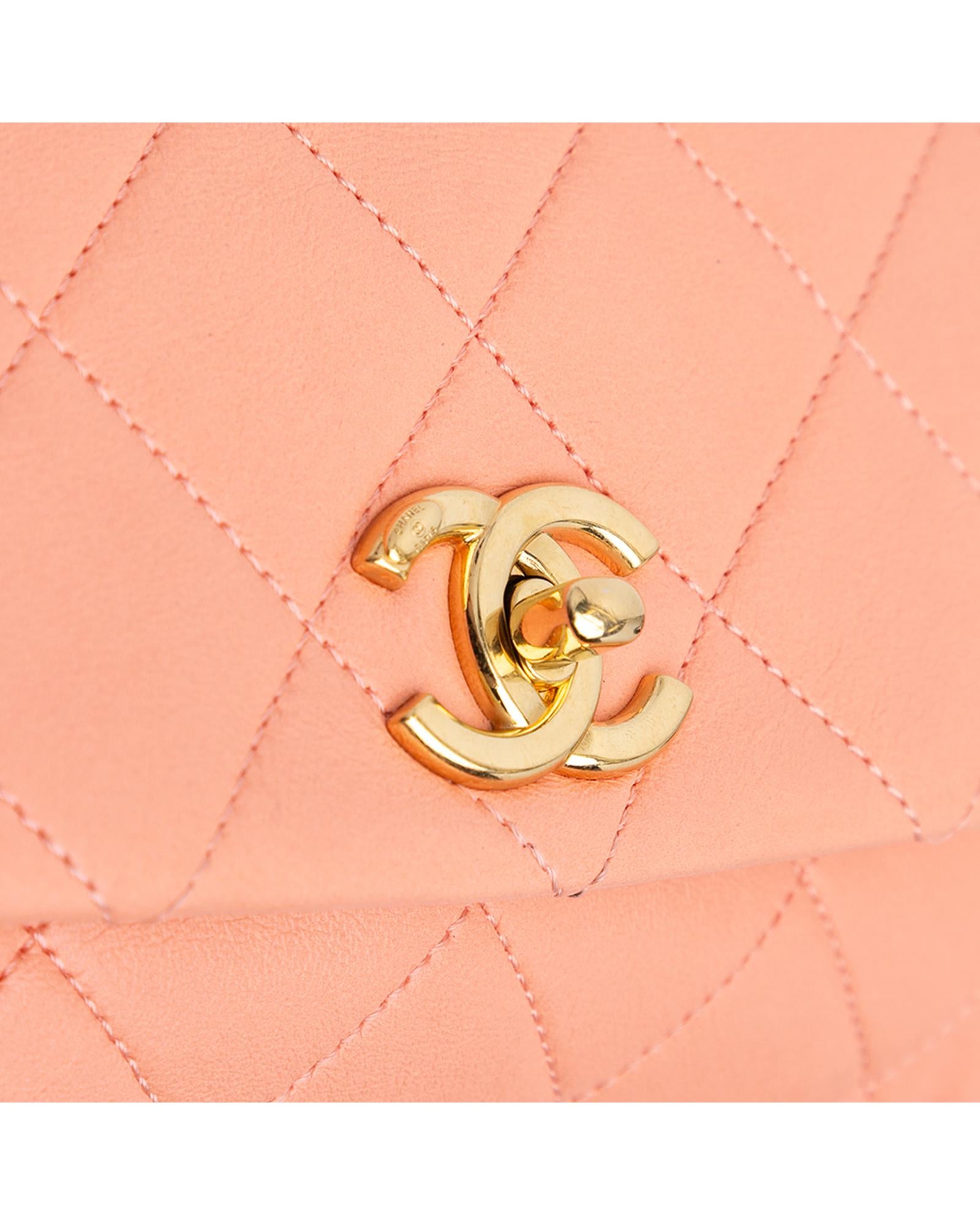 Small Quilted Lambskin Flap Satchel with Chain Link Handle