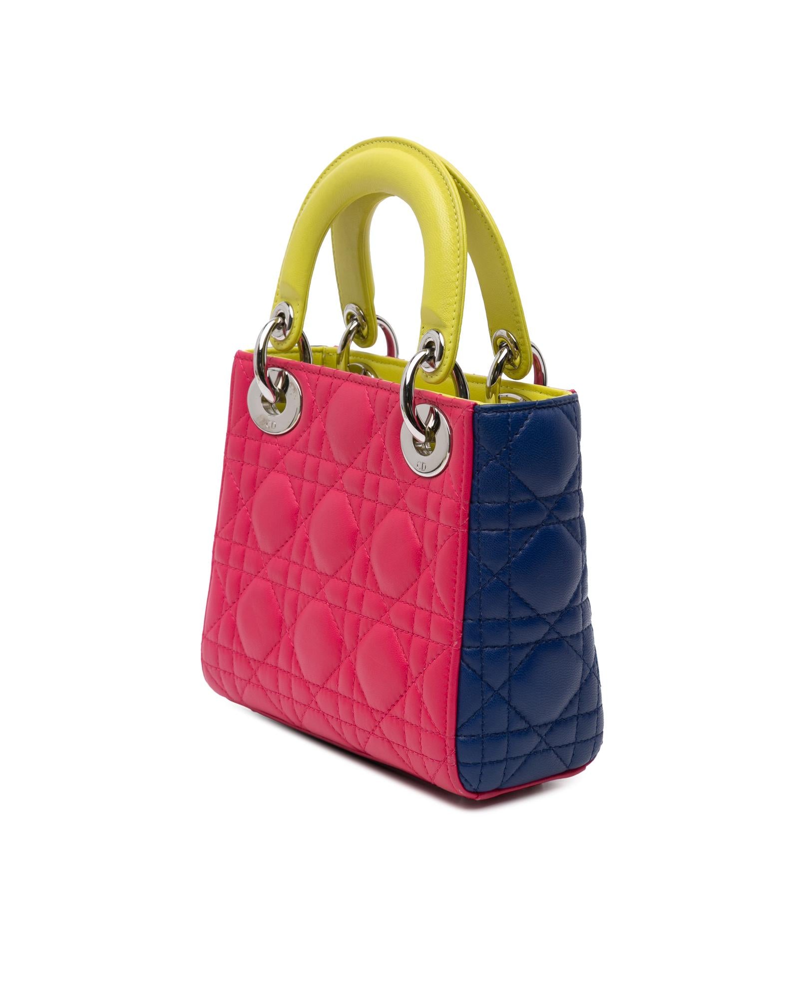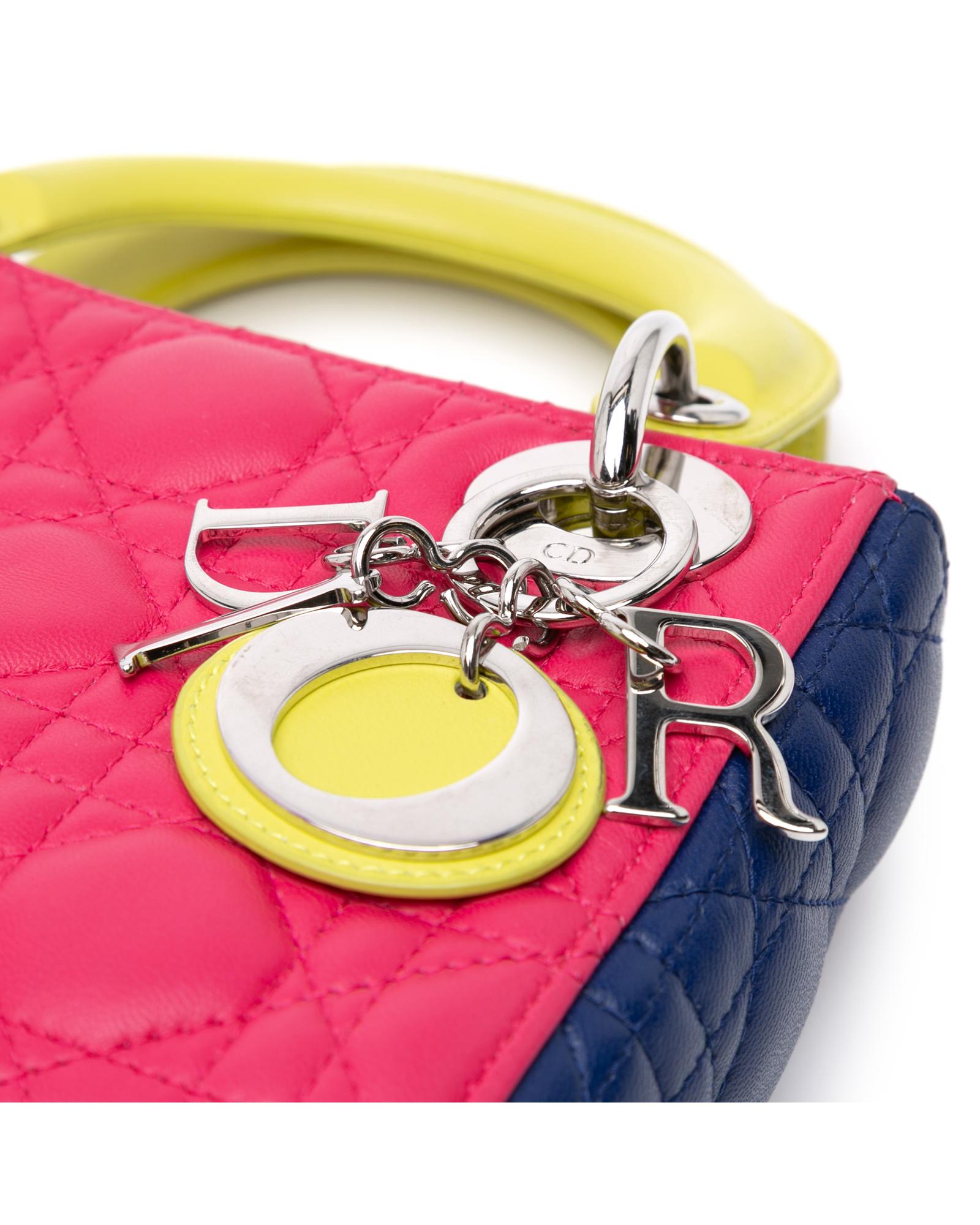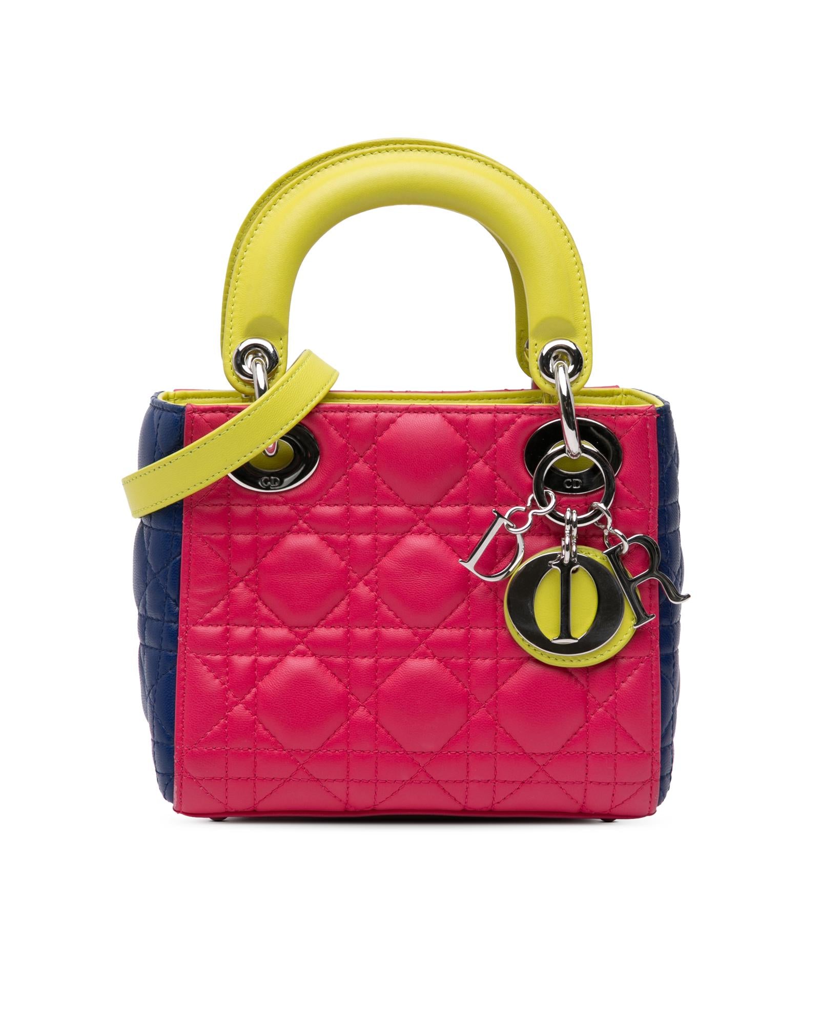 Mini Tricolor Lambskin Quilted Leather Bag with Detachable Shoulder Strap