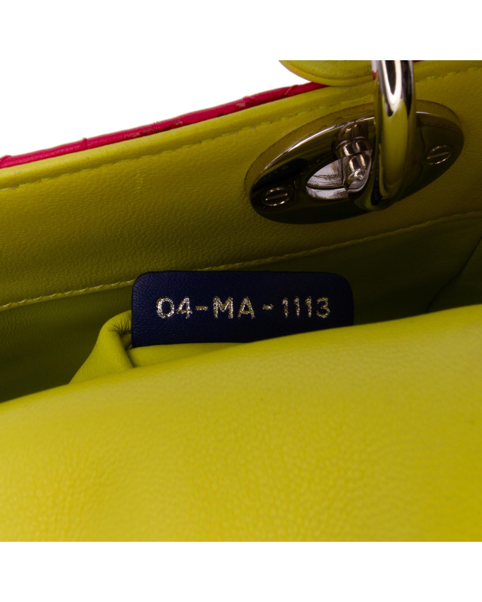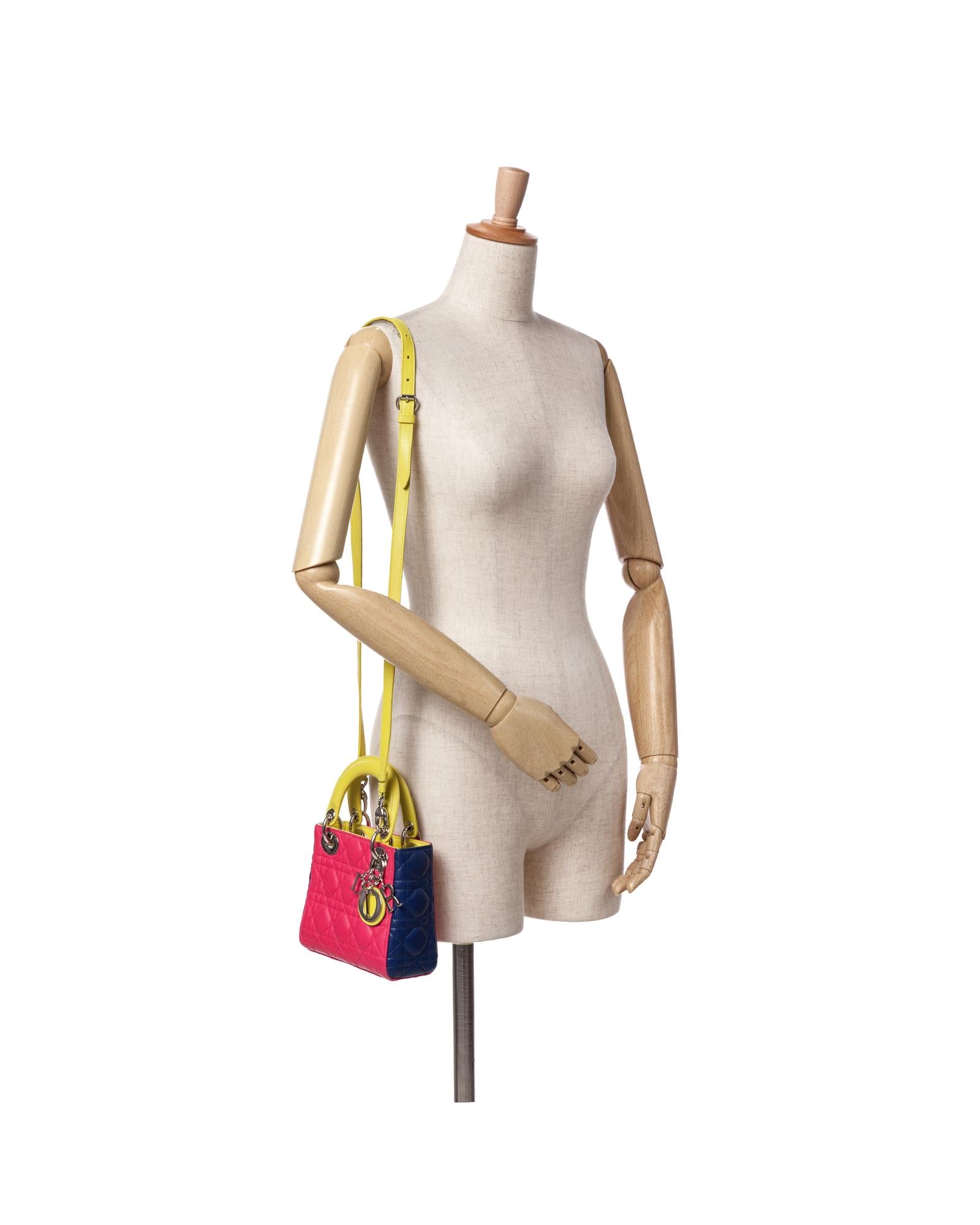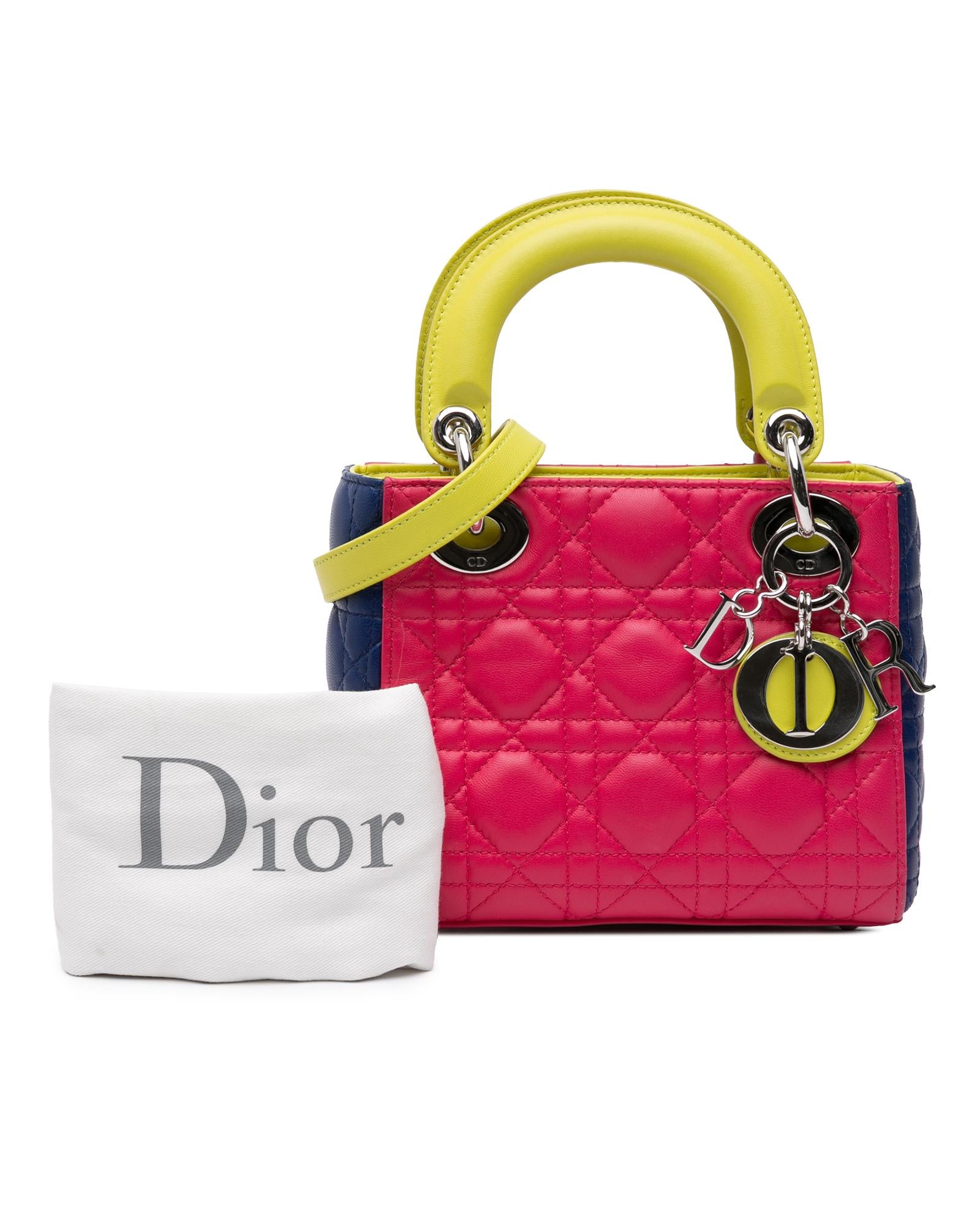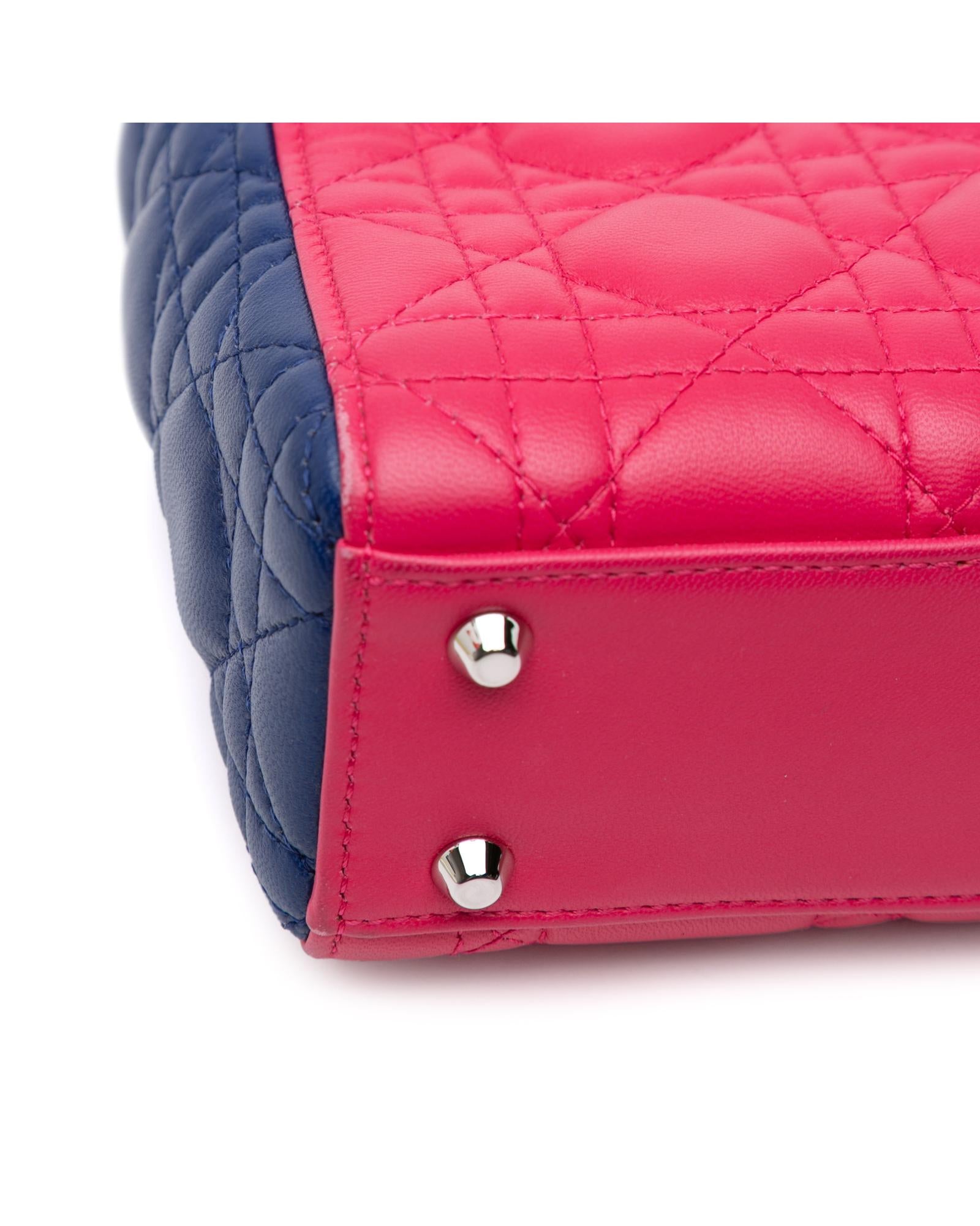 The Lady Dior features a quilted lambskin leather body flat leather top handles a detachable flat leather shoulder strap a top zip closure and an interior zip pocket.Brand: Dior