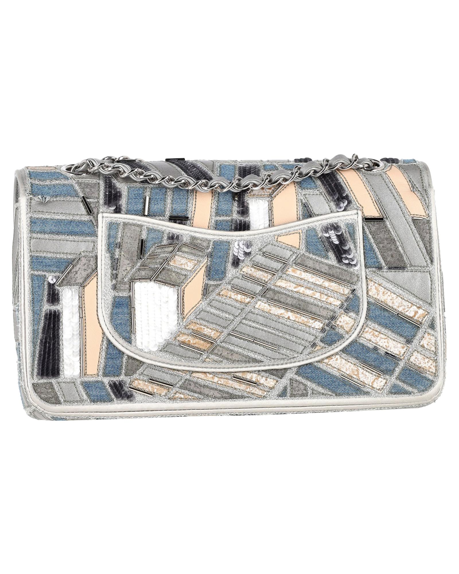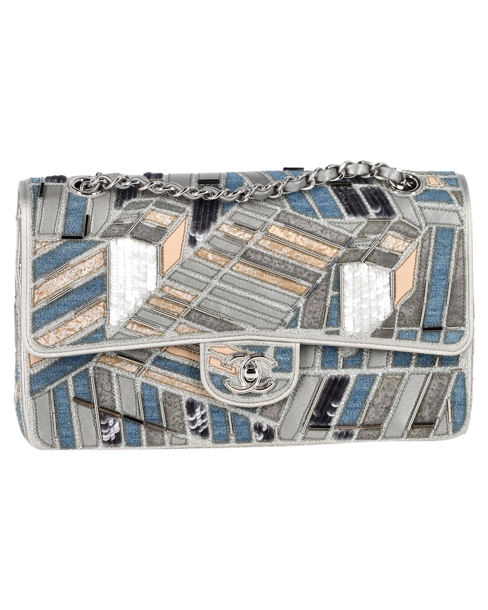 - Chanel Medium Classic Patchwork Double Flap Shoulder Bag in multicolor denim