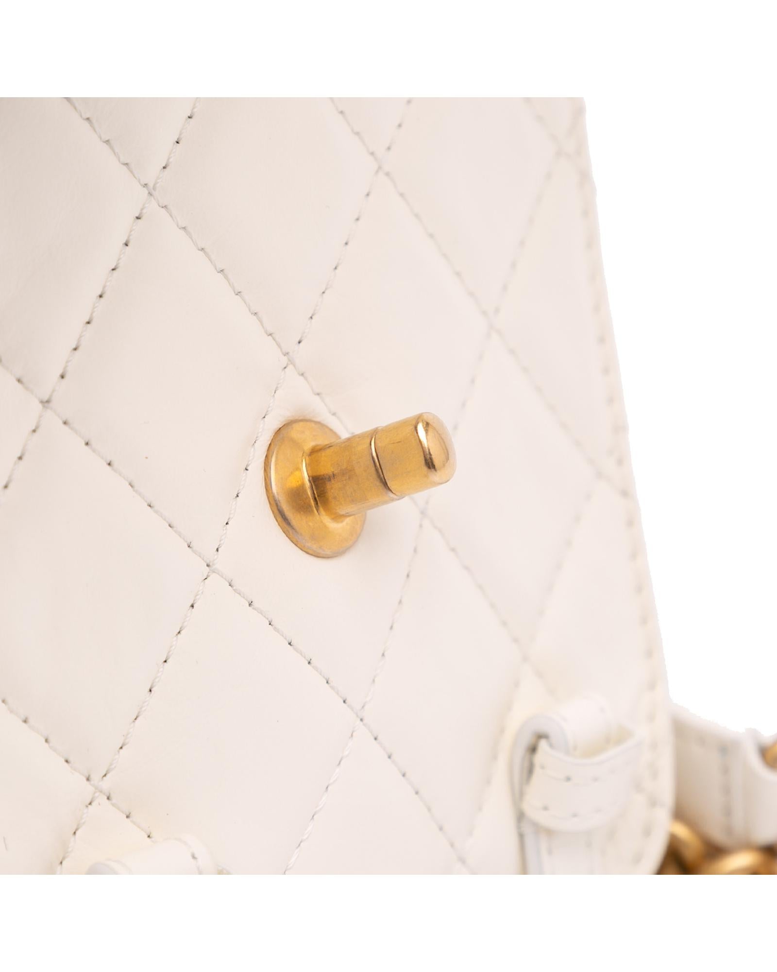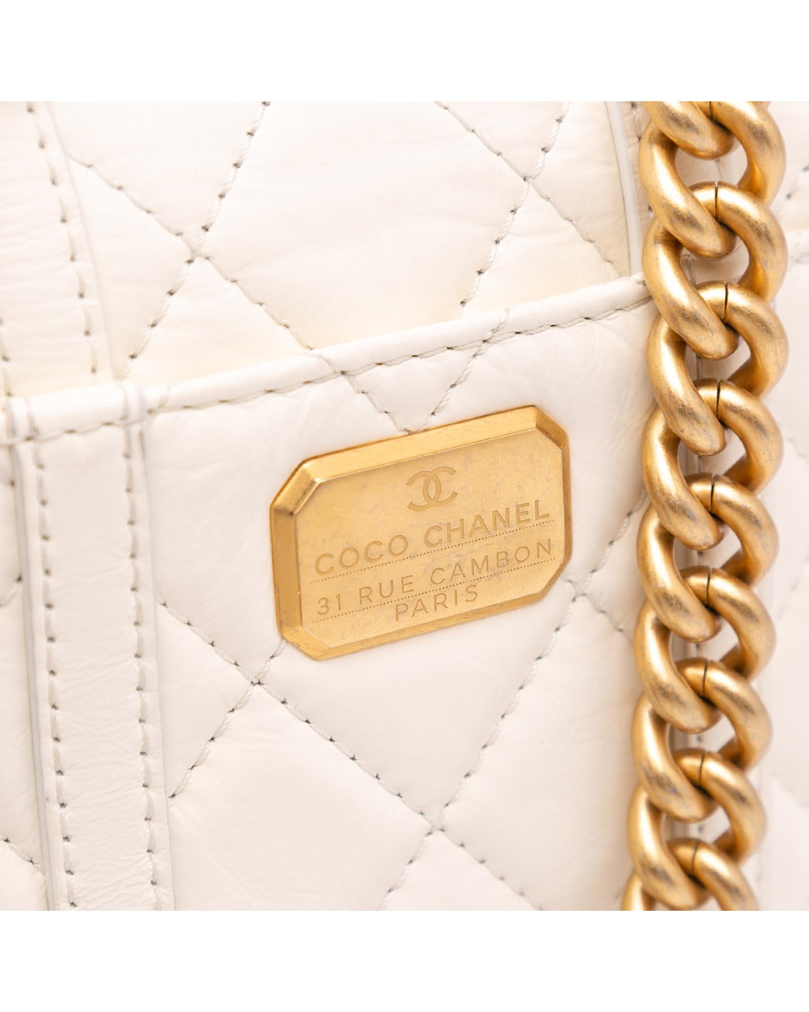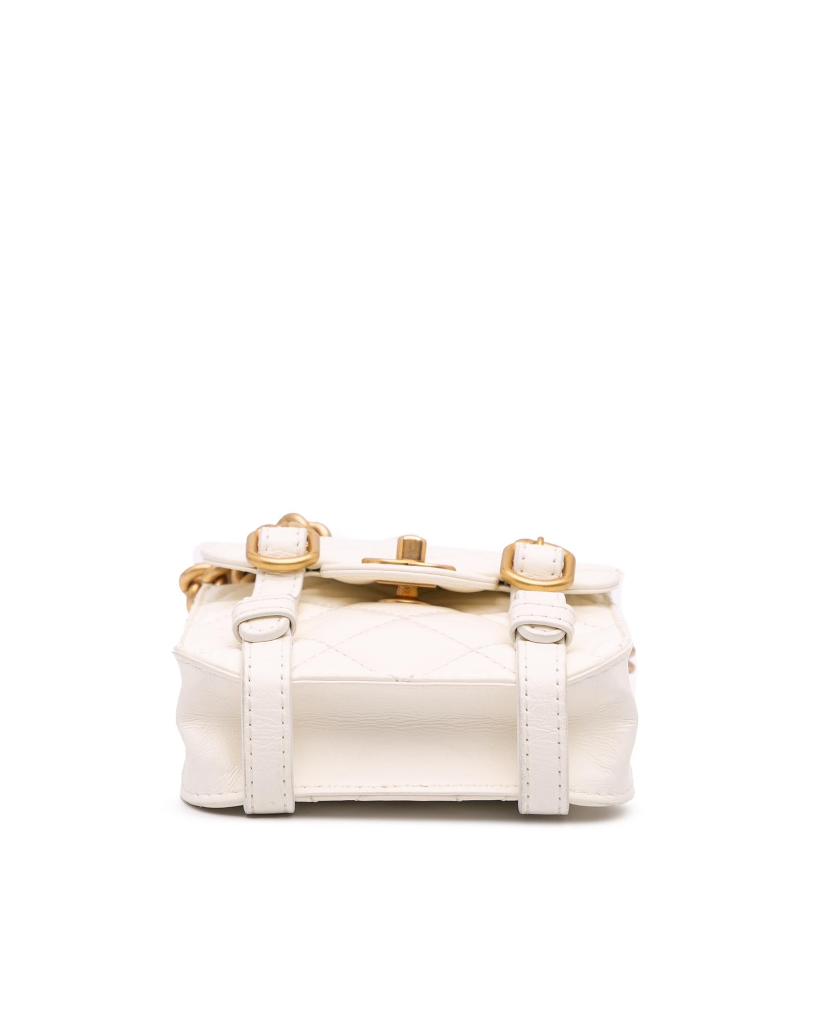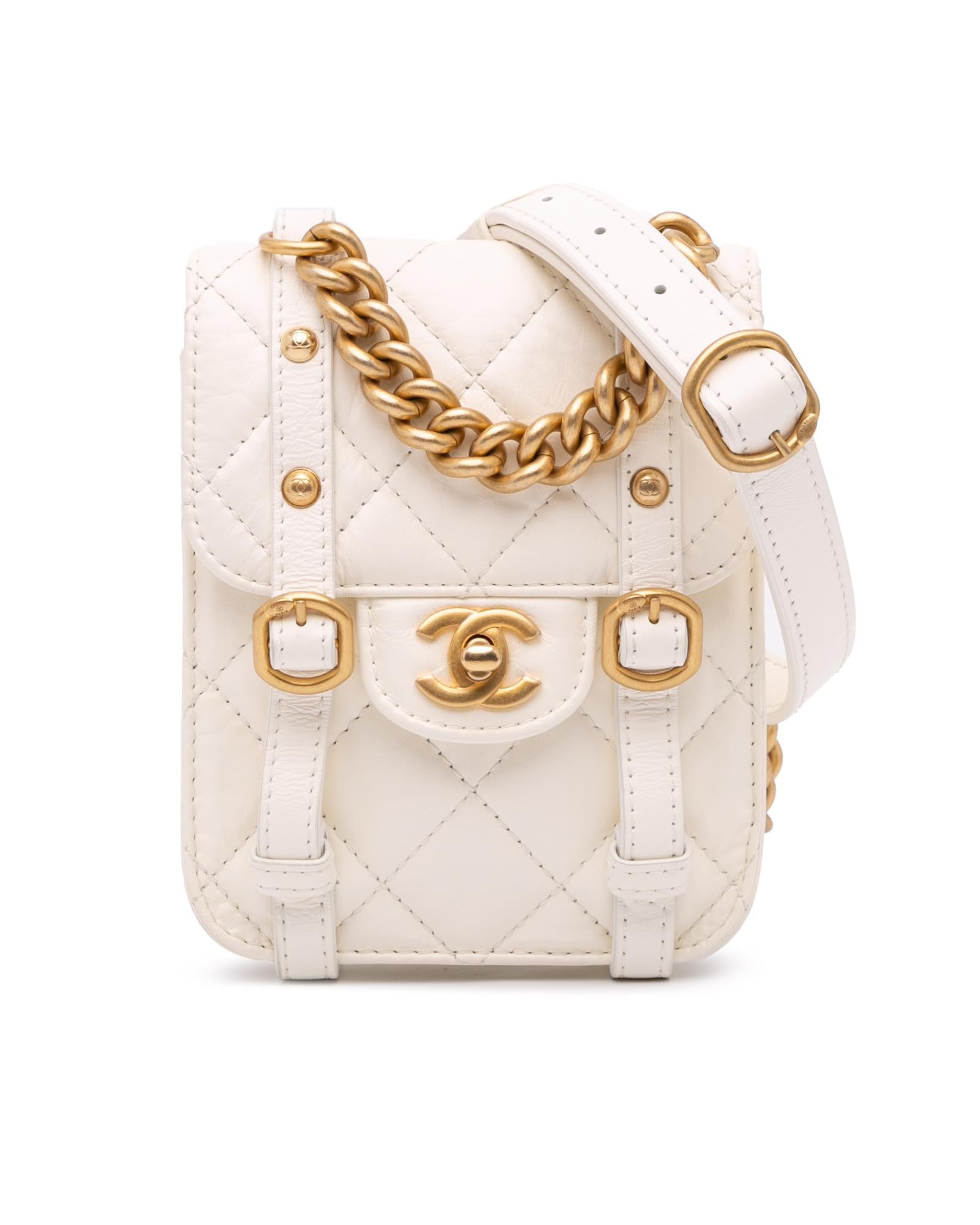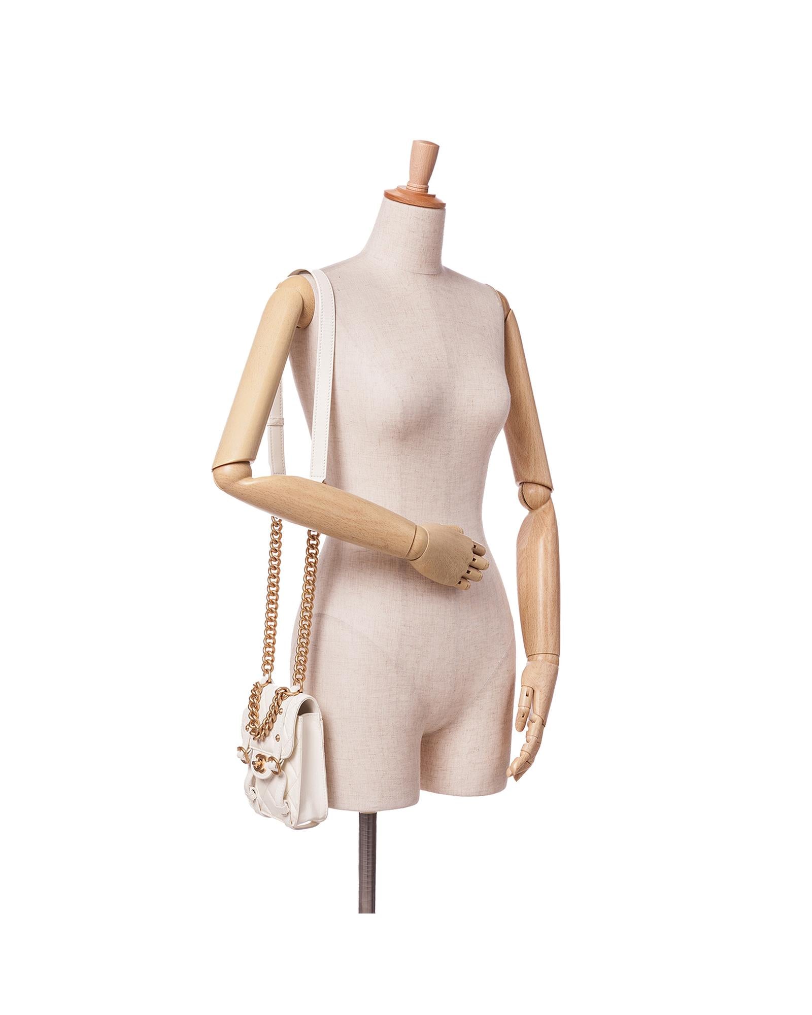 The Mini City School features a quilted leather body a chain link handle an adjustable leather and chain shoulder strap and a top flap with CC turn-lock closure.Brand: Chanel