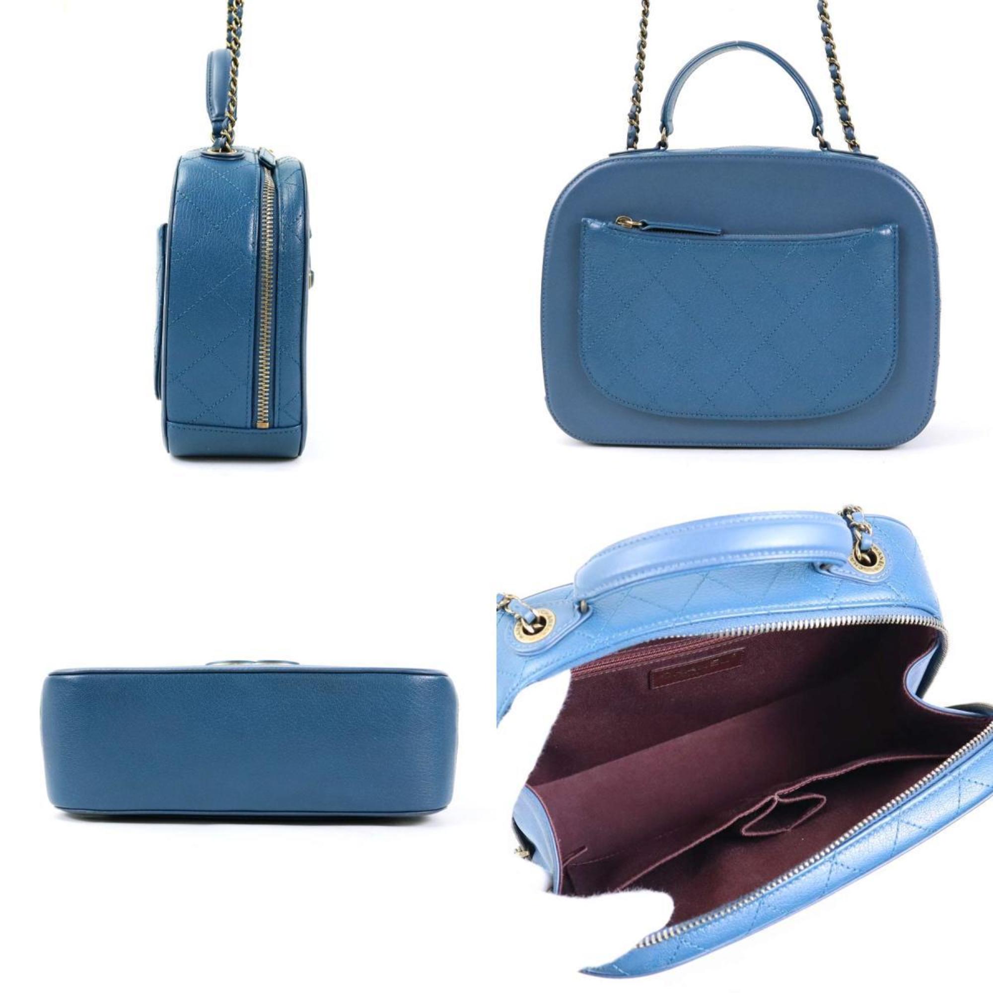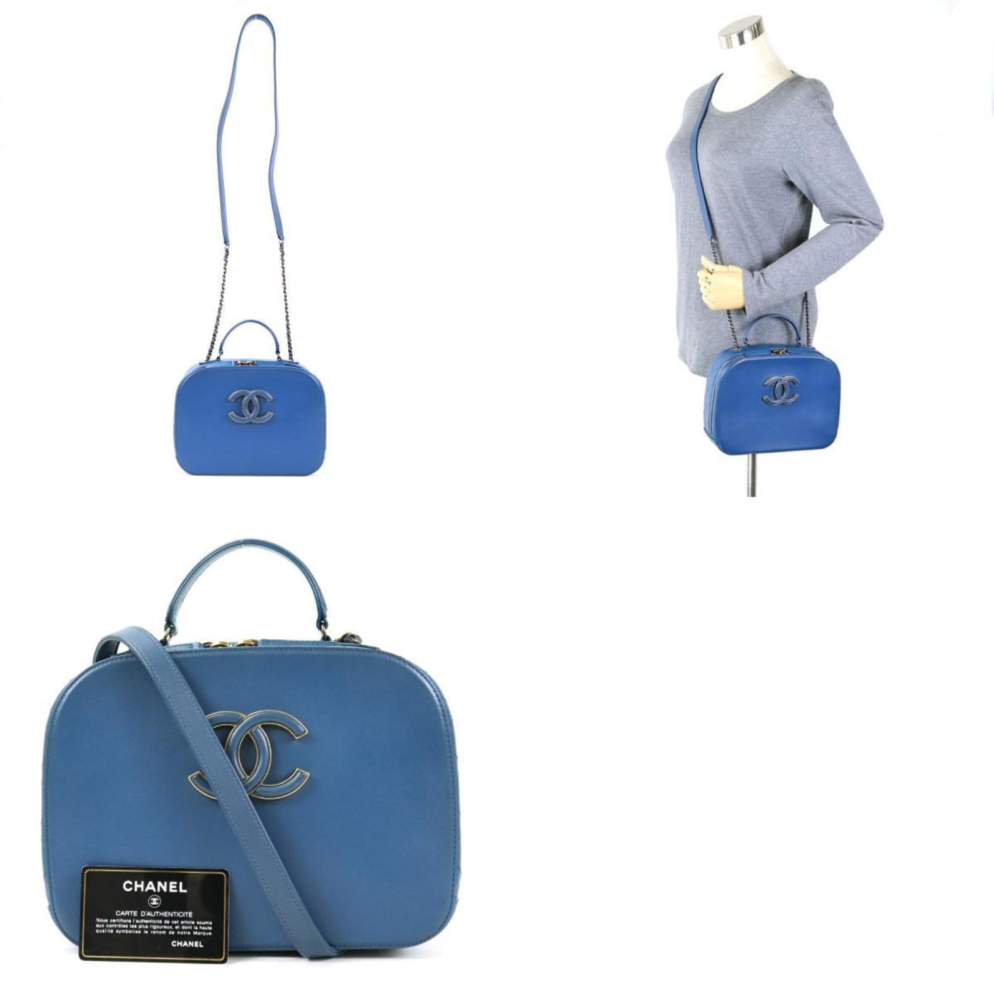 Introducing the elegant Chanel Vanity Shoulder Bag a luxurious accessory designed for the sophisticated woman. Crafted from supple leather in a striking blue hue this shoulder bag exudes timeless Chanel style.