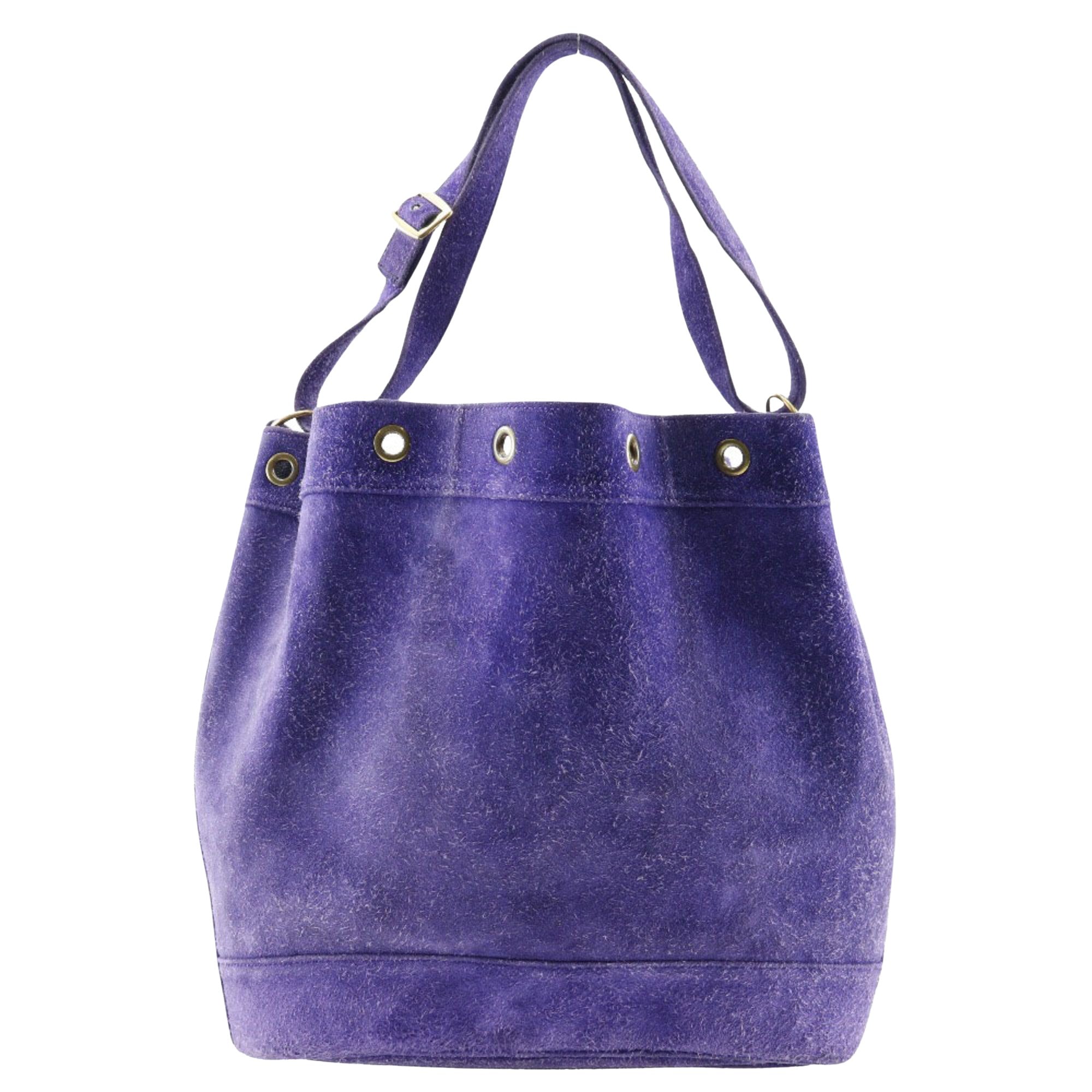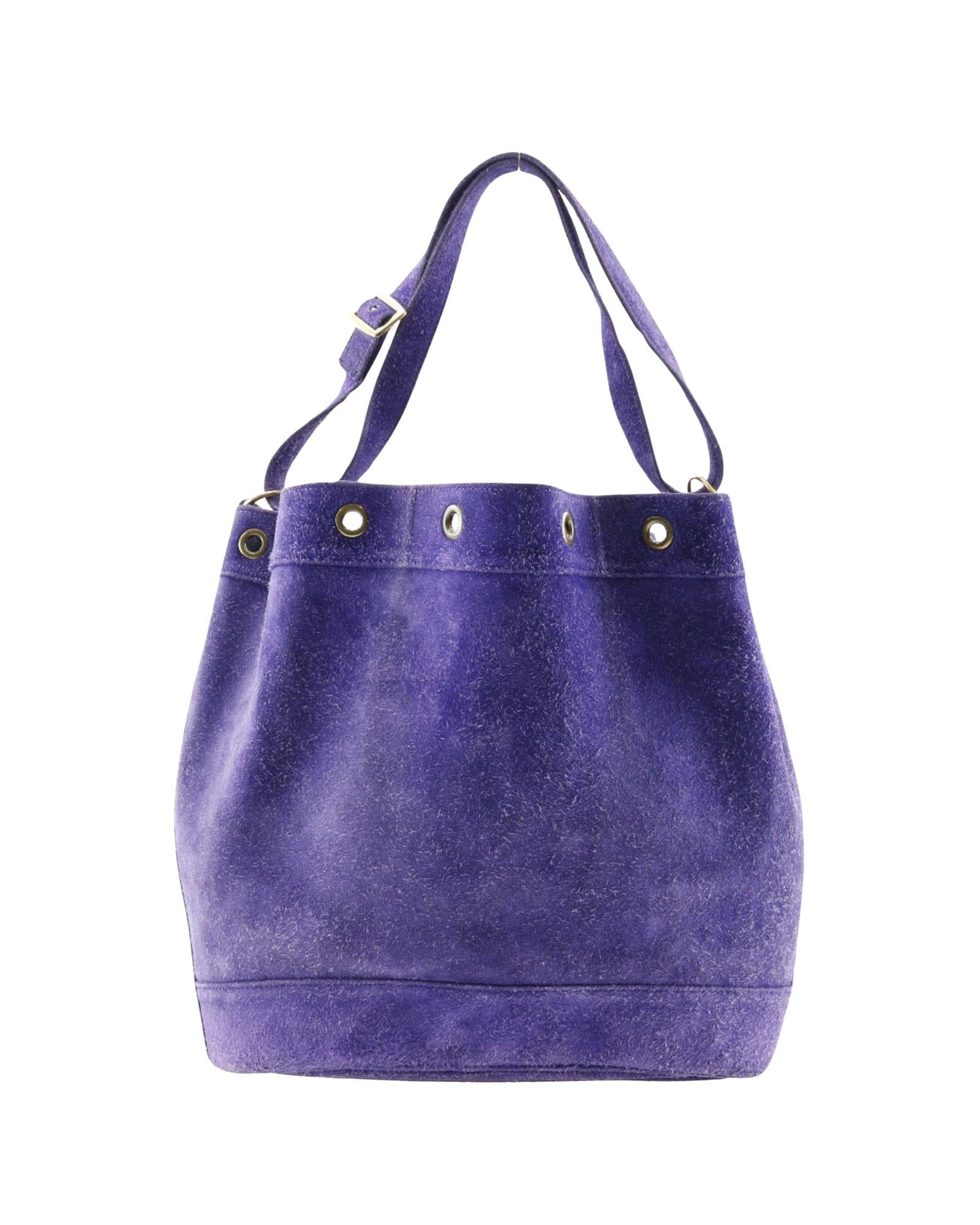 Chic Purple Suede Shoulder Bag with Spacious Interior from France