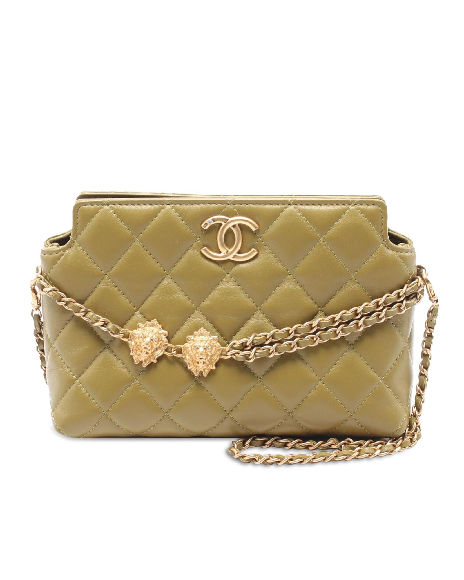 Quilted Lambskin Leather Shoulder Bag with Gold Tone Lion Hardware