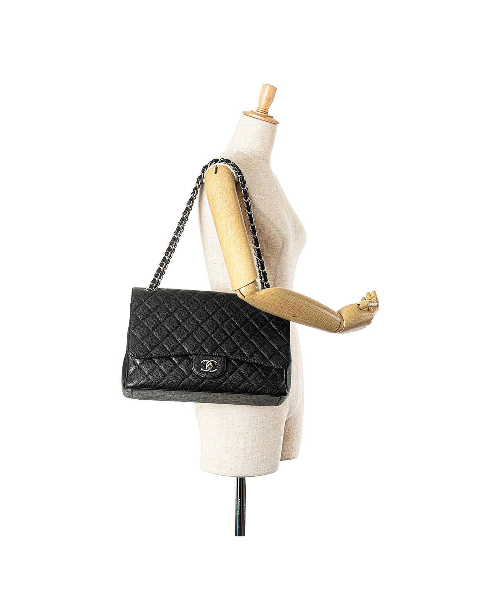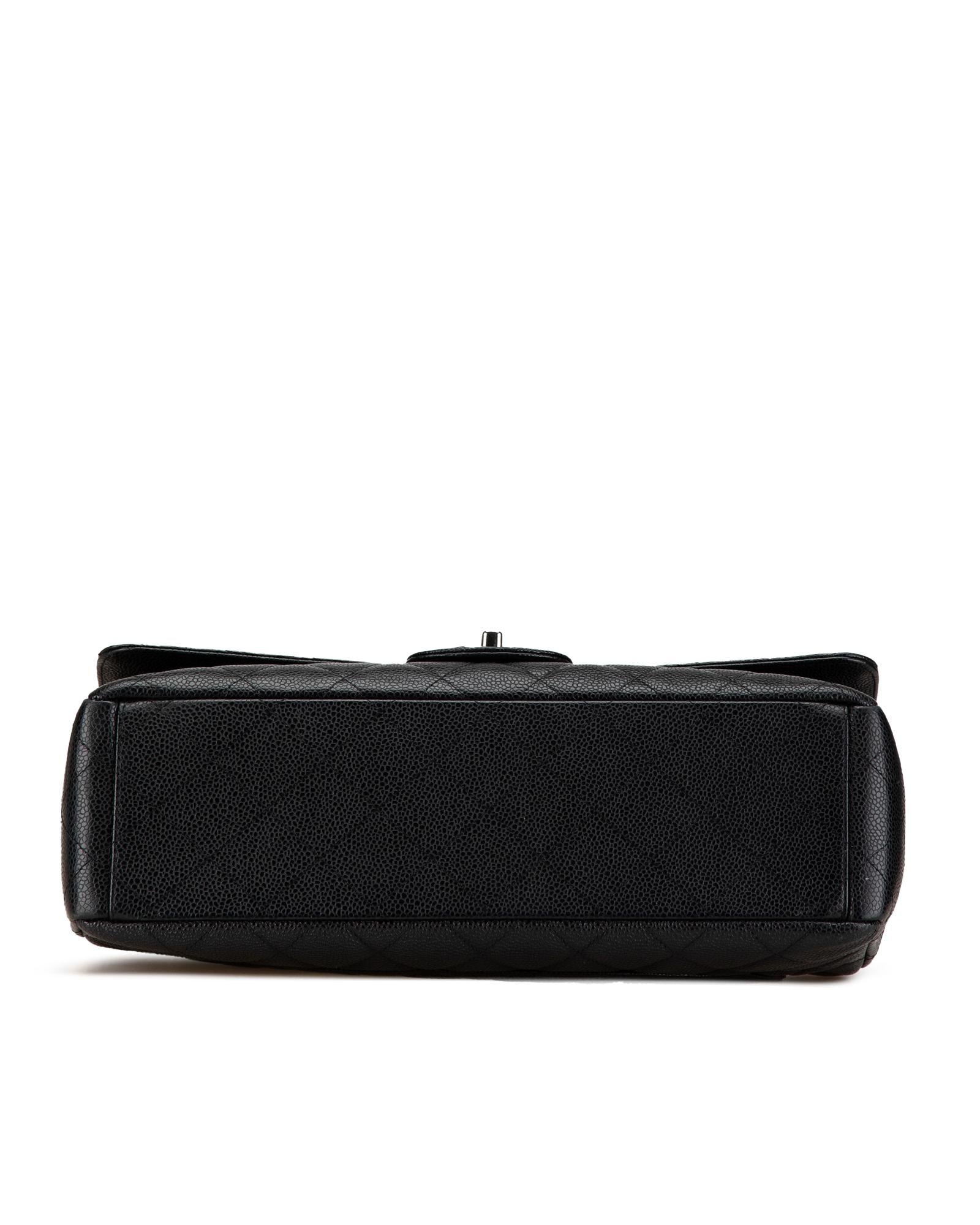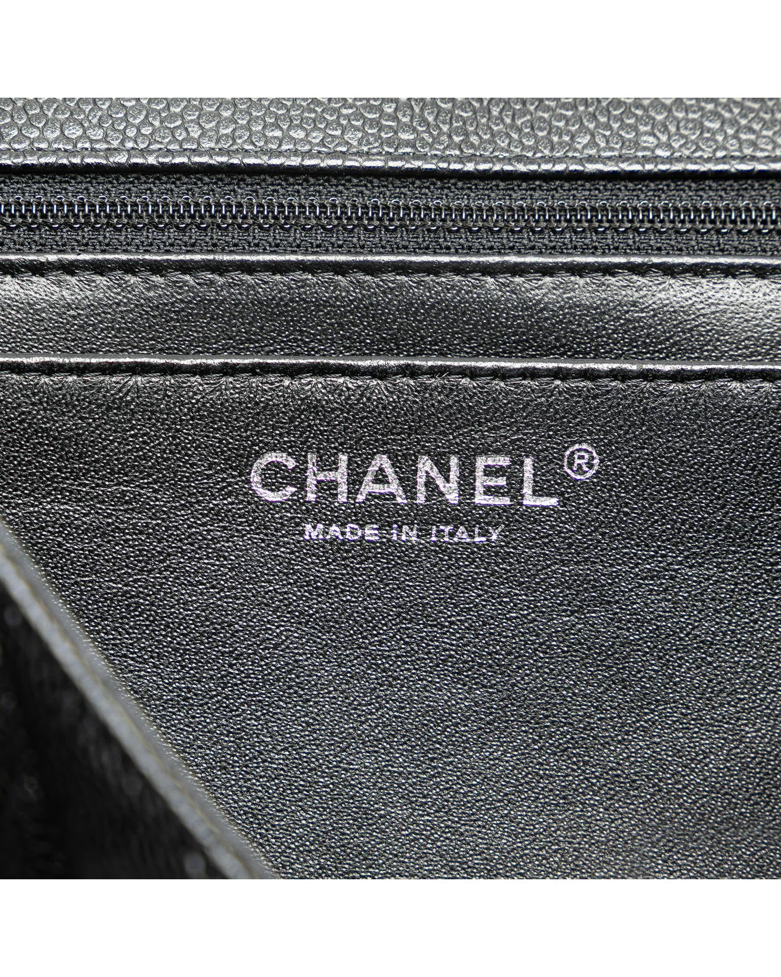 This shoulder bag features a quilted caviar leather body leather woven chain link straps a top flap with CC turn lock closure an exterior back slip pocket and interior zip and slip pockets.Brand: Chanel