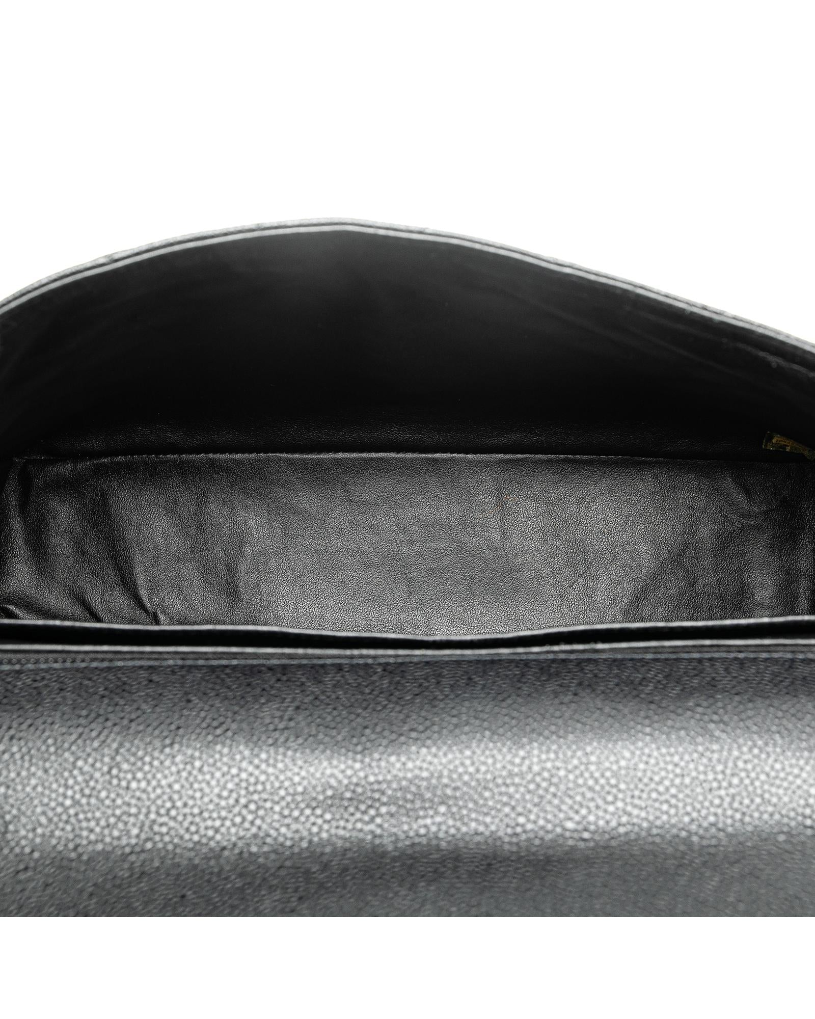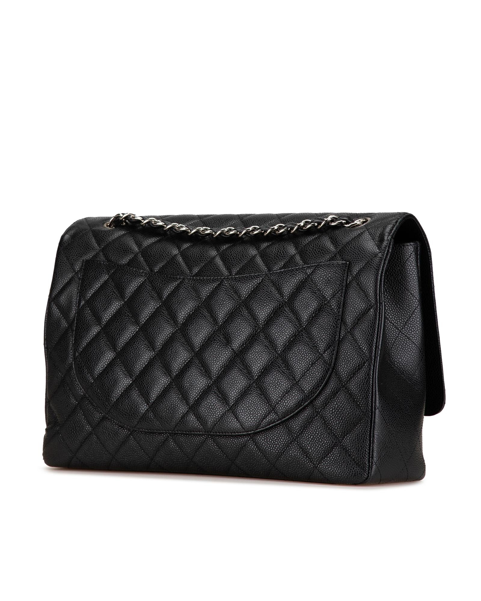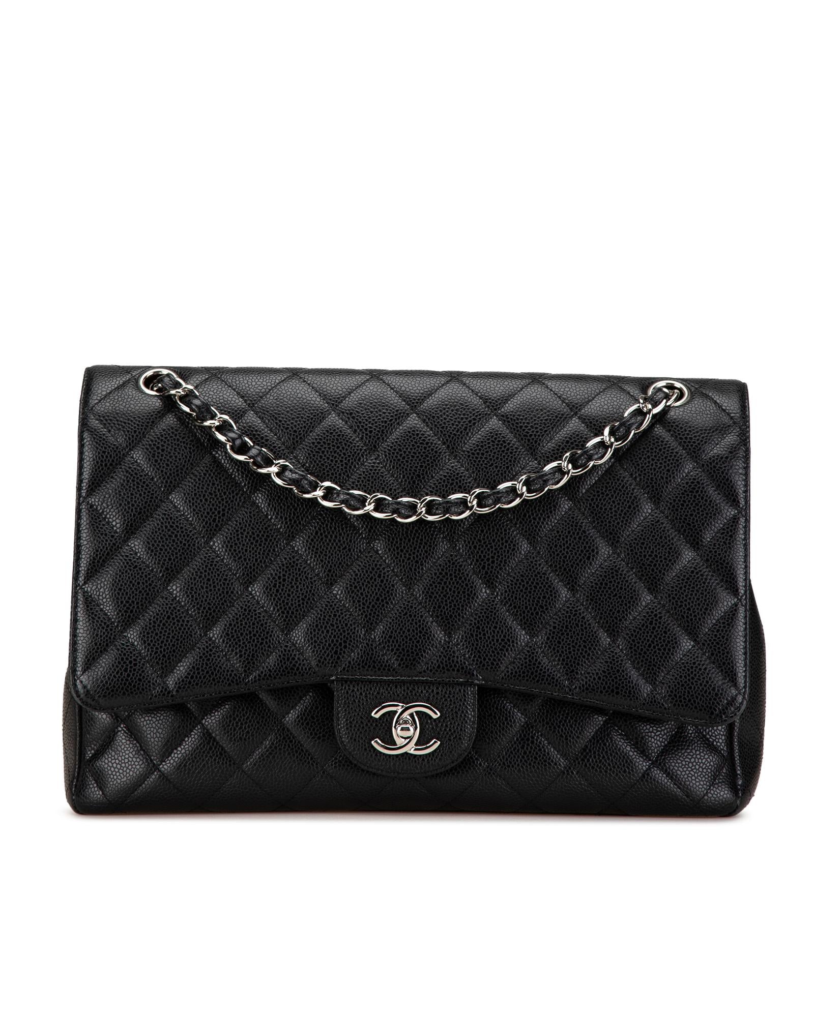 This shoulder bag features a quilted caviar leather body leather woven chain link straps a top flap with CC turn lock closure an exterior back slip pocket and interior zip and slip pockets.Brand: Chanel