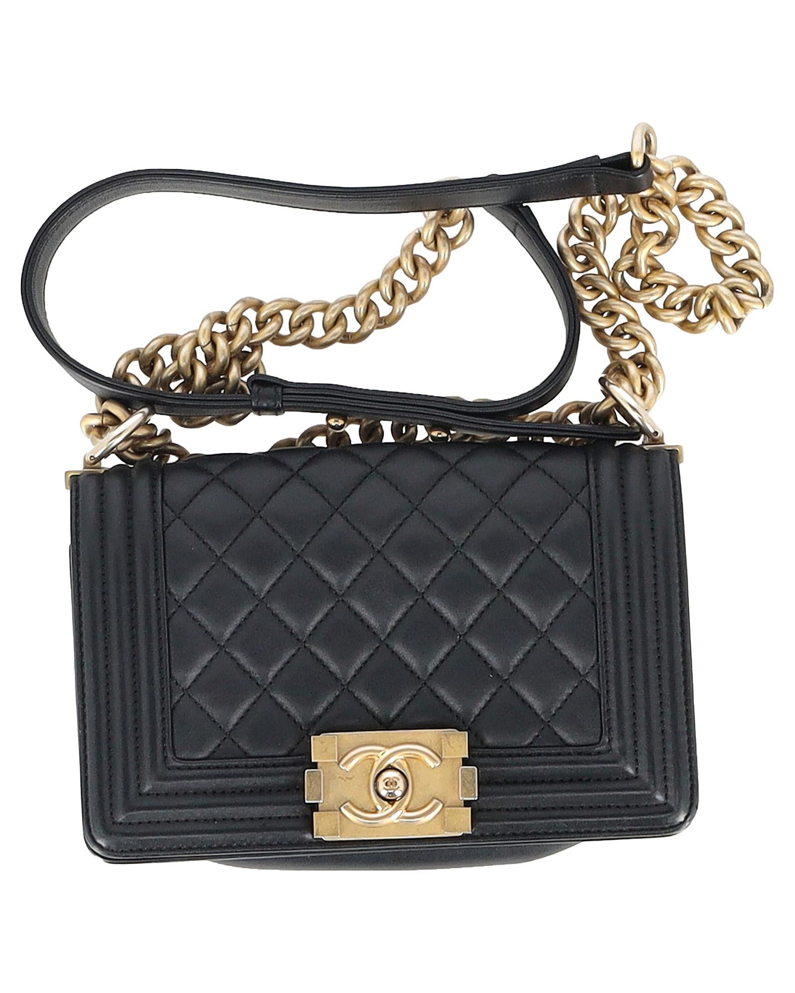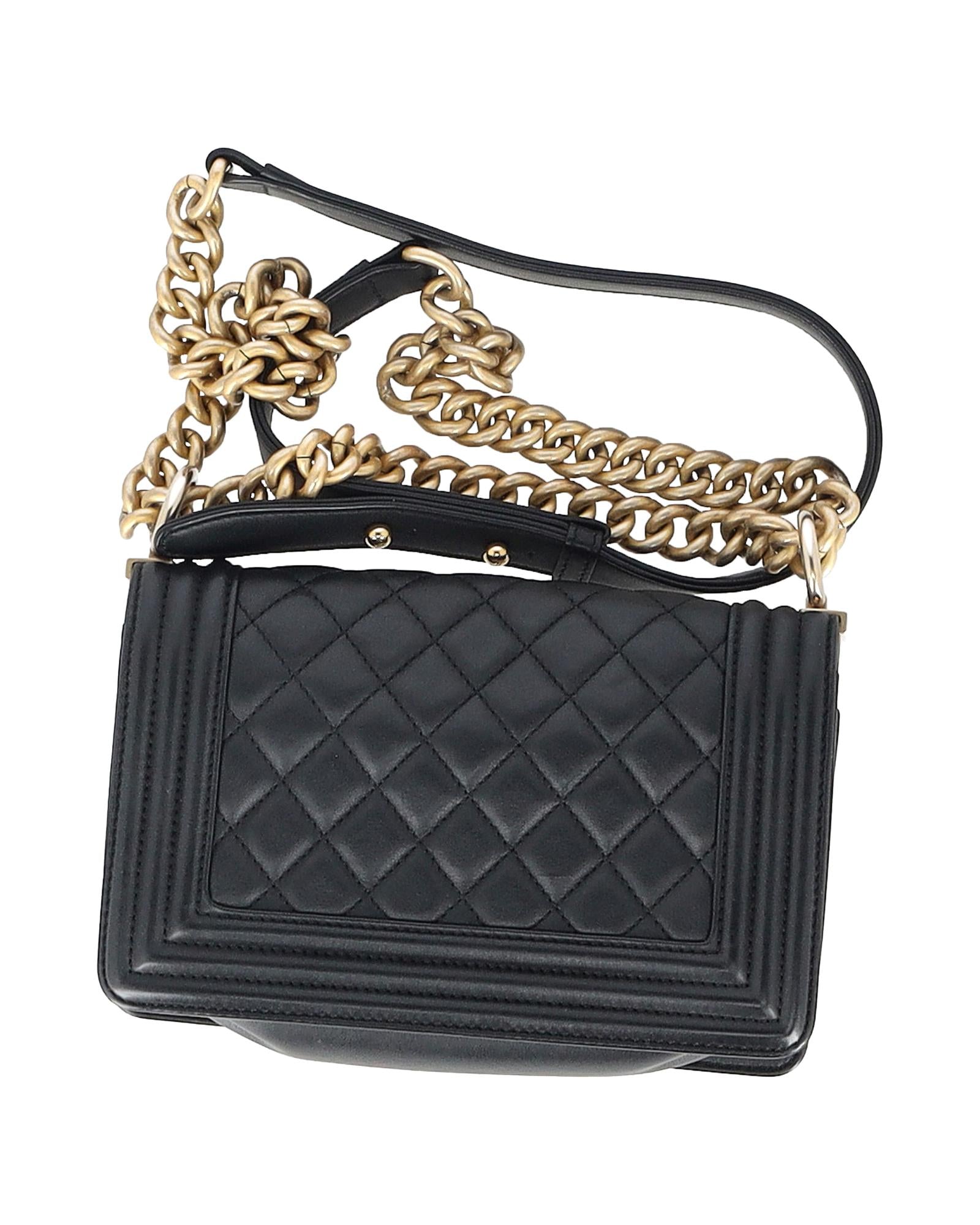 - Chanel Small Boy Flap Shoulder Bag in Black Calf Leather Condition: Very good Signs of wear: Minor sign of wear or markings Lightly used but very well maintained Minor creasing light worn corners light scratches Packaging: Dust bag Color: Black Material: Leather | calfskin leather Size: One Size Measurements: Width: 50; Height: 130; Length: 200 SKU: NAPPUGBBA451116W Product Id: 451116 Original Price: EUR 32794