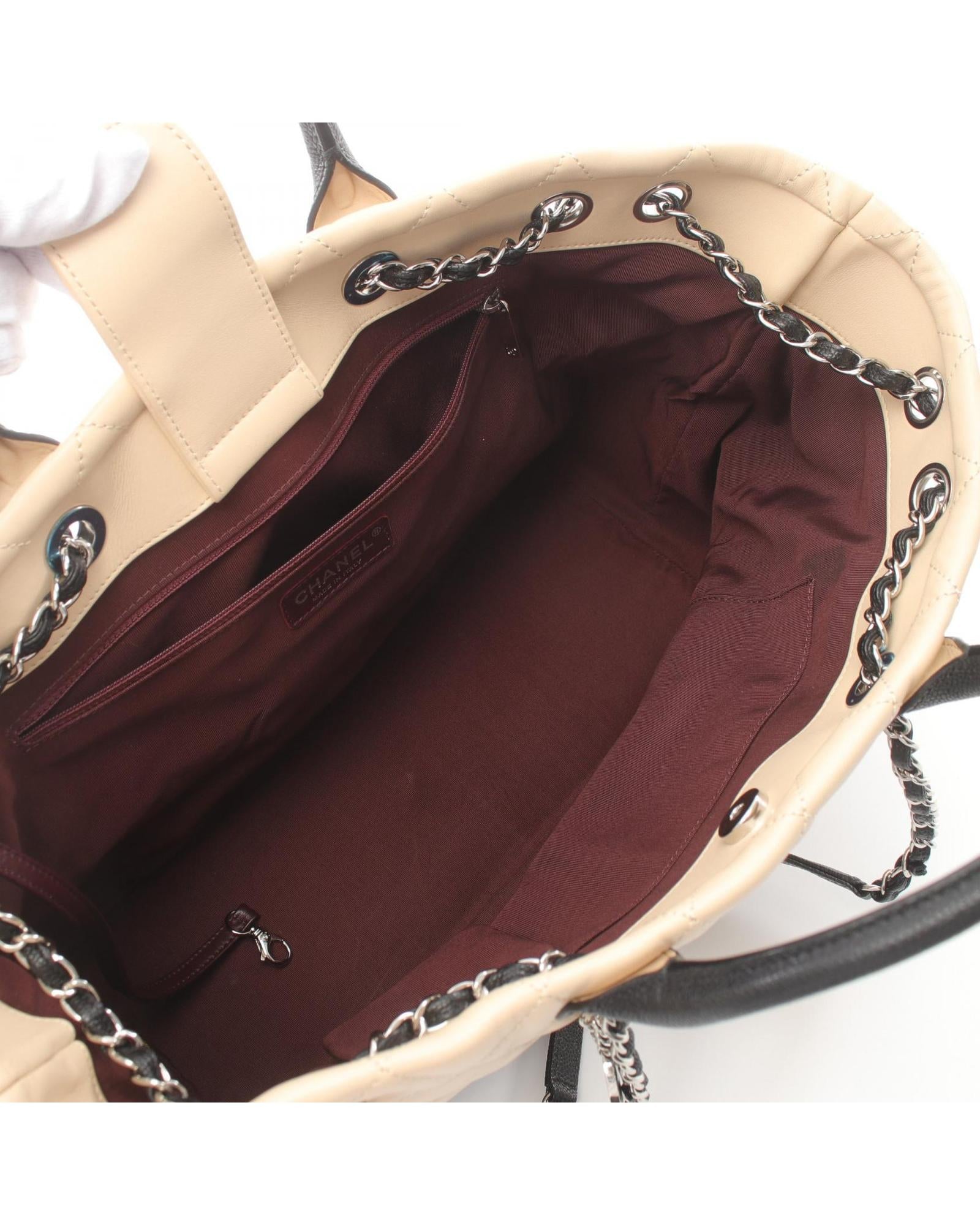 Grained Calfskin Leather Tote Bag with Dual-Tone Exterior
