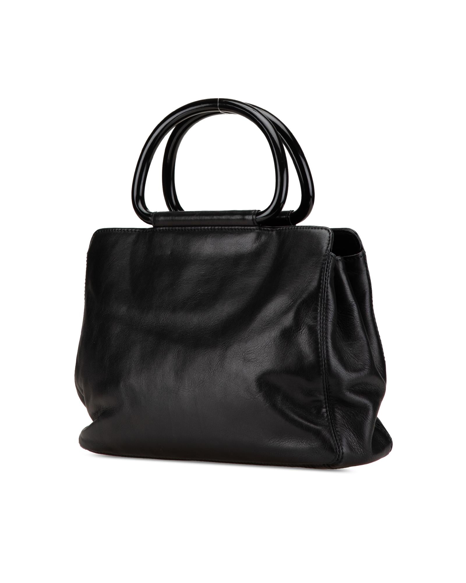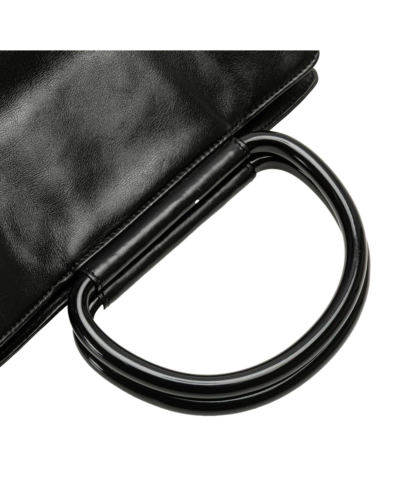 Lambskin Tote with Tortoise Shell Handles and Interior Zip Pockets