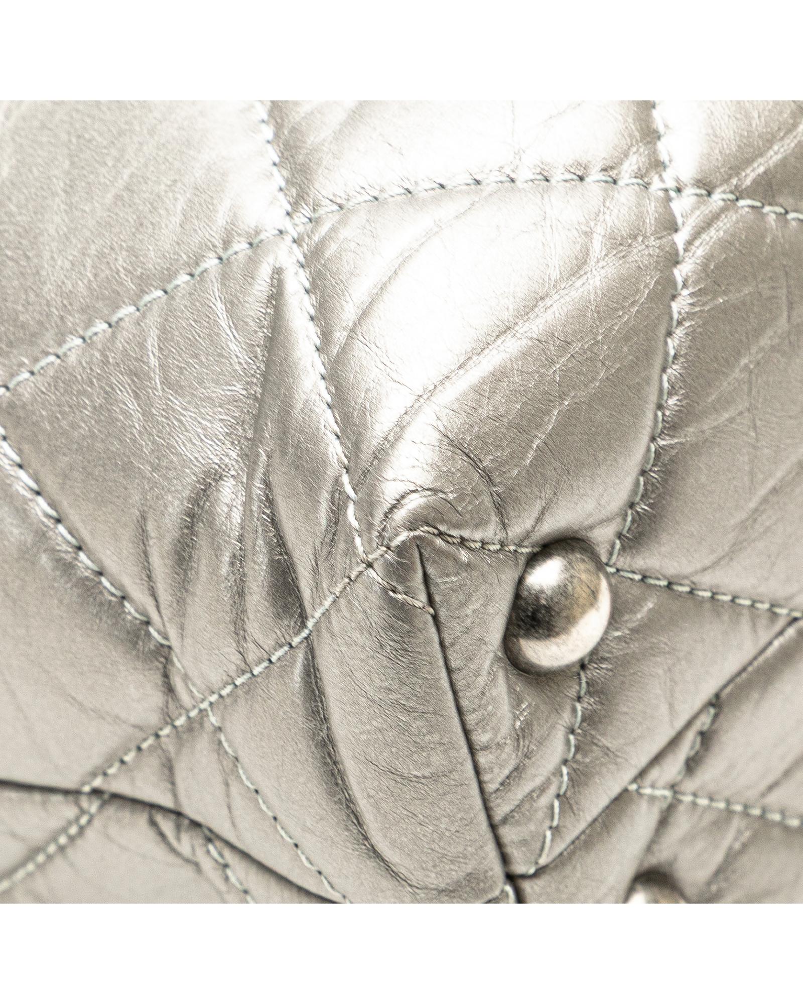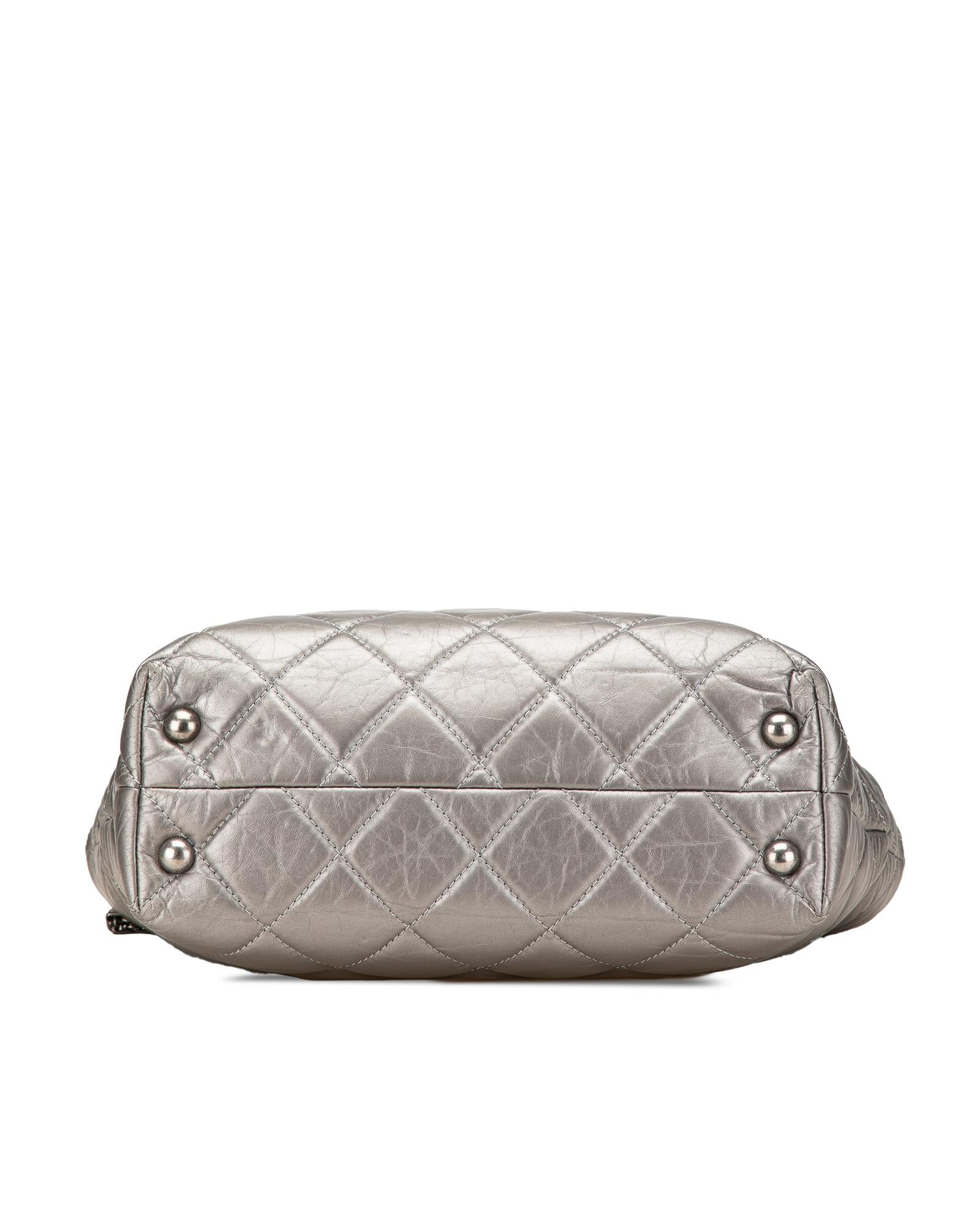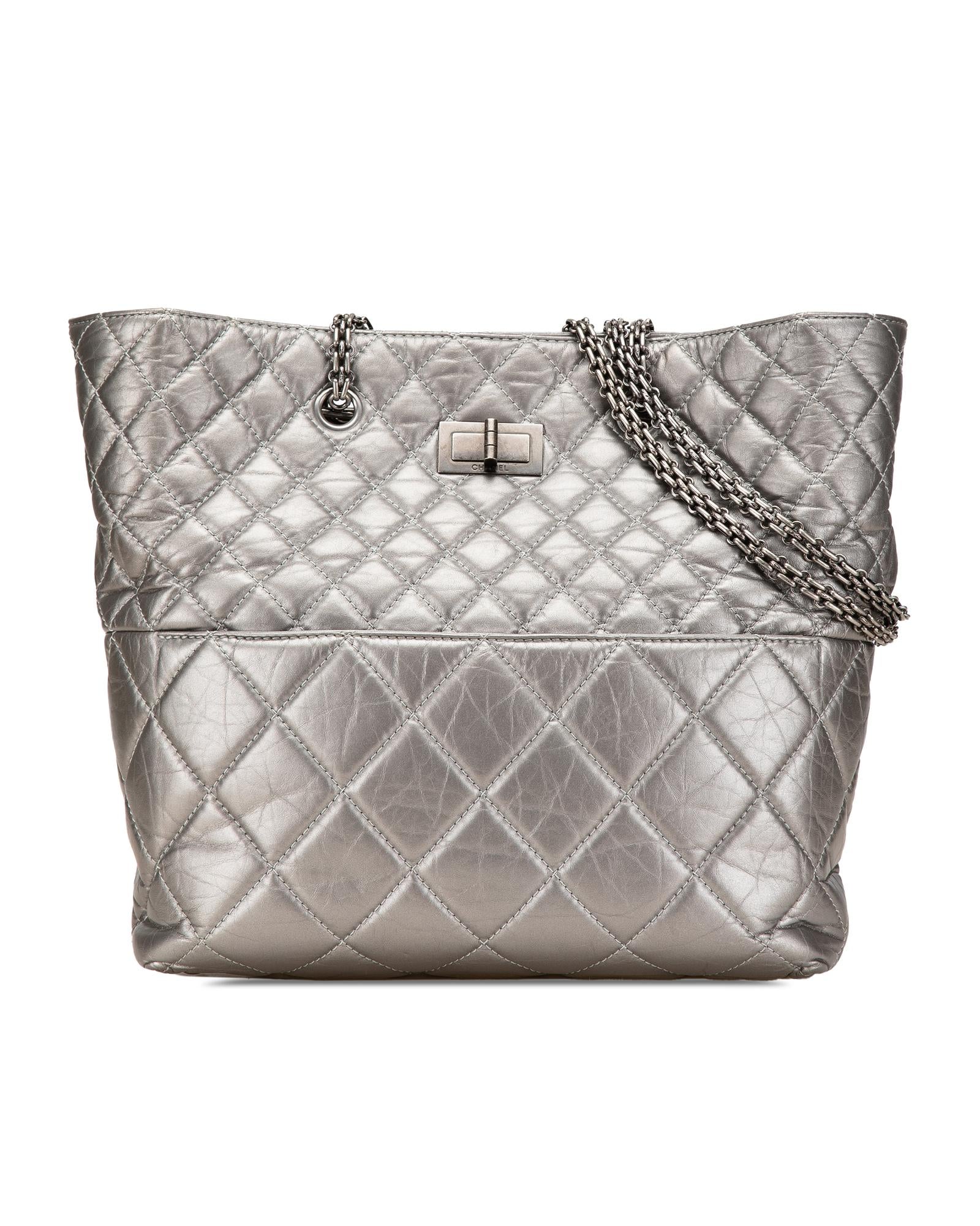 Quilted Aged Calfskin Leather Tote with Chain Straps