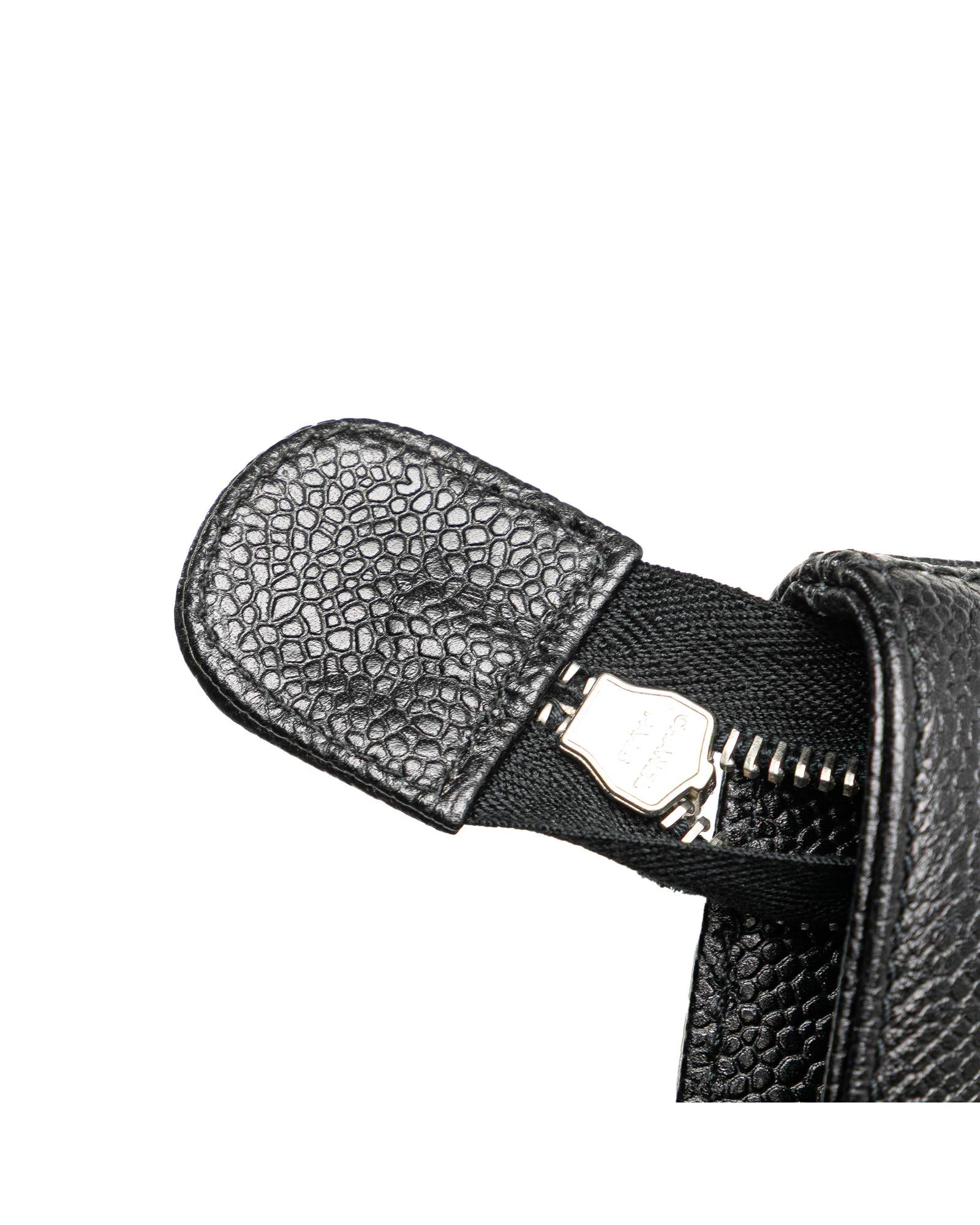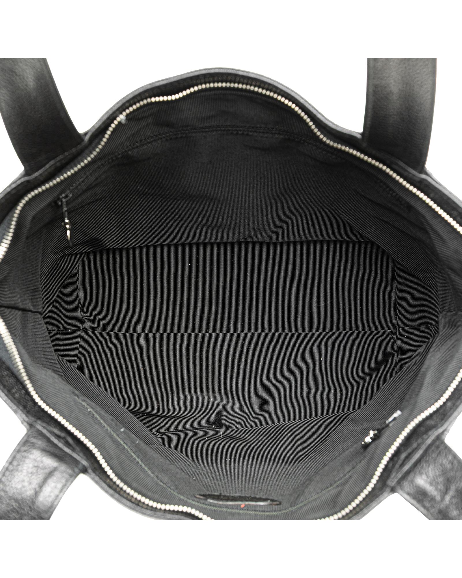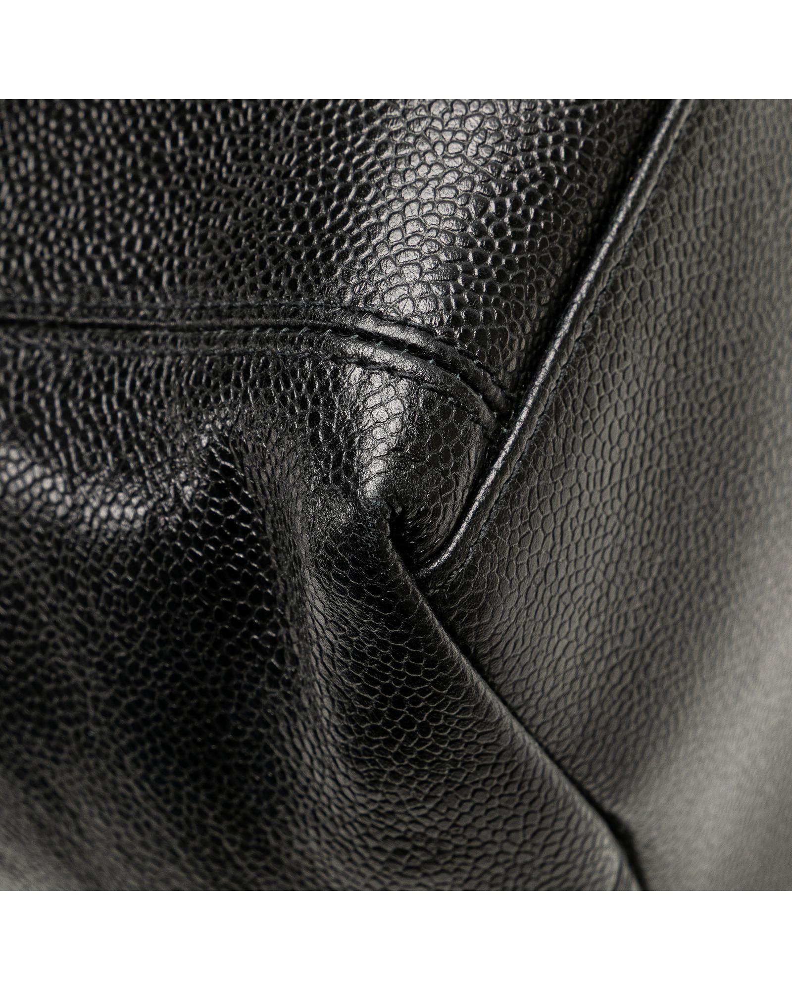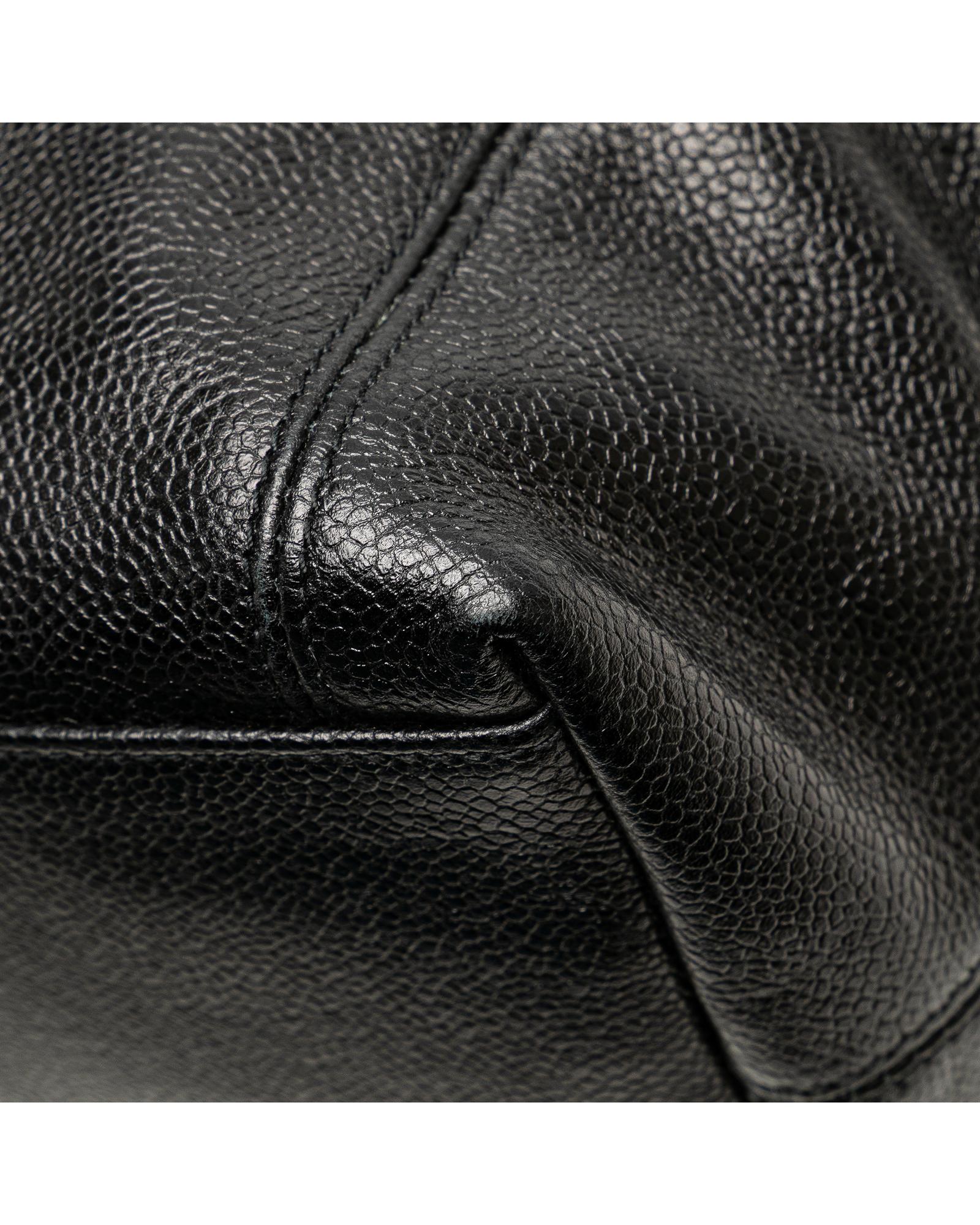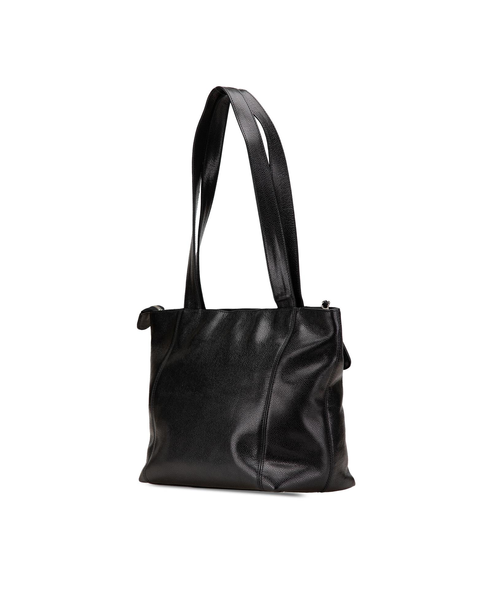Caviar Leather Tote Bag with Flat Straps and Interior Zip Pockets