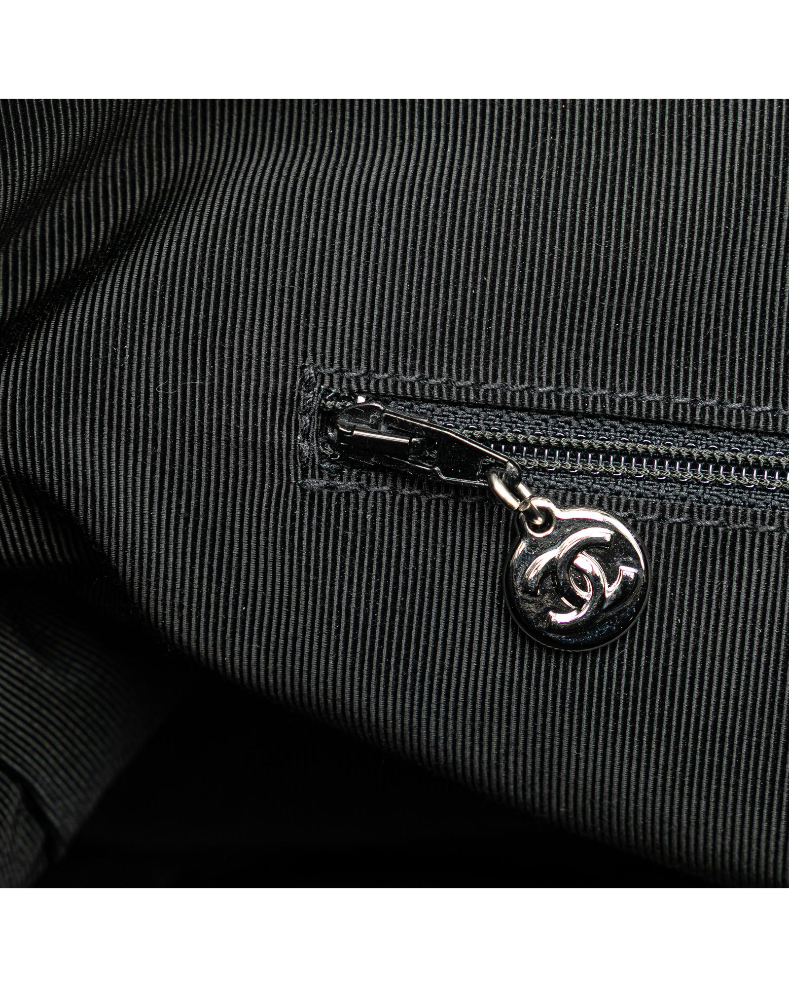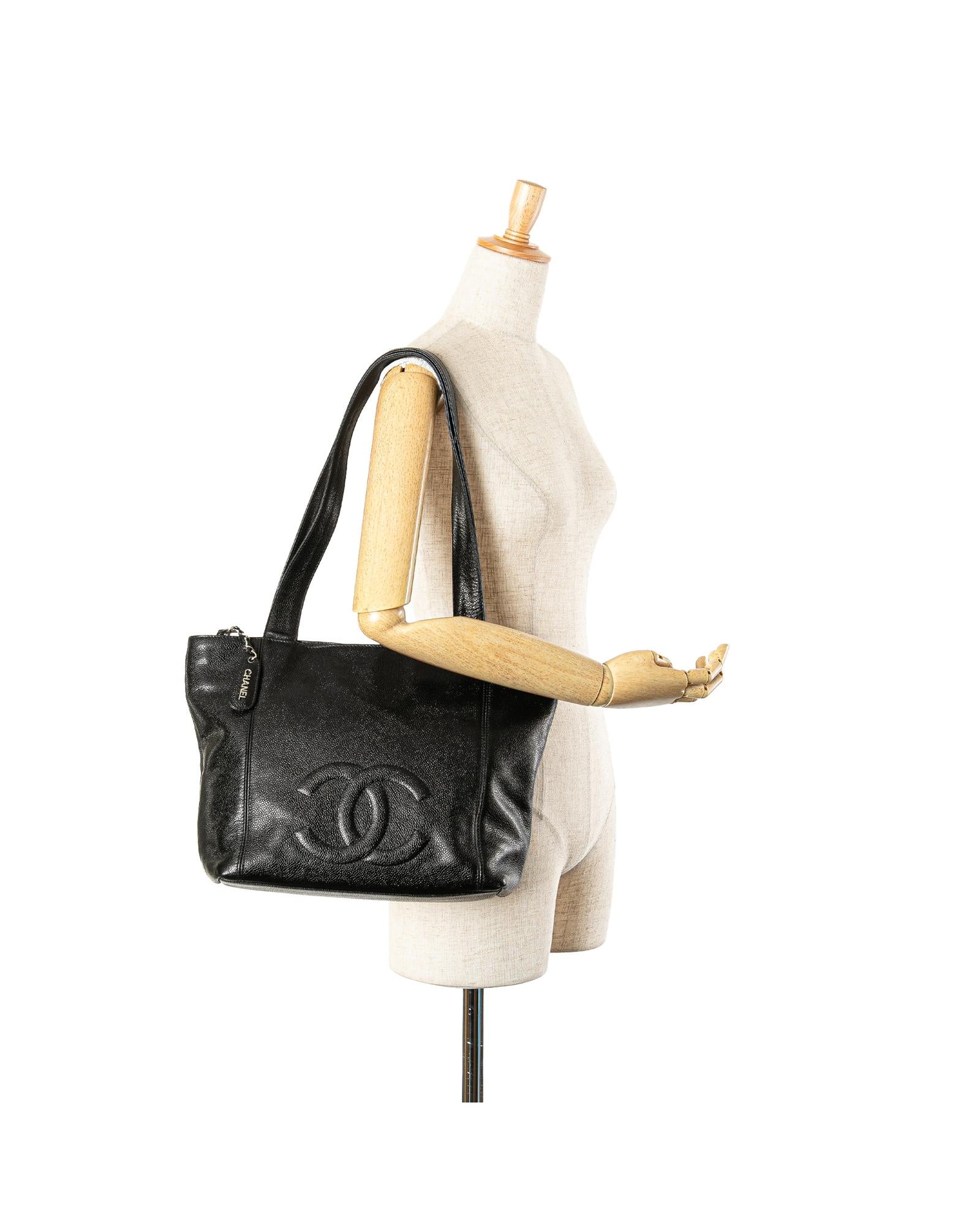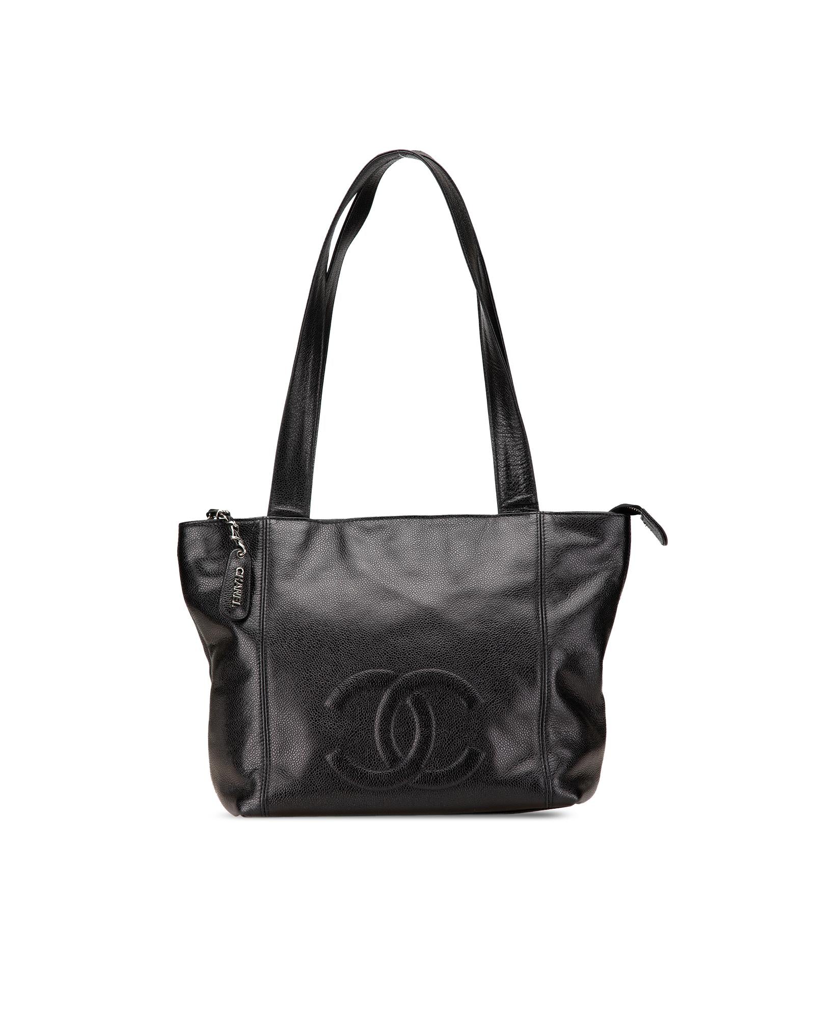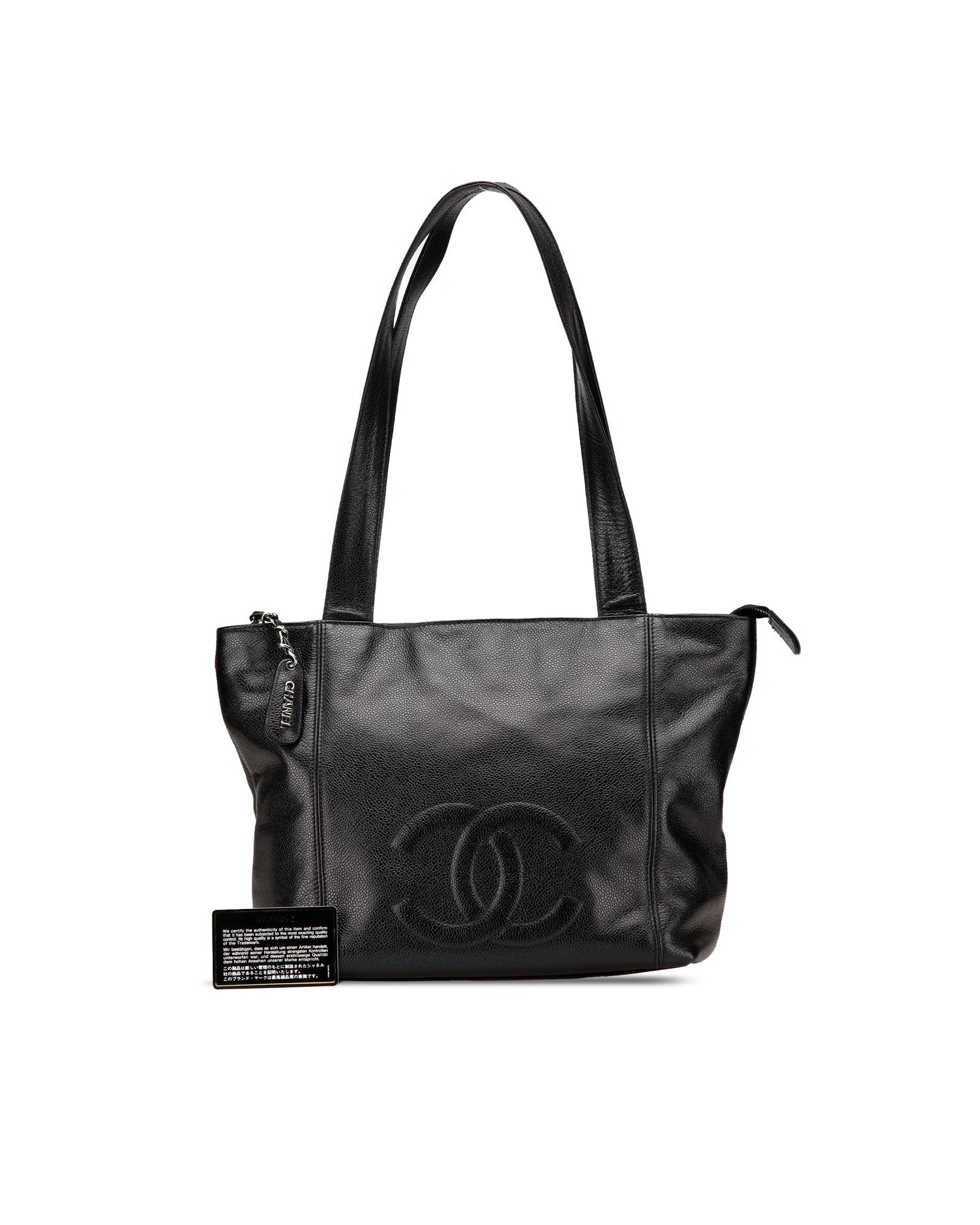 This tote bag features a leather body flat leather straps a top zip closure and interior zip pockets.Brand: Chanel