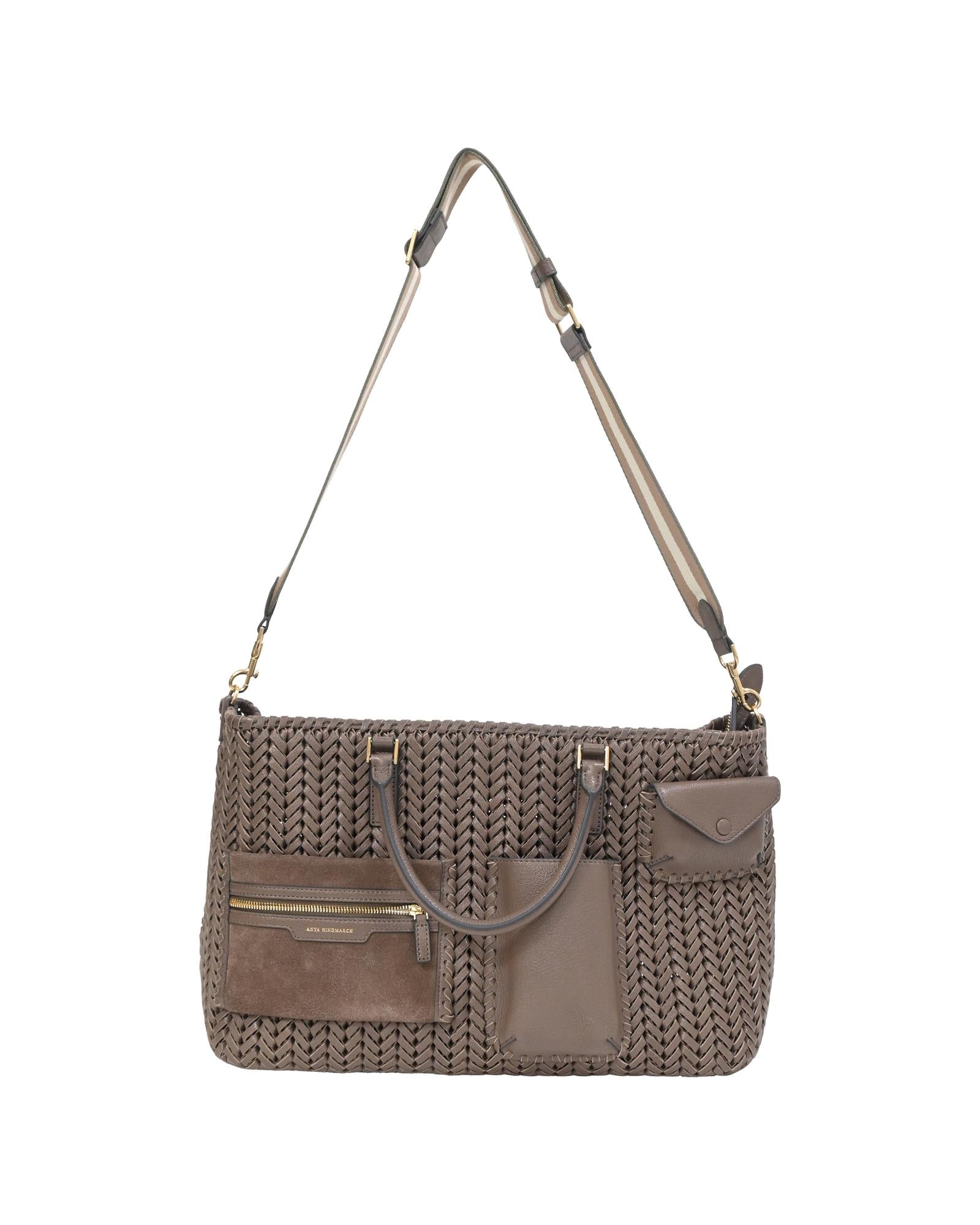 - Anya Hindmarch Pocket Neeson Woven Tote in Brown Leather