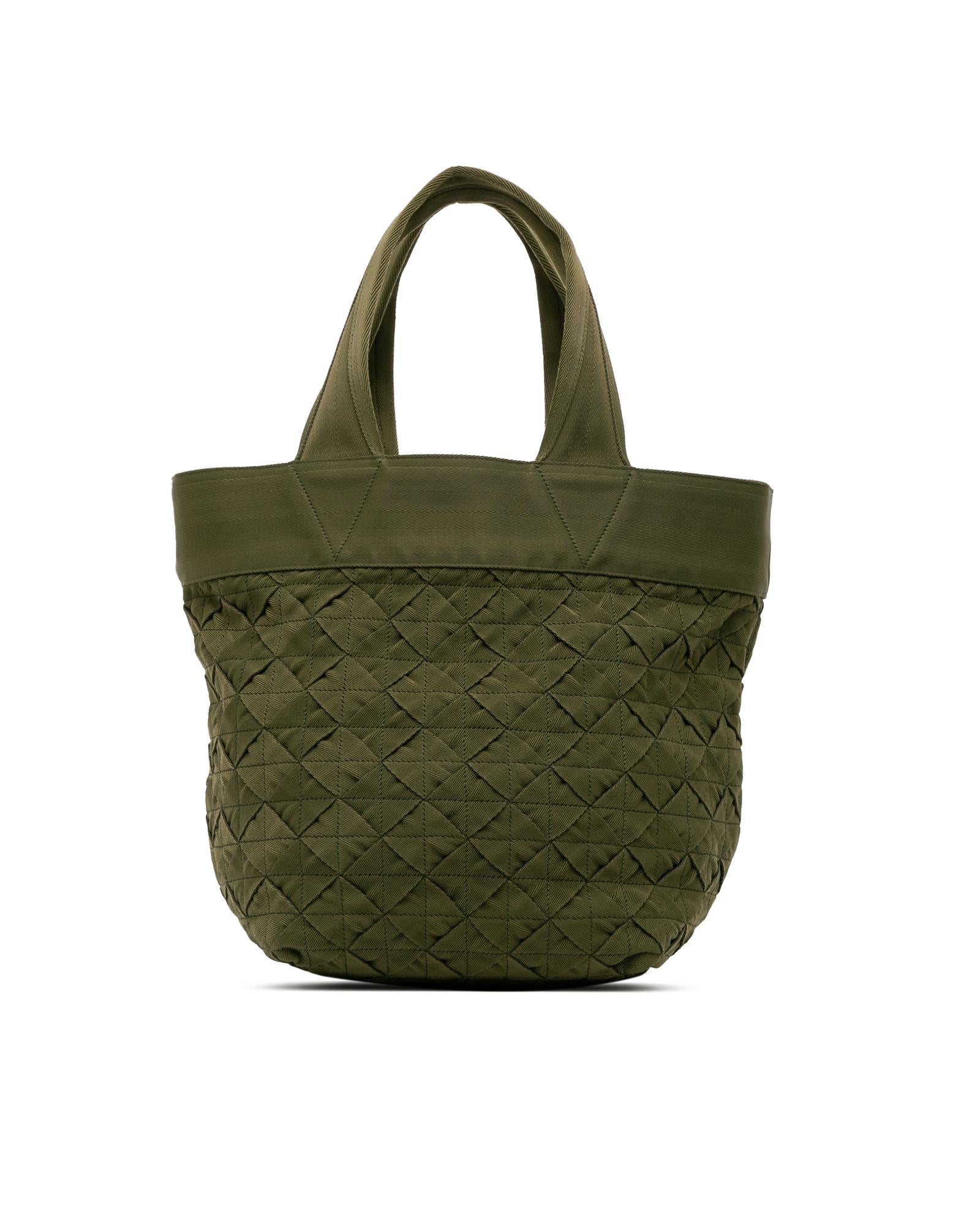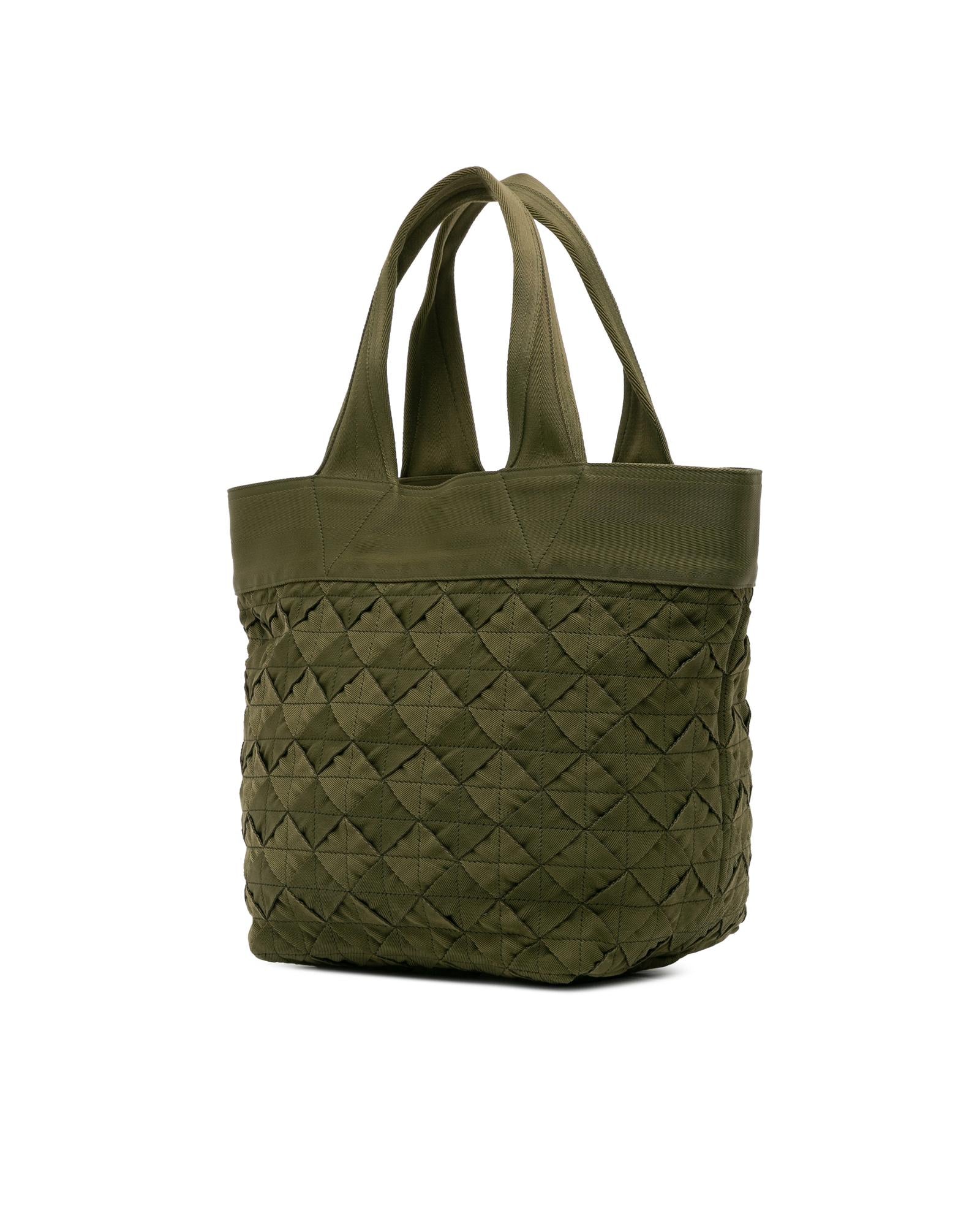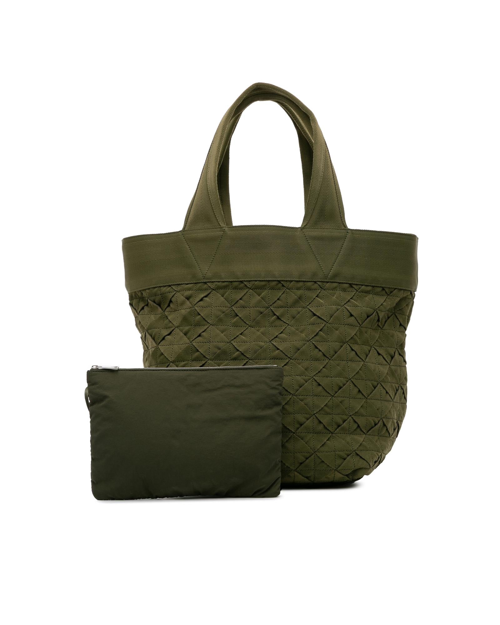 This tote features a woven canvas body flat handles an open top and an interior zip pouch.Brand: Bottega Veneta