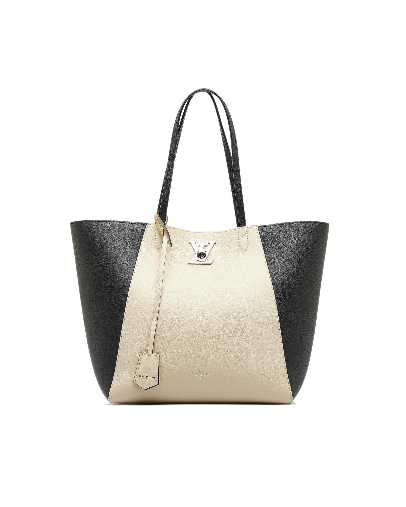 The Lockme Cabas tote features a leather body flat leather straps a twist lock closure and interior zip and slip pockets.Brand: Louis Vuitton