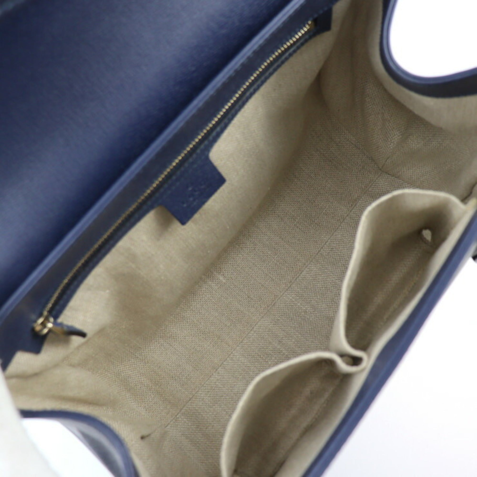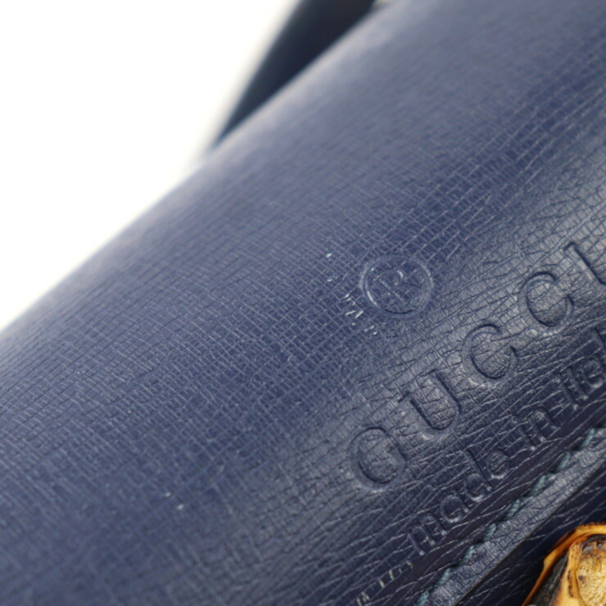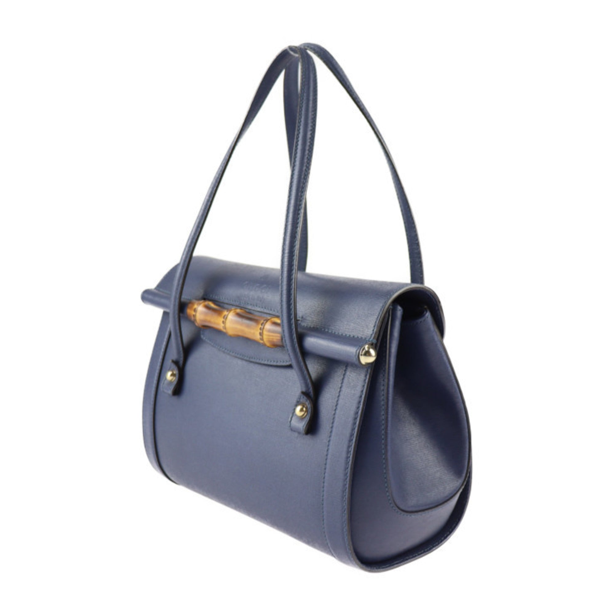 Brand: Gucci Model: Bamboo Color: Navy Material: Leather Inclusions: / Dimensions: 21cm x 27cm x 13.5cm Serial number: 338989 Country of origin: Italy Condition: AB - good condition. Gucci's Bamboo line offers a versatile selection of handbags shoulder bags and tote bags in navy leather accentuated with gold hardware delivering an elegant touch to any ensemble. Secured with a magnetic closure these accessories cater specifically to women. The item is in good condition overall with no notable damage to the exterior although there are some creases and cracks along the edges. The interior remains intact without any visible issues maintaining its quality and functionality. We recommend that you look at all the pictures before making your purchase to ensure that you are satisfied with the condition of the item.