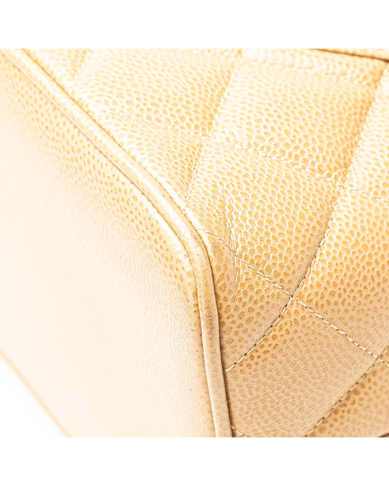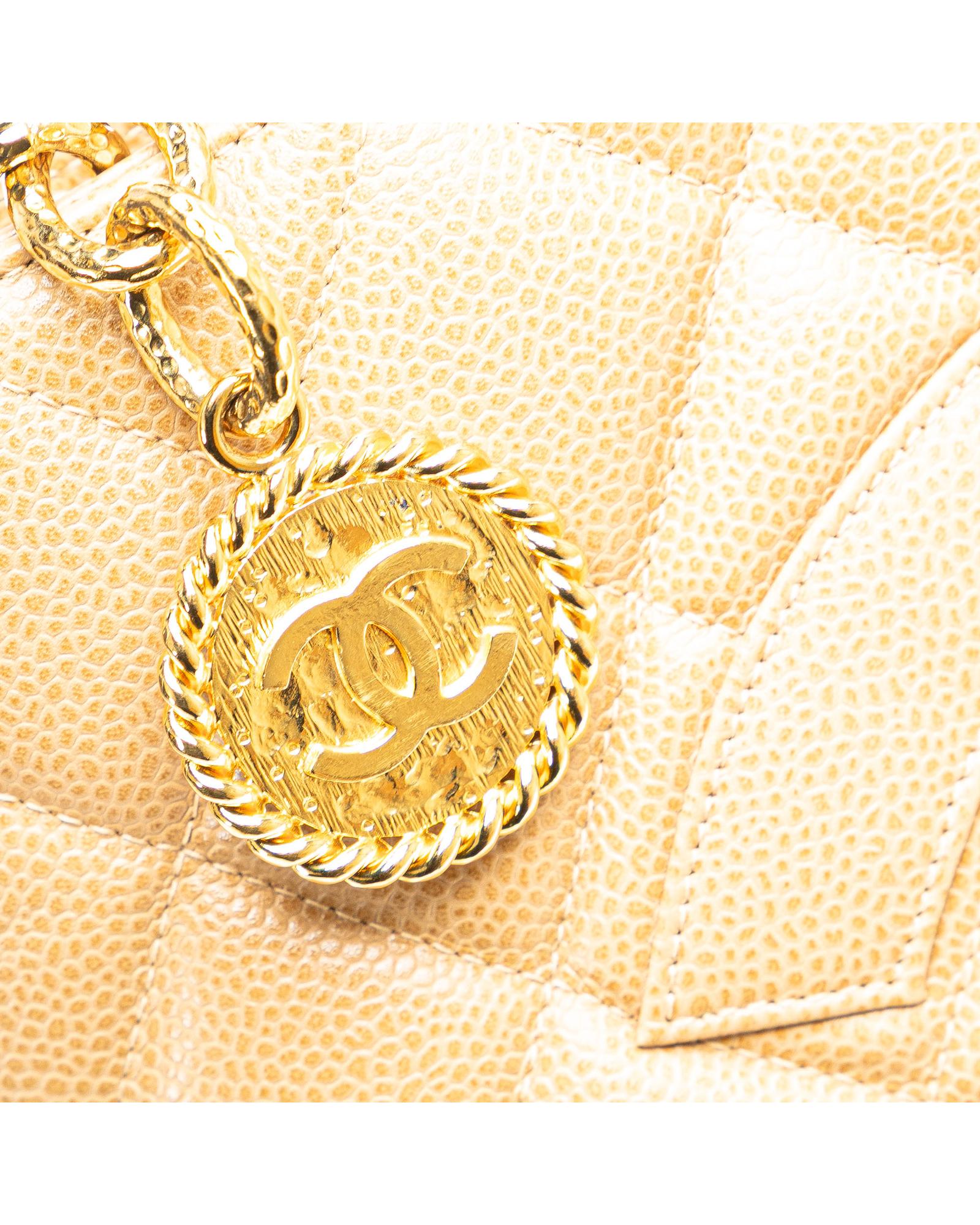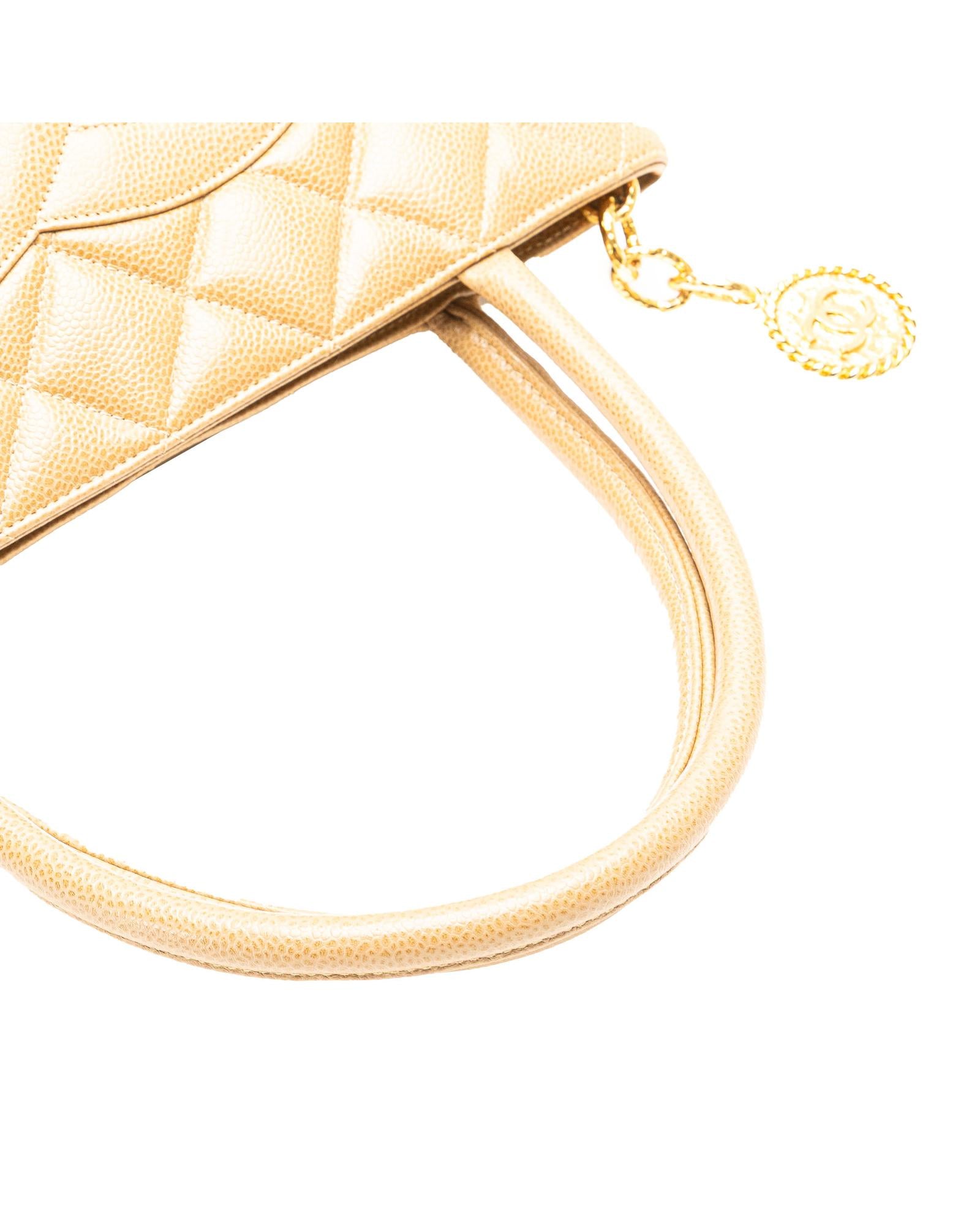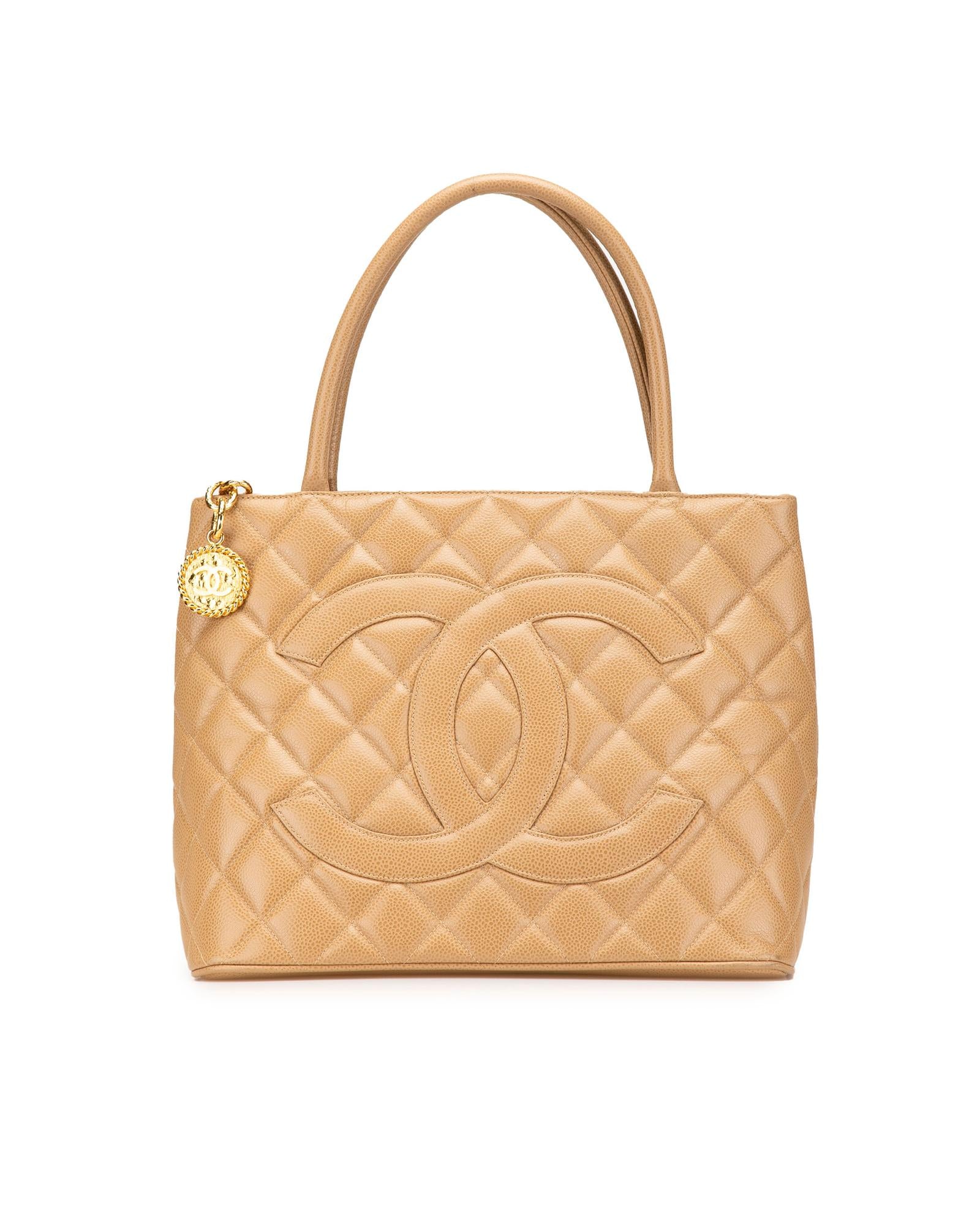 The Medallion tote bag features a quilted caviar leather body rolled leather handles a top zip closure exterior back slip pocket and interior zip and slip pockets.Brand: Chanel