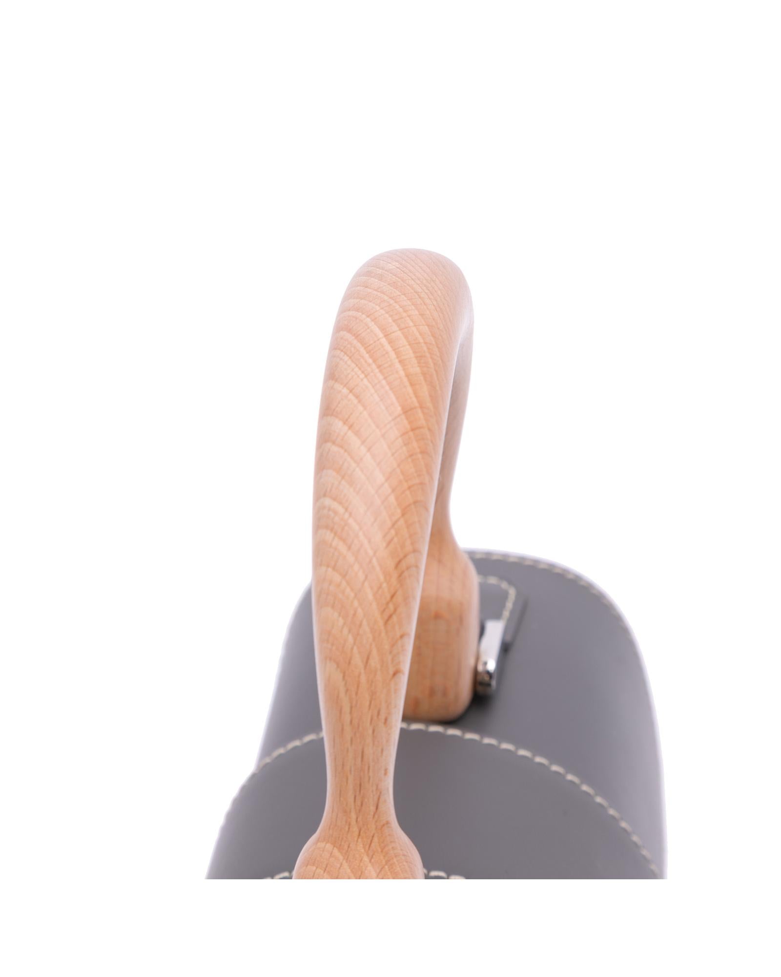 Structured Coated Canvas Bag with Leather Trim and Wooden Handle
