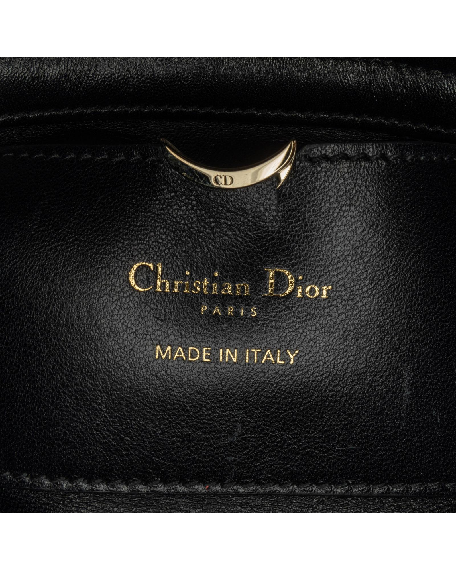 The Lady D-Joy features a leather body with embellishments flat top handles a detachable flat strap an open top and an interior slip pocket.Brand: Dior