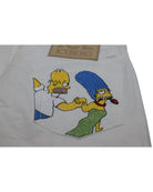- Embroidered rear pocket featuring Homer and Marge Simpson