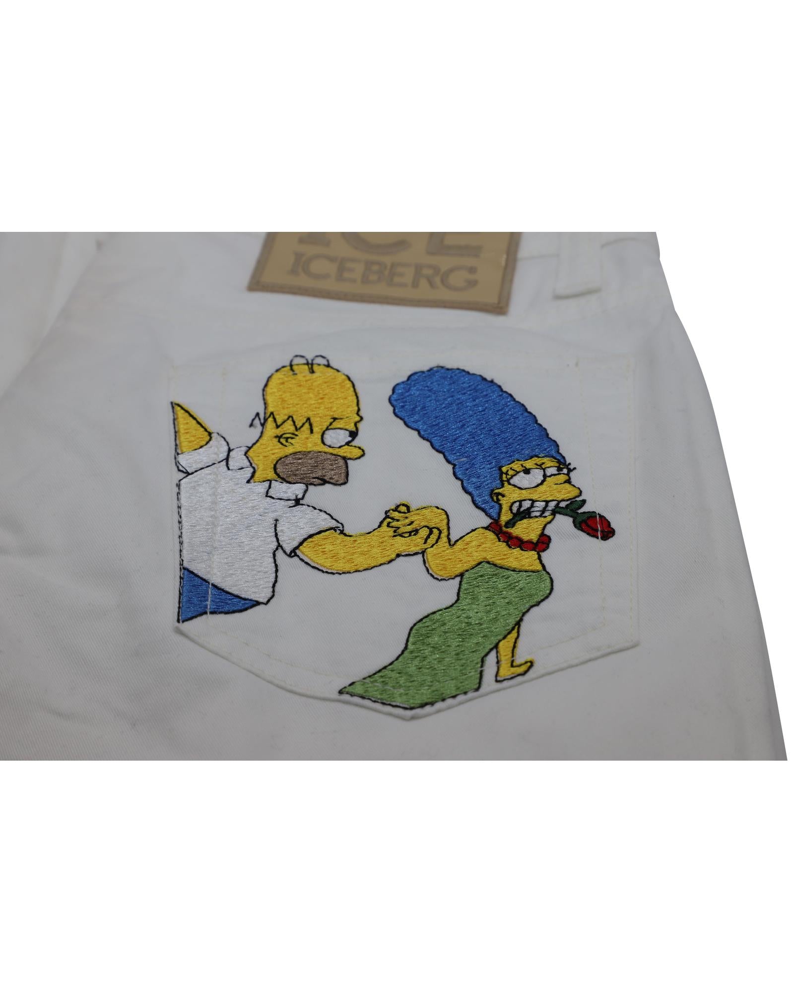 - Iceberg x The Simpsons Embroidered Pants in Cream Cotton