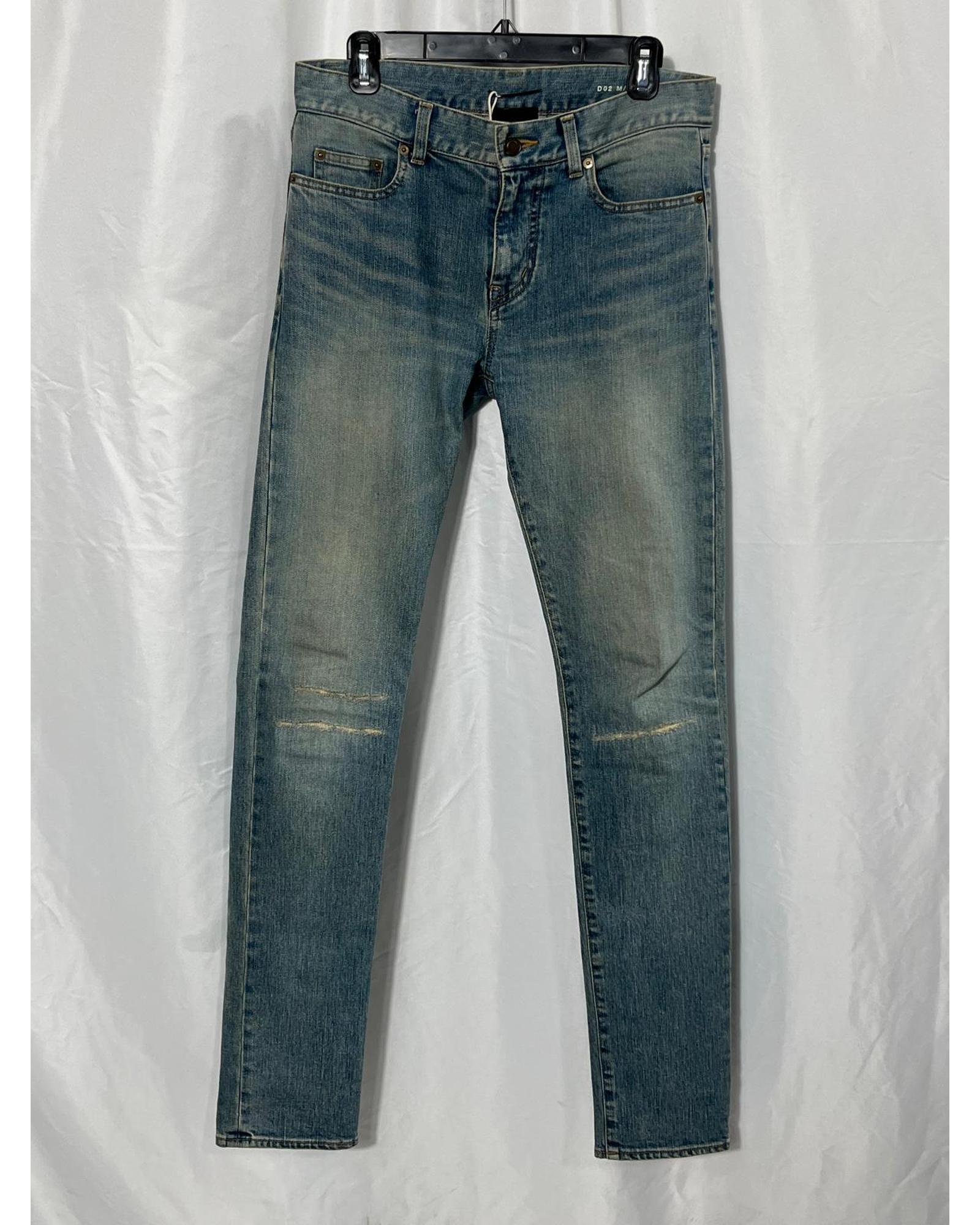 • Saint Laurent D02 Ripped Skinny Jeans in Blue Cotton Denim