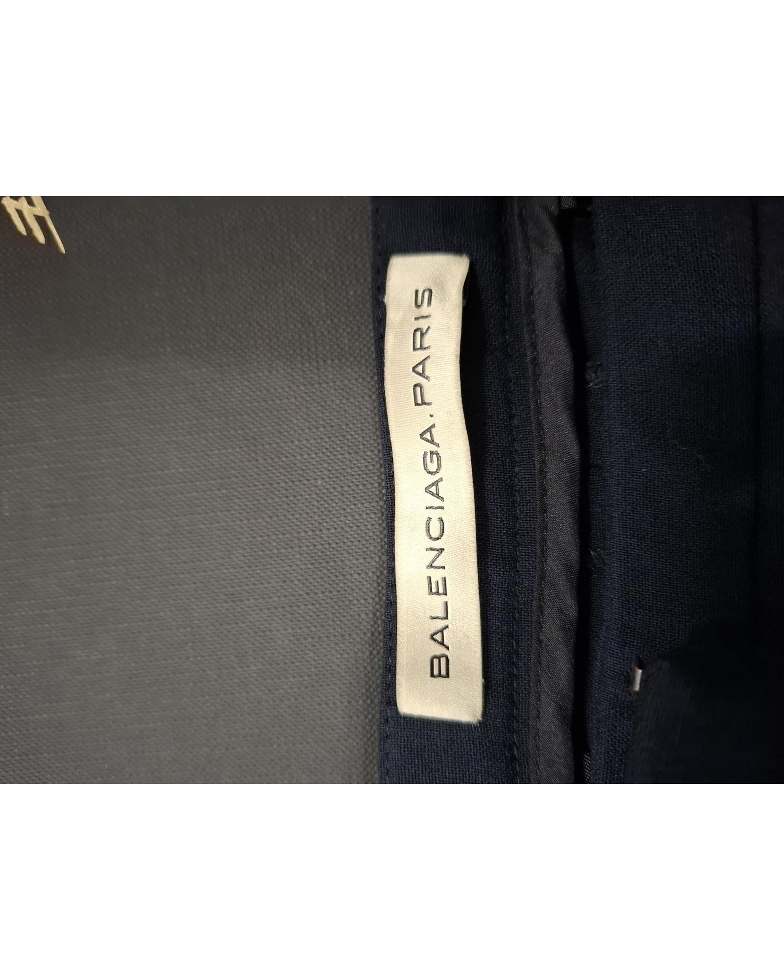 - Balenciaga Straight Leg Trousers in Navy Blue Wool
