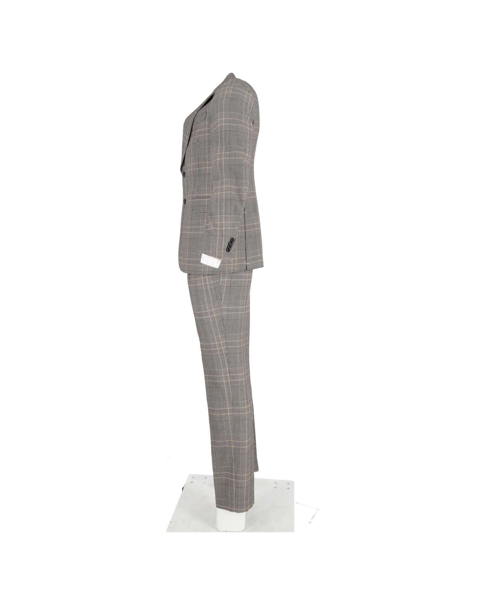 - breasted Prince of Wales plaid check suit in grey wool