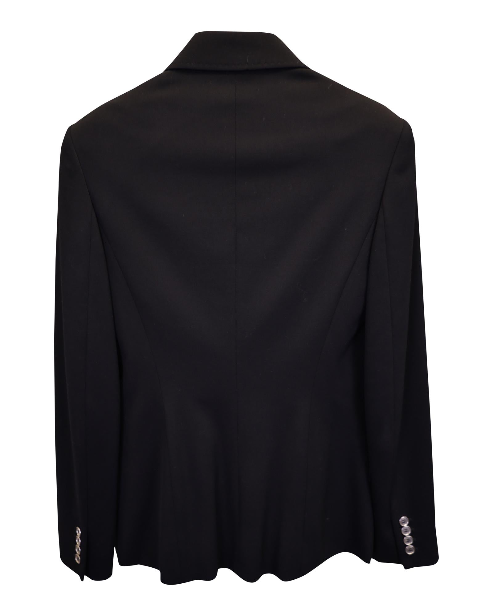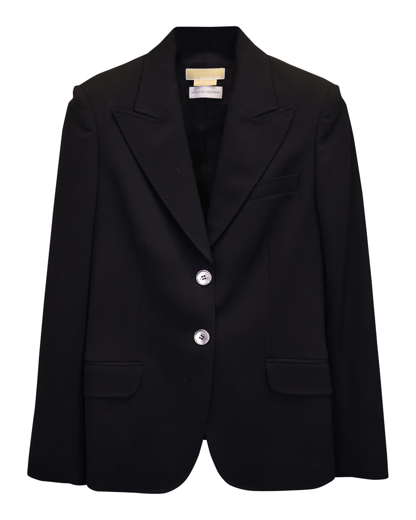 - breasted blazer with peak collar and silver buttons