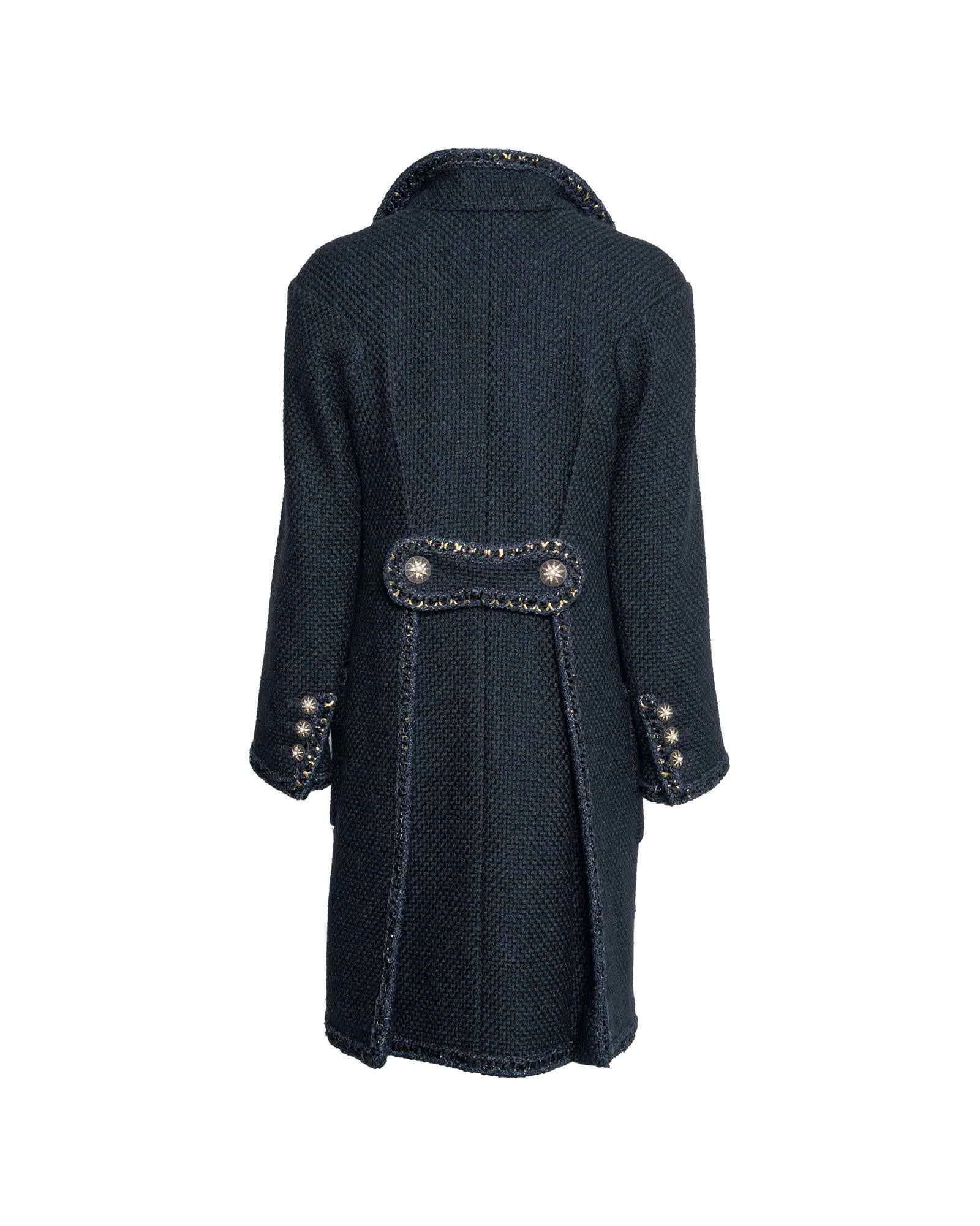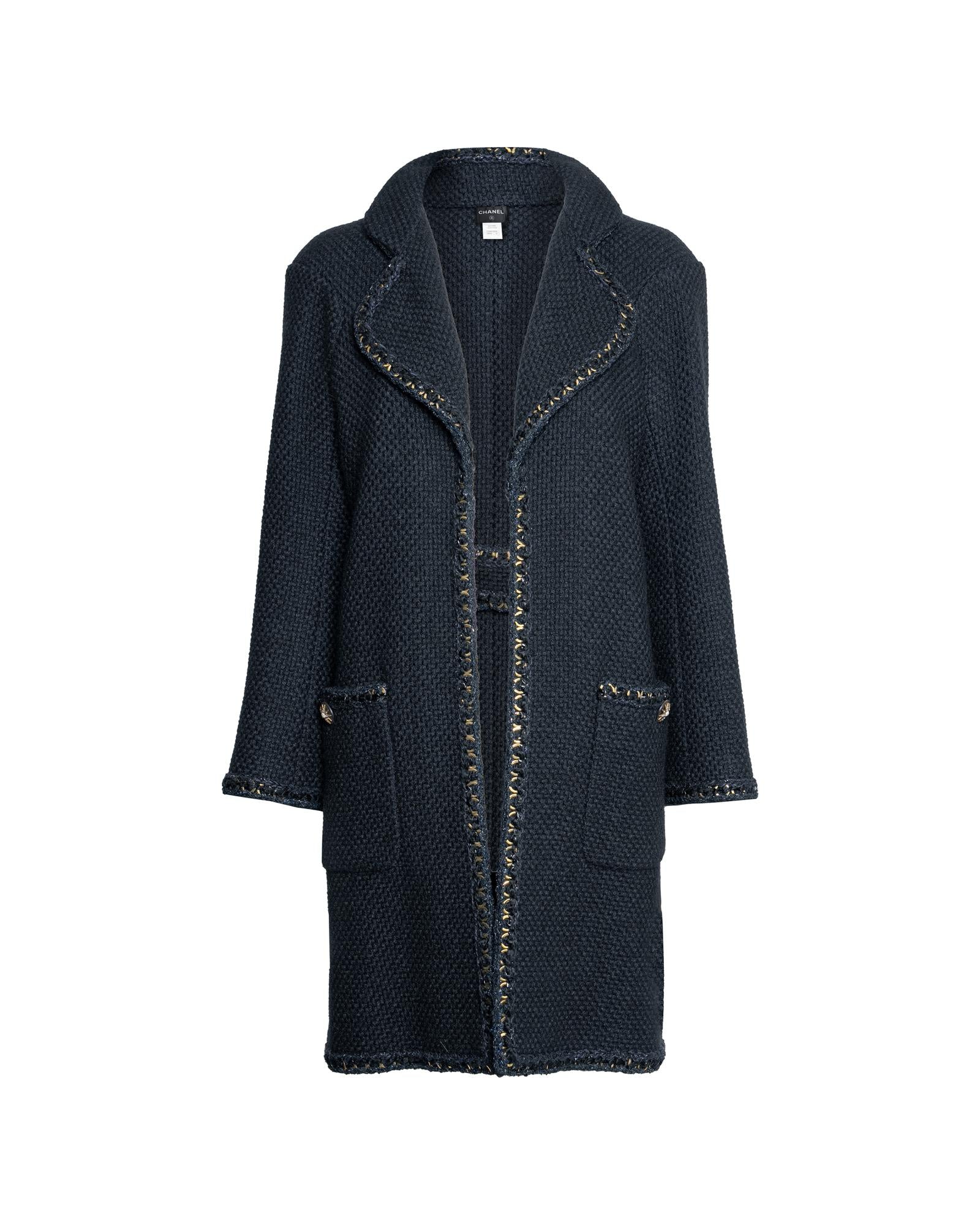 Elegant Textured Knit Open Front Coat with Decorative Trim