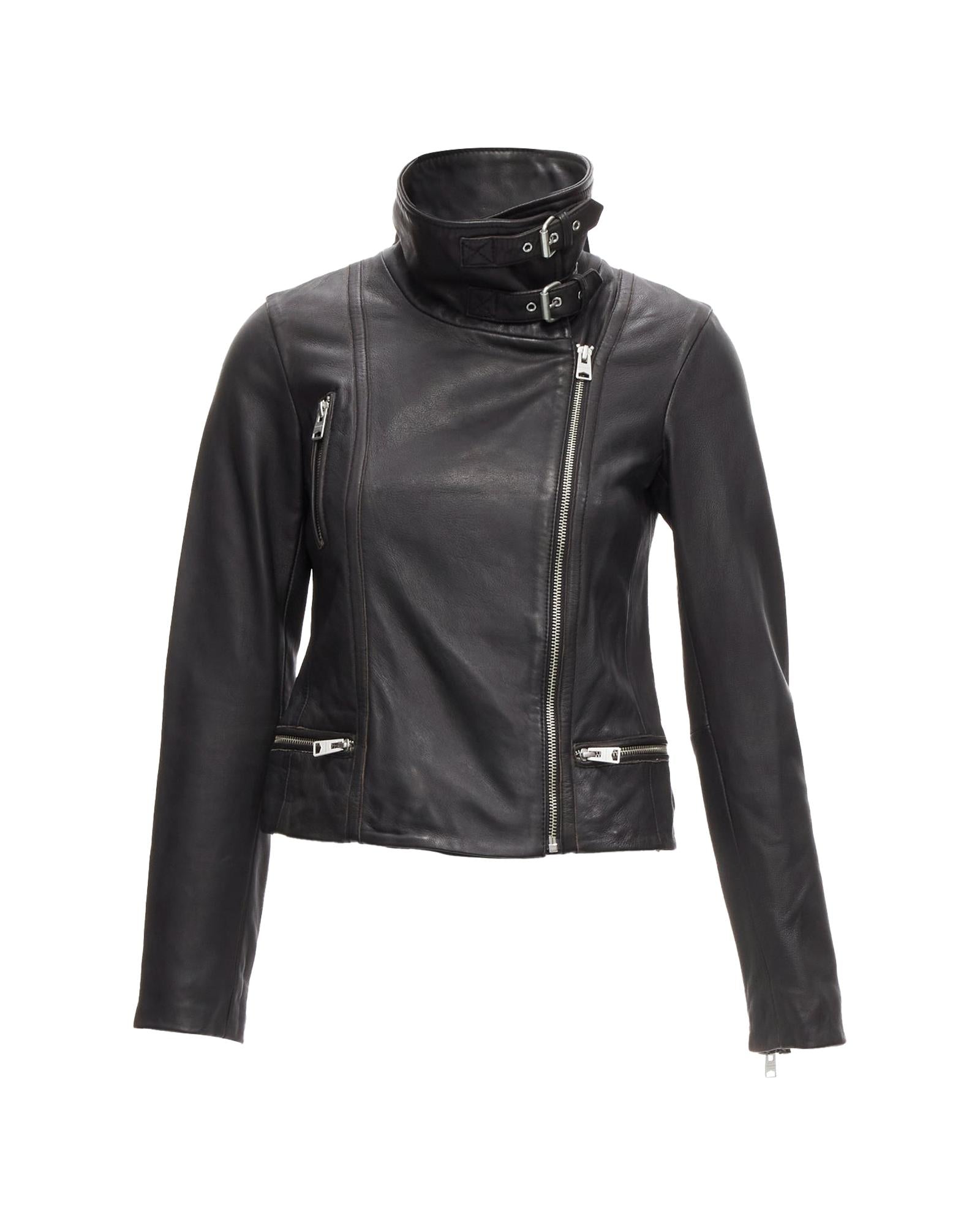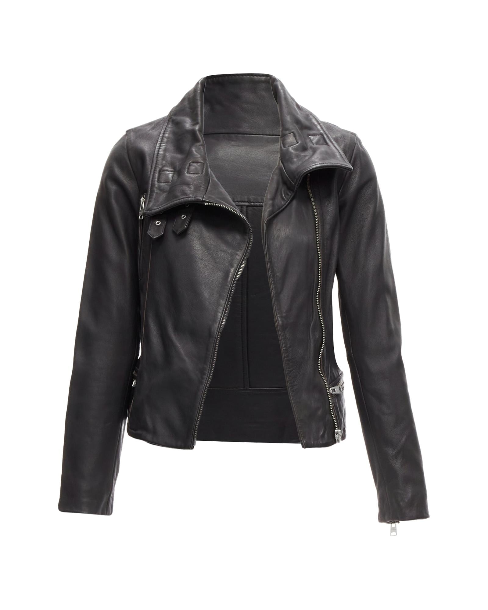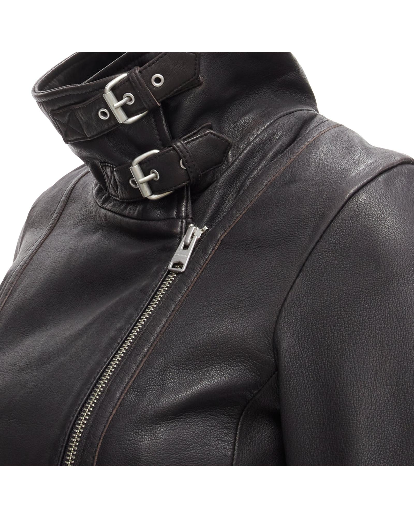 Pre-owned Fashionable Zipper Closure Leather Jacket Outerwear