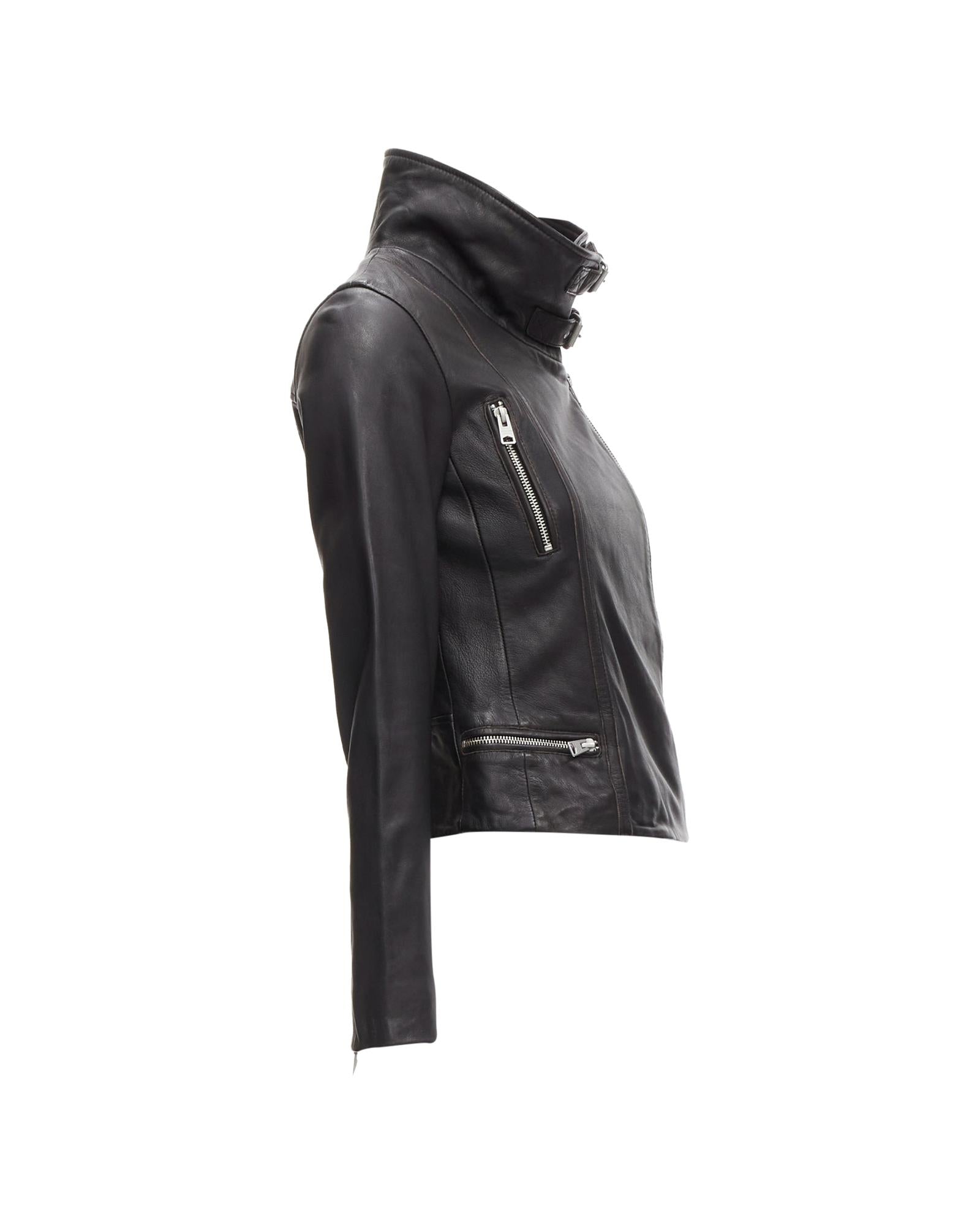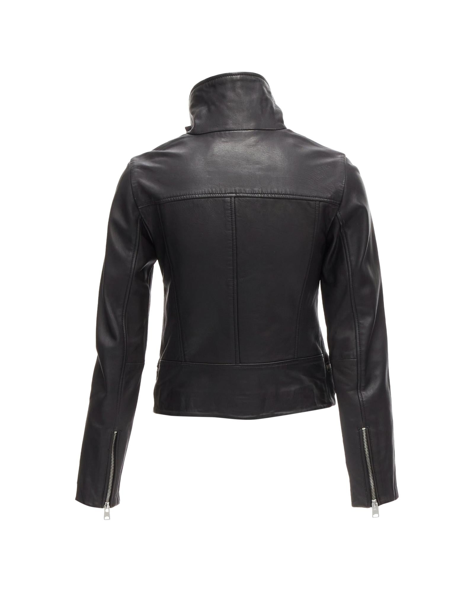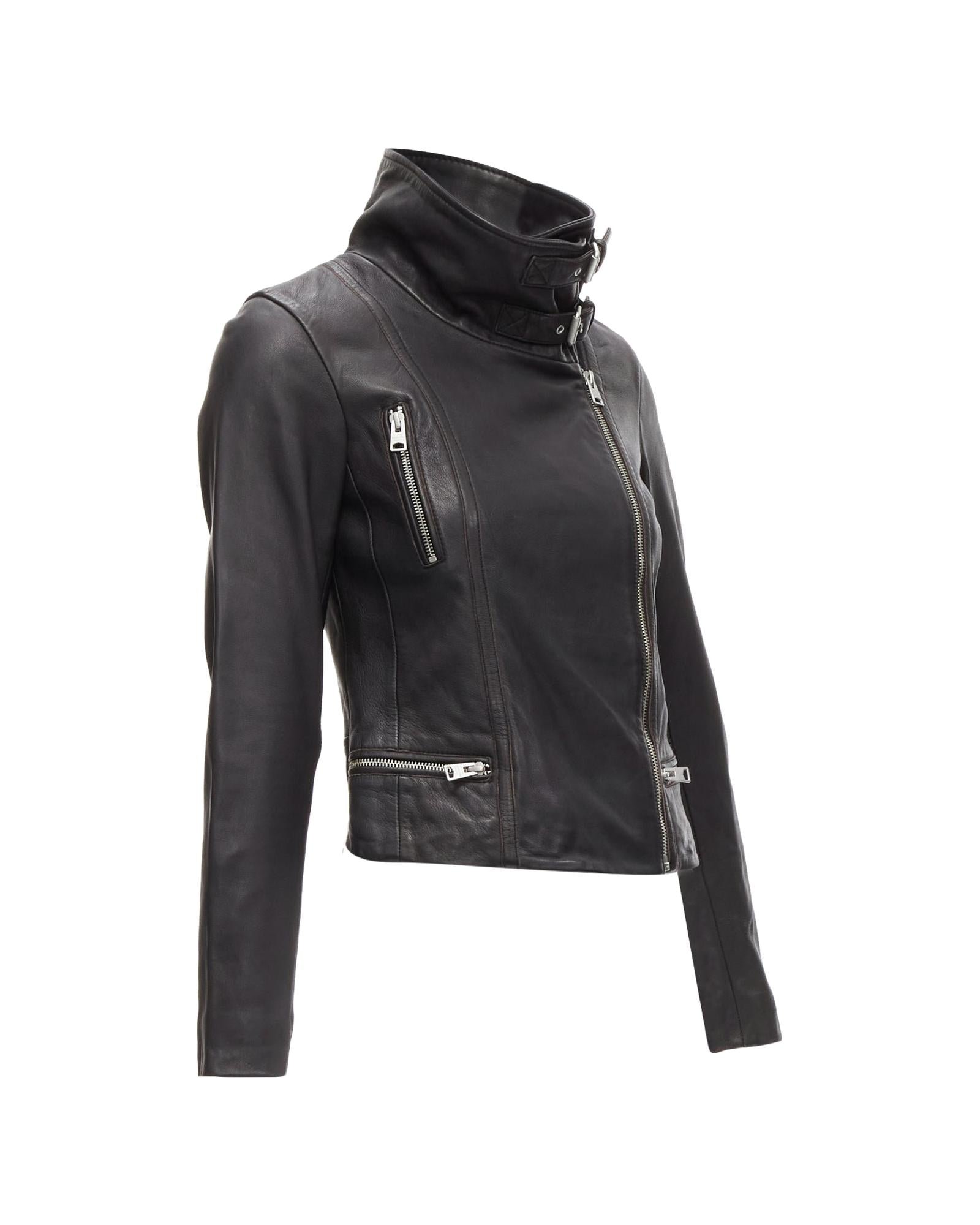 Pre-owned Fashionable Zipper Closure Leather Jacket Outerwear