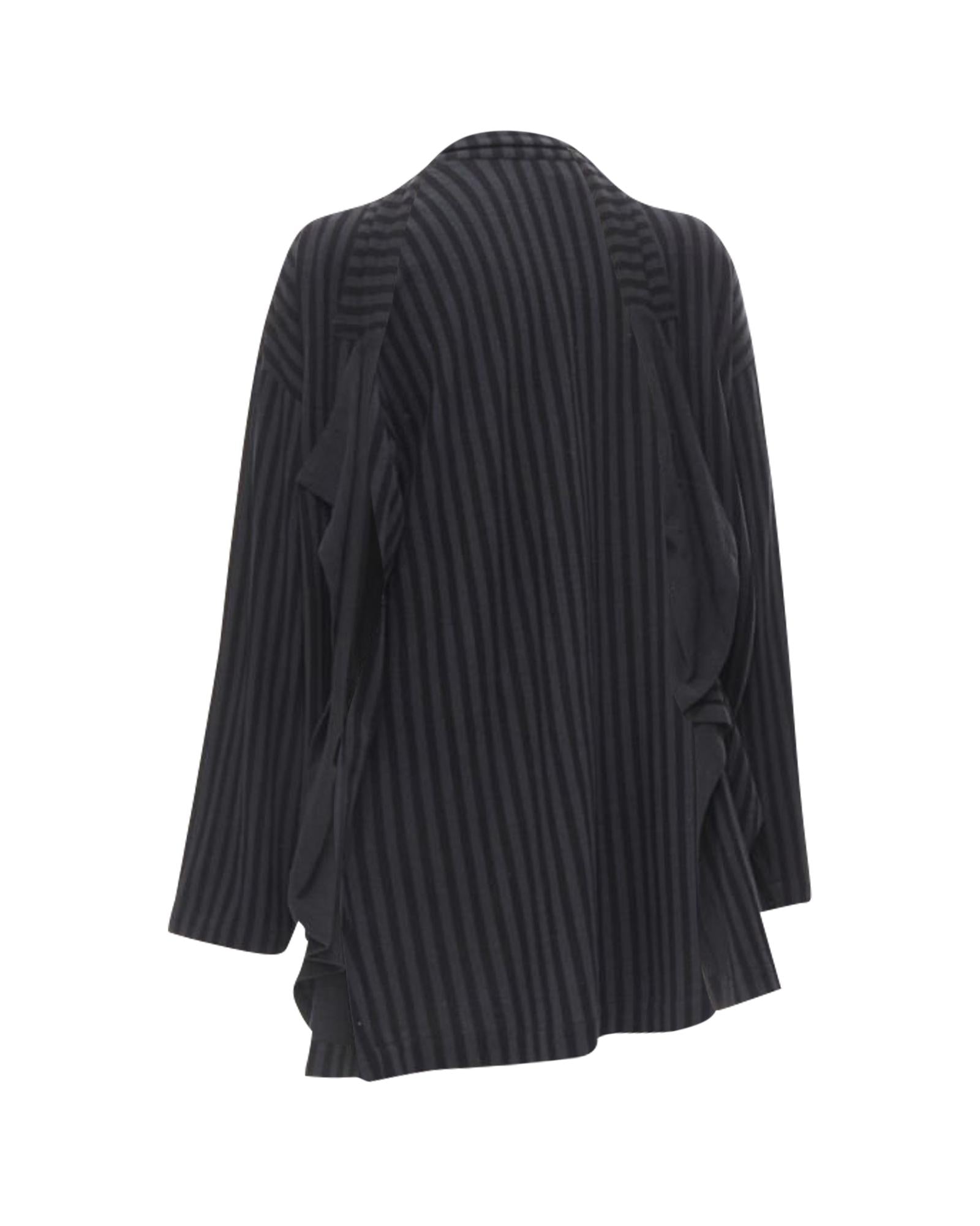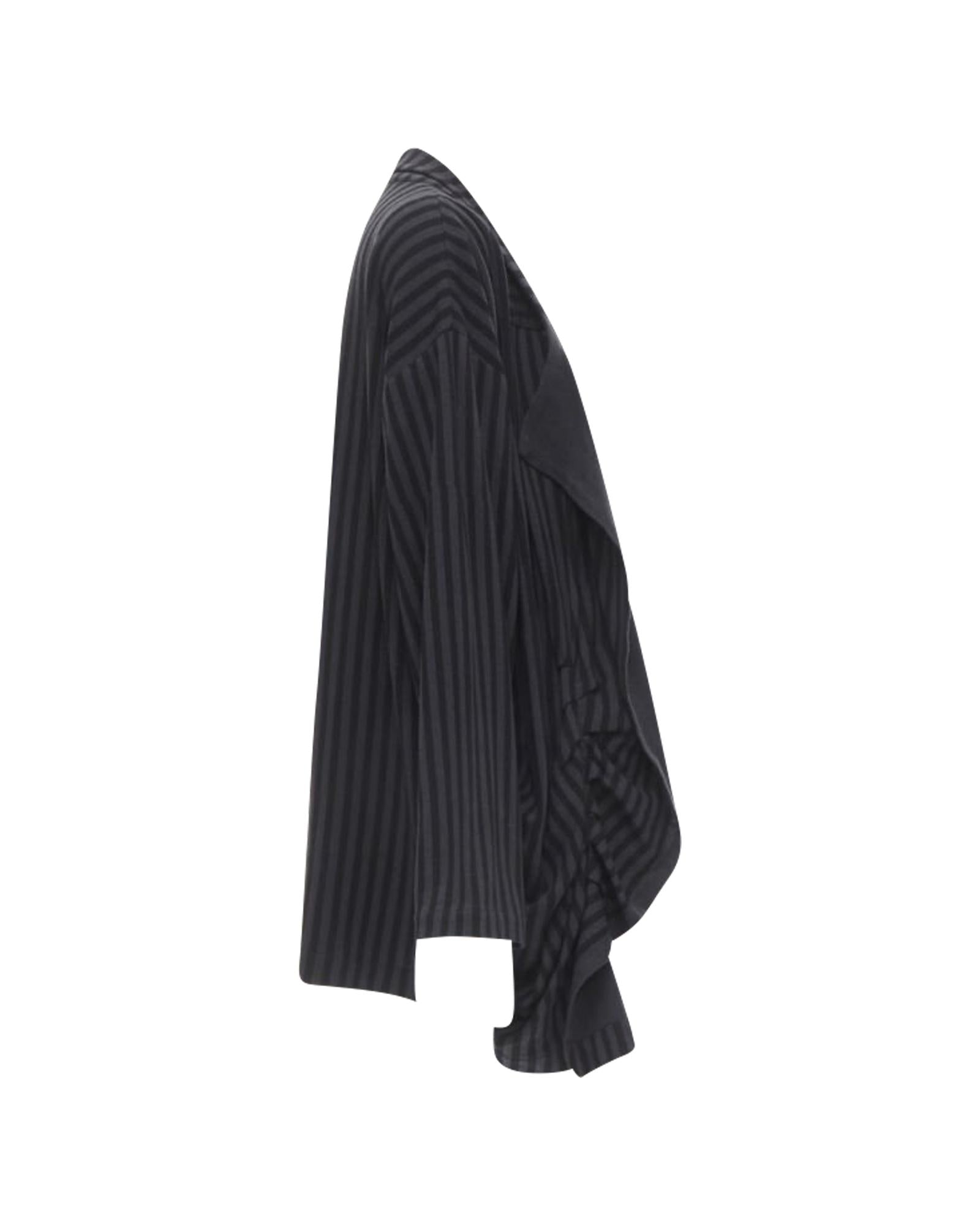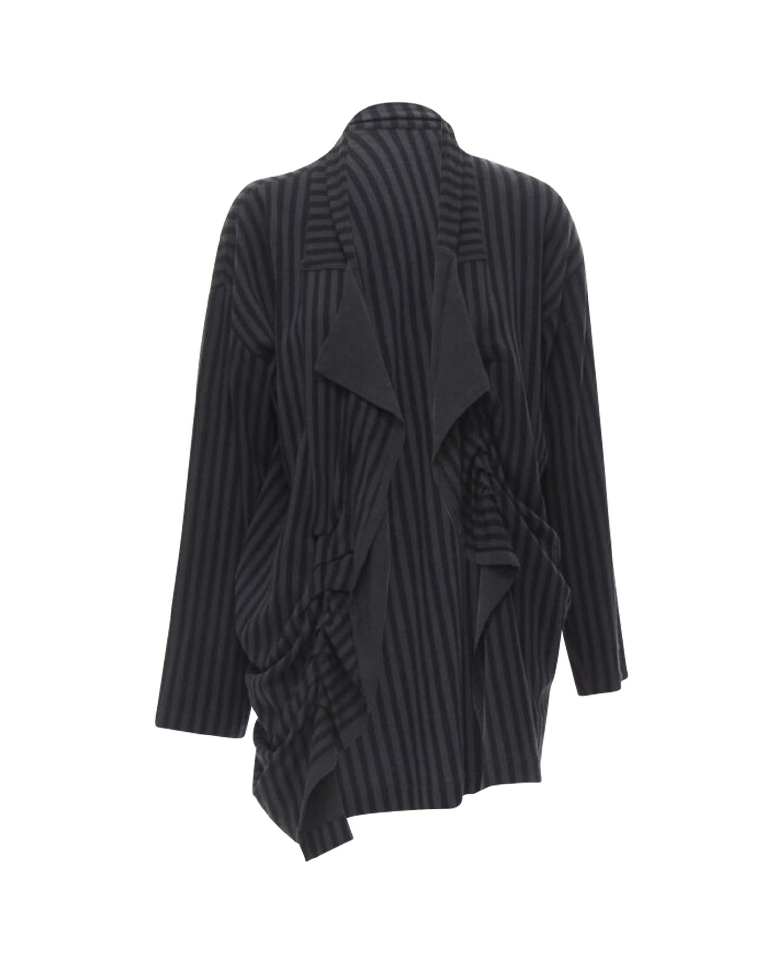 Pre-owned Striped Open Front Cardigan with Draped Detail and Pockets