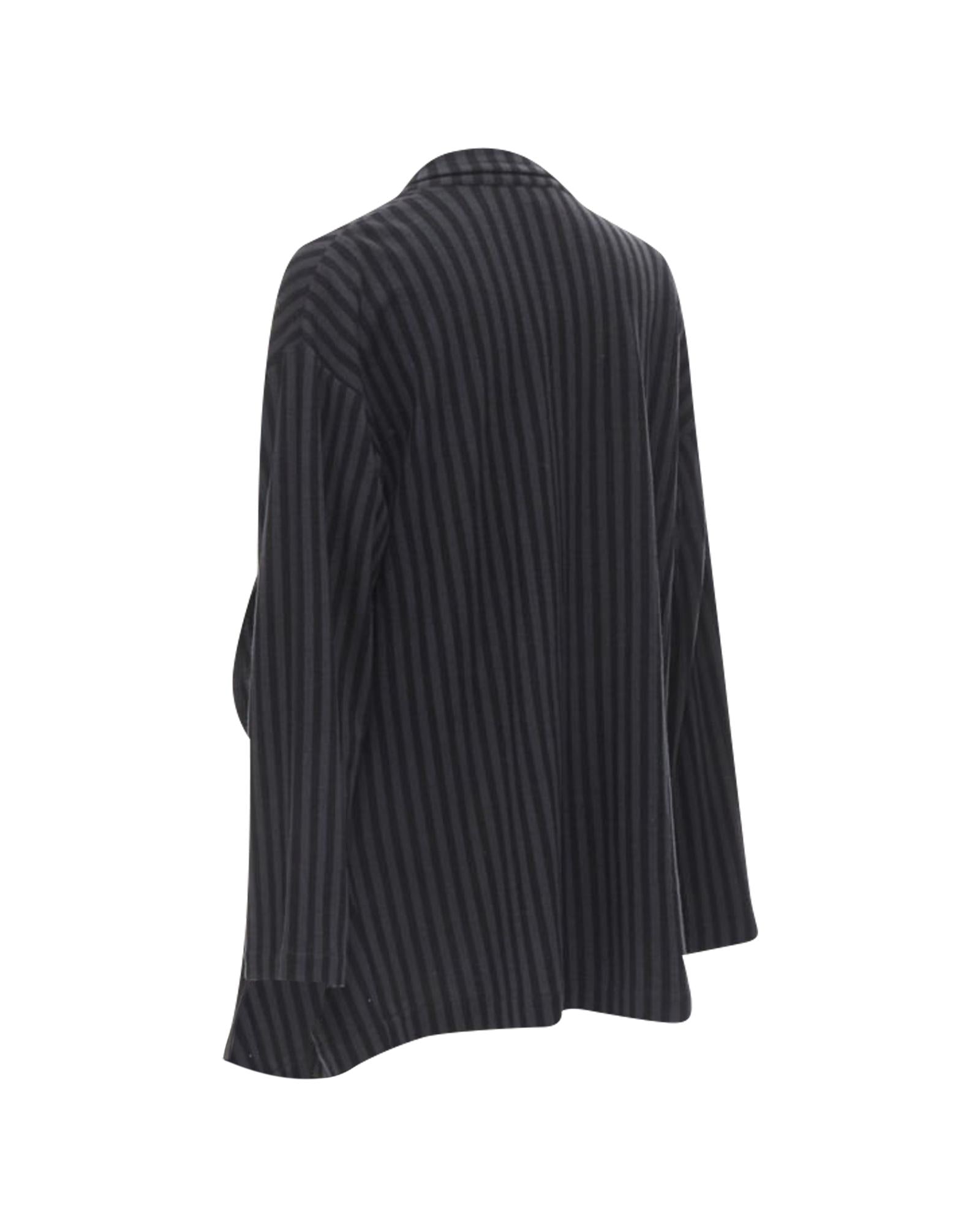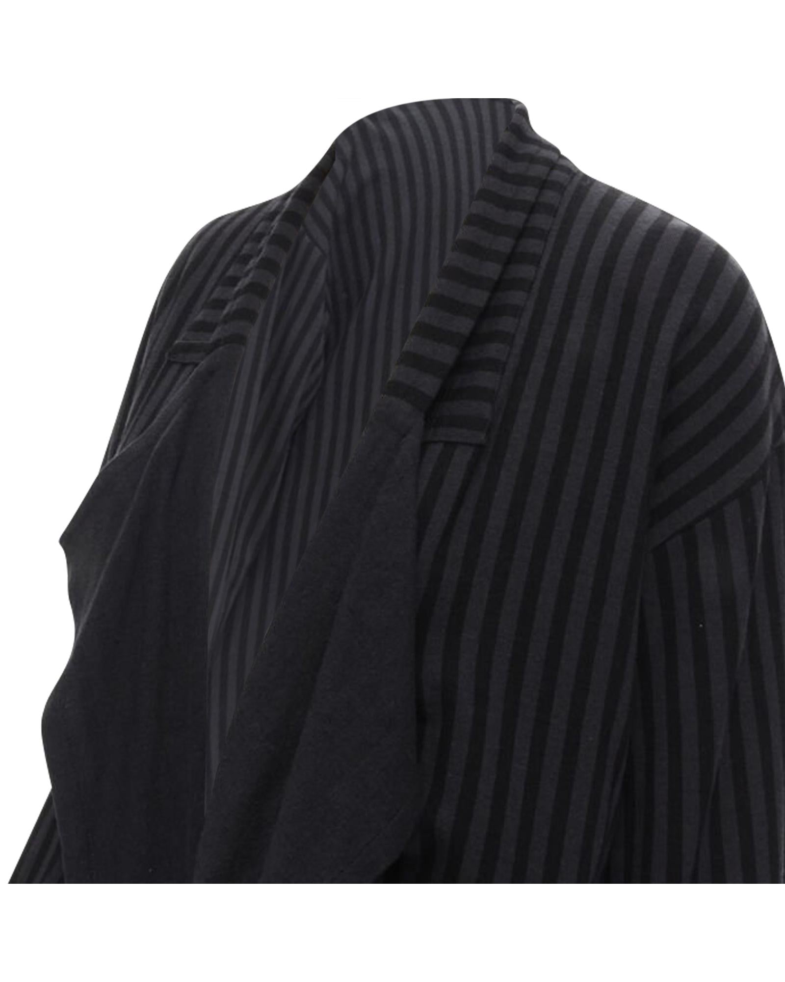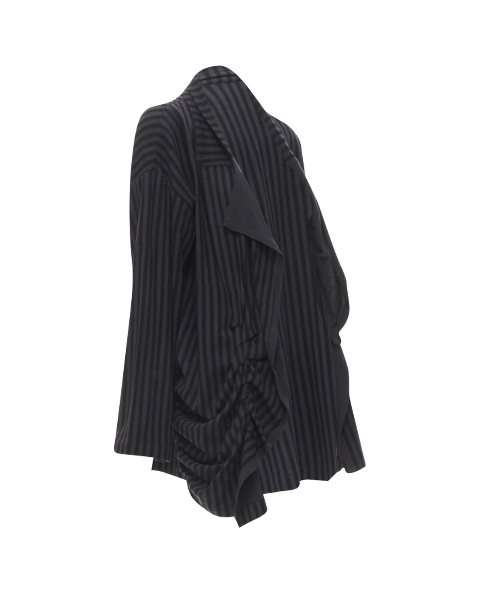 Pre-owned Striped Open Front Cardigan with Draped Detail and Pockets