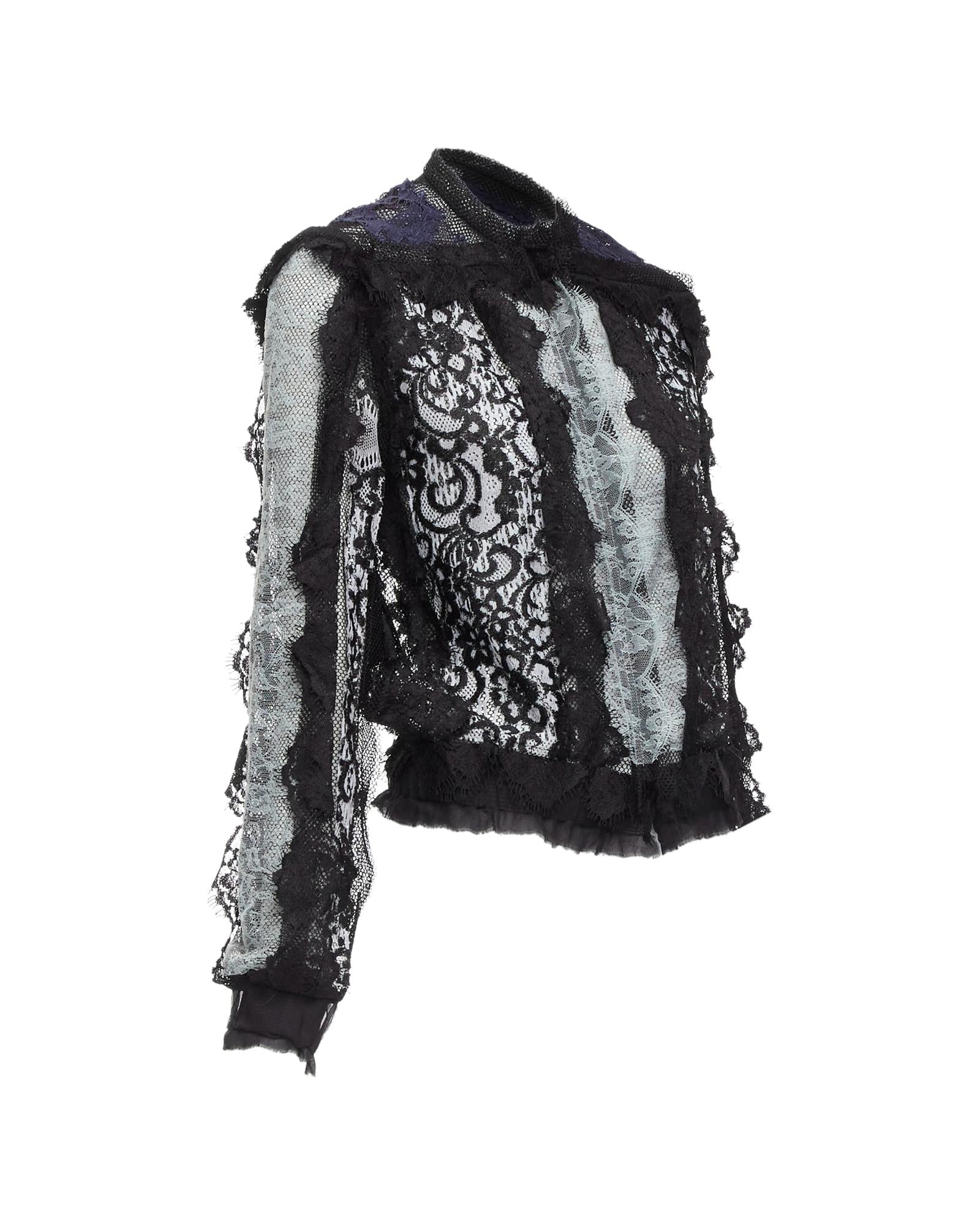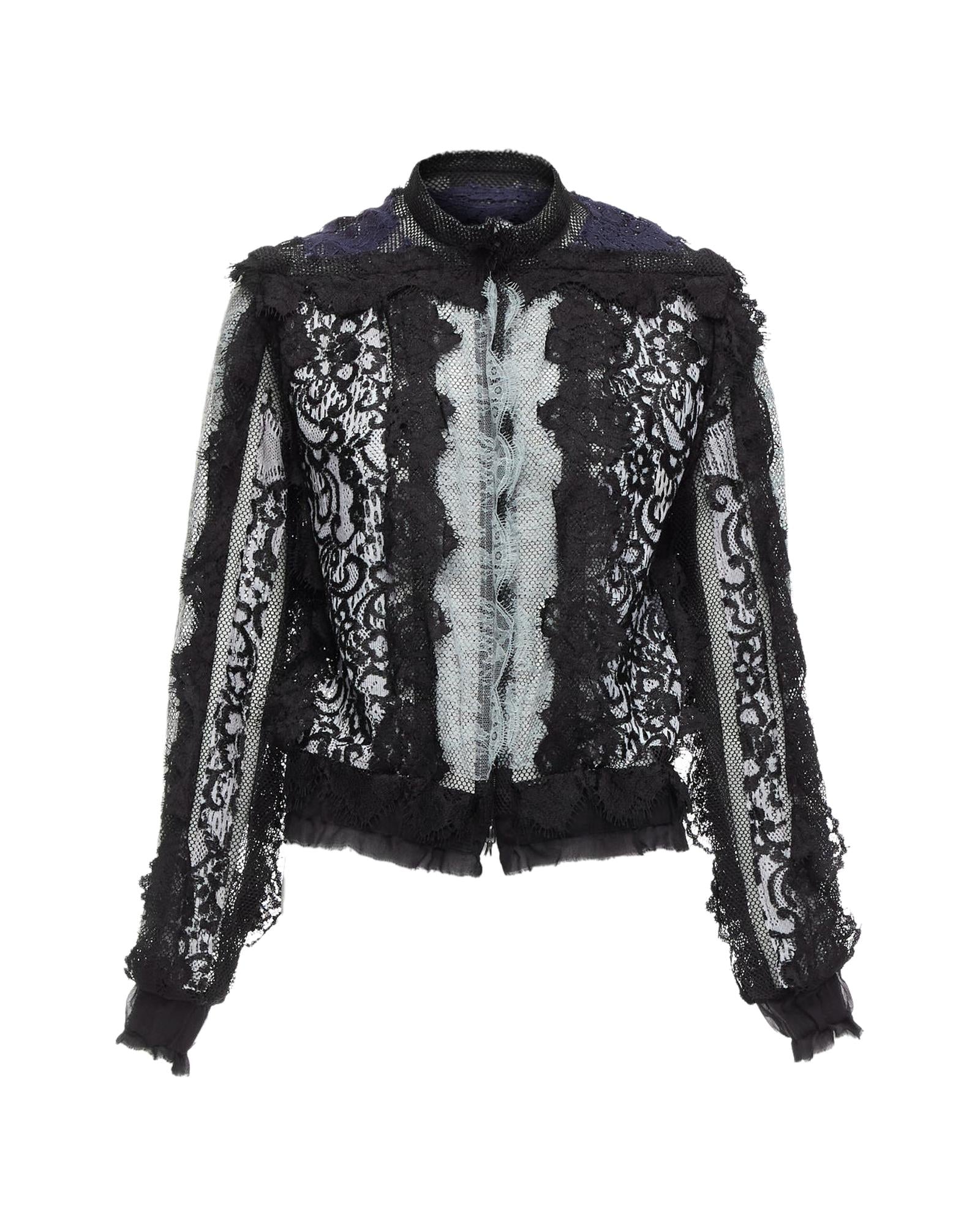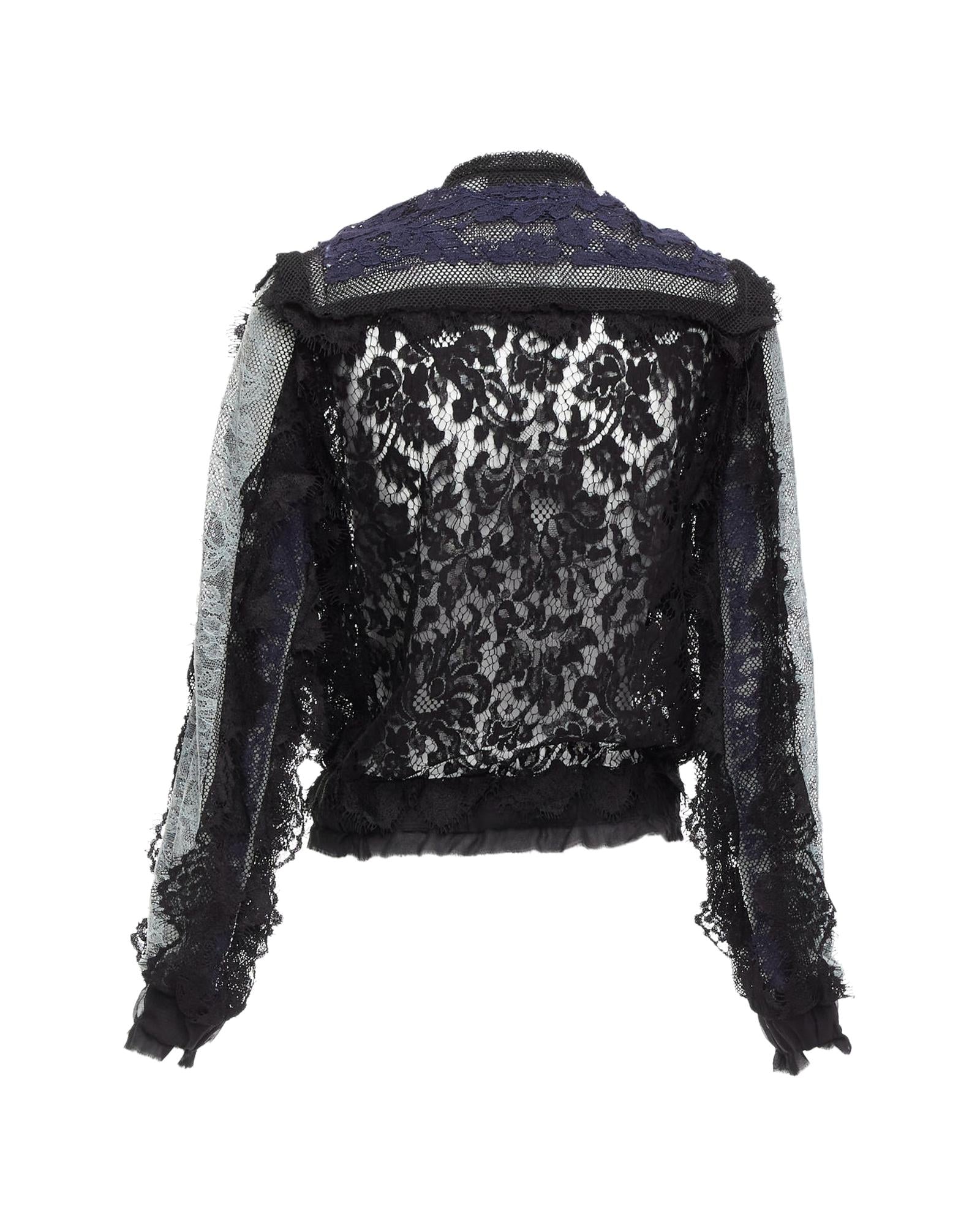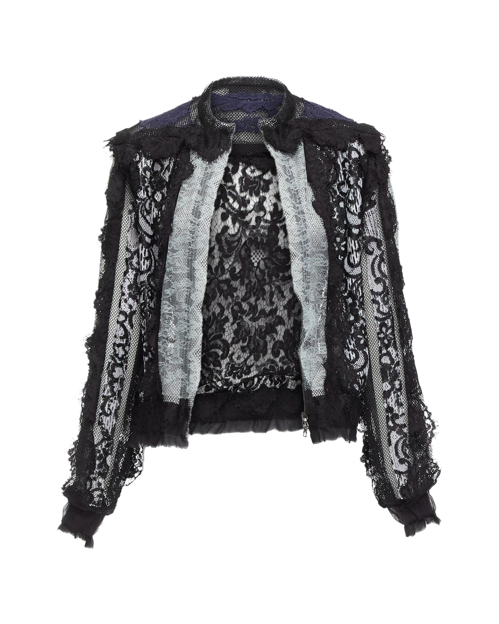 Pre-owned Elegant Lace Jacket with Full Zip Closure and Stylish Details