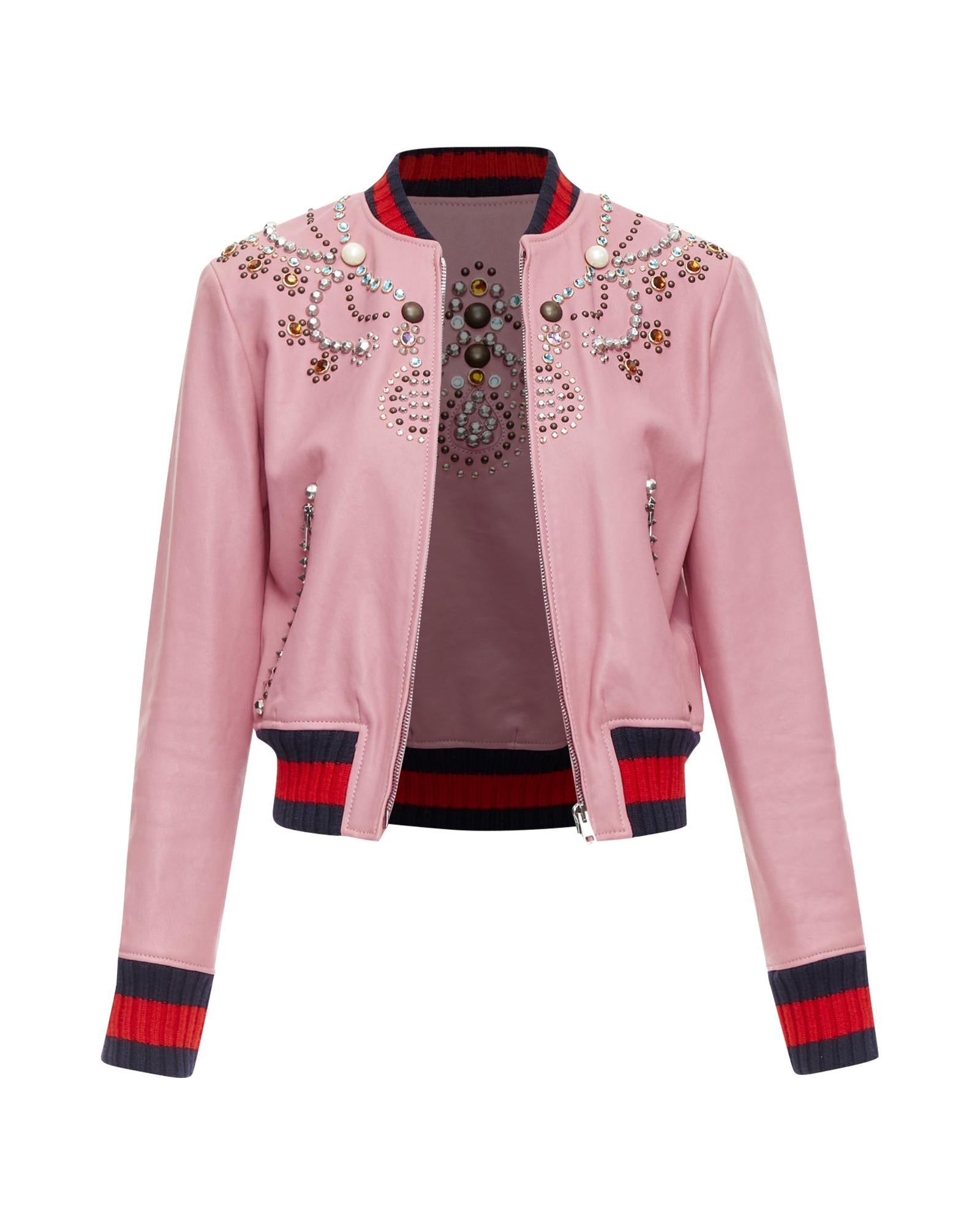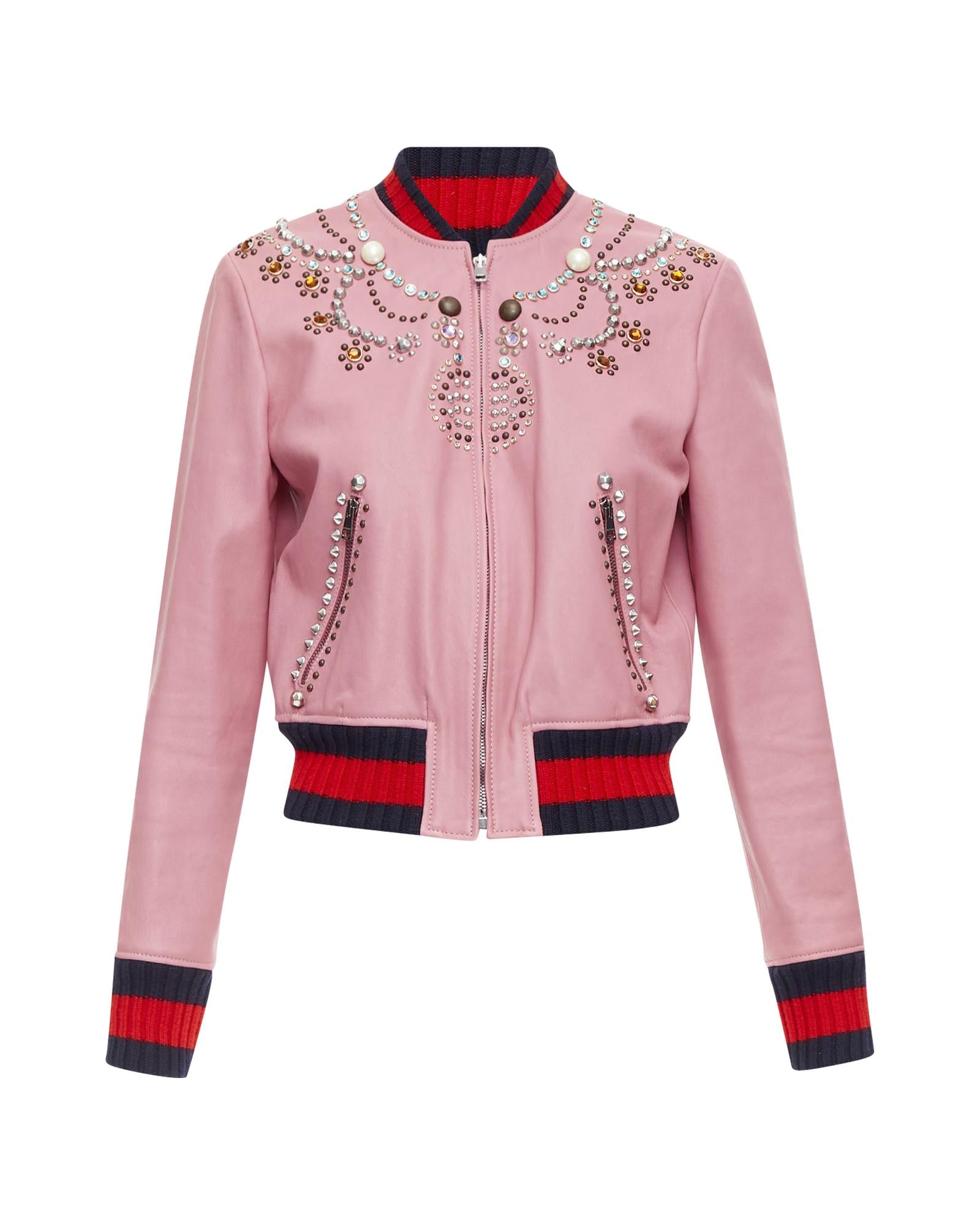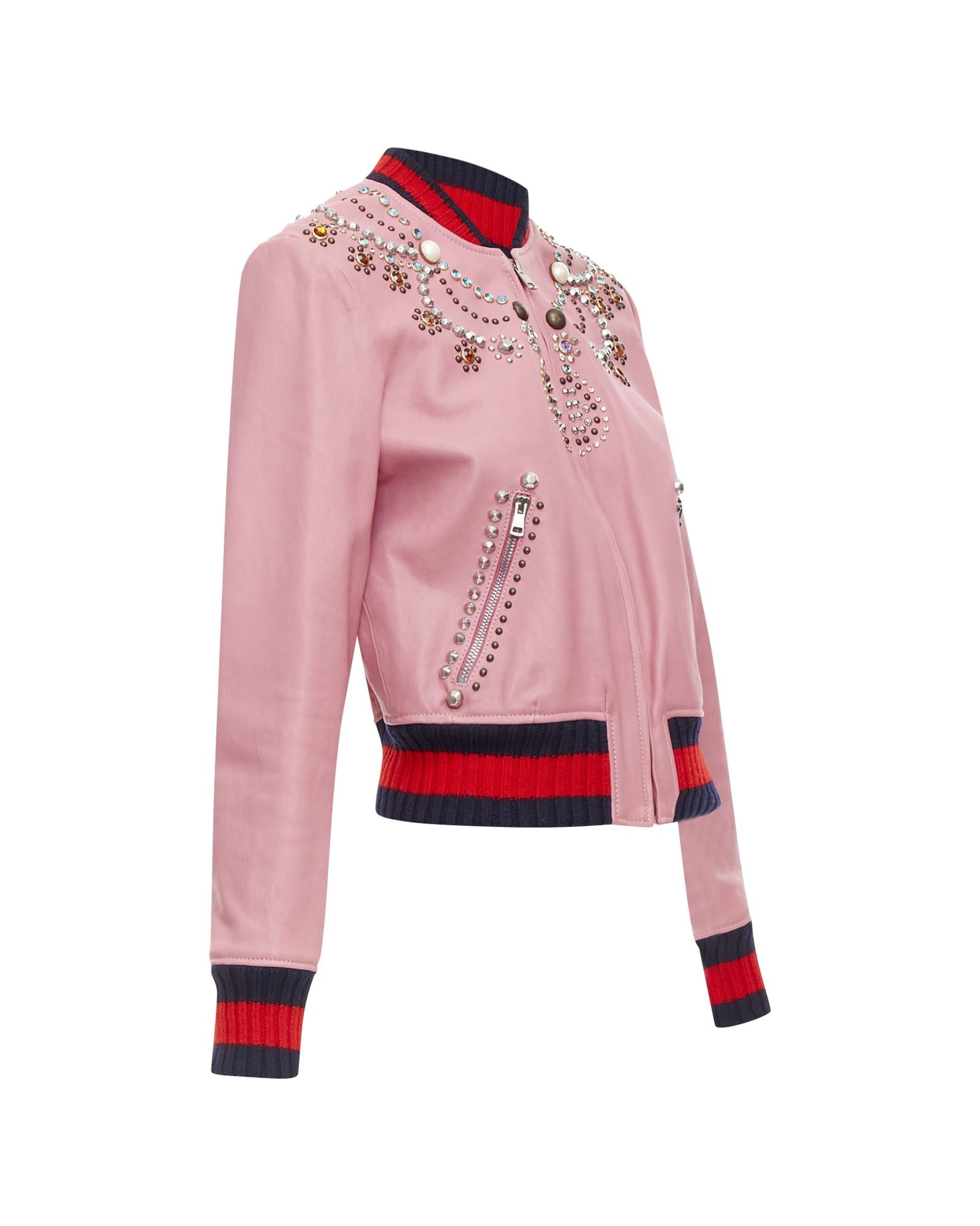 Pre-owned Embellished Leather Jacket with Zip Closure and Ribbed Details