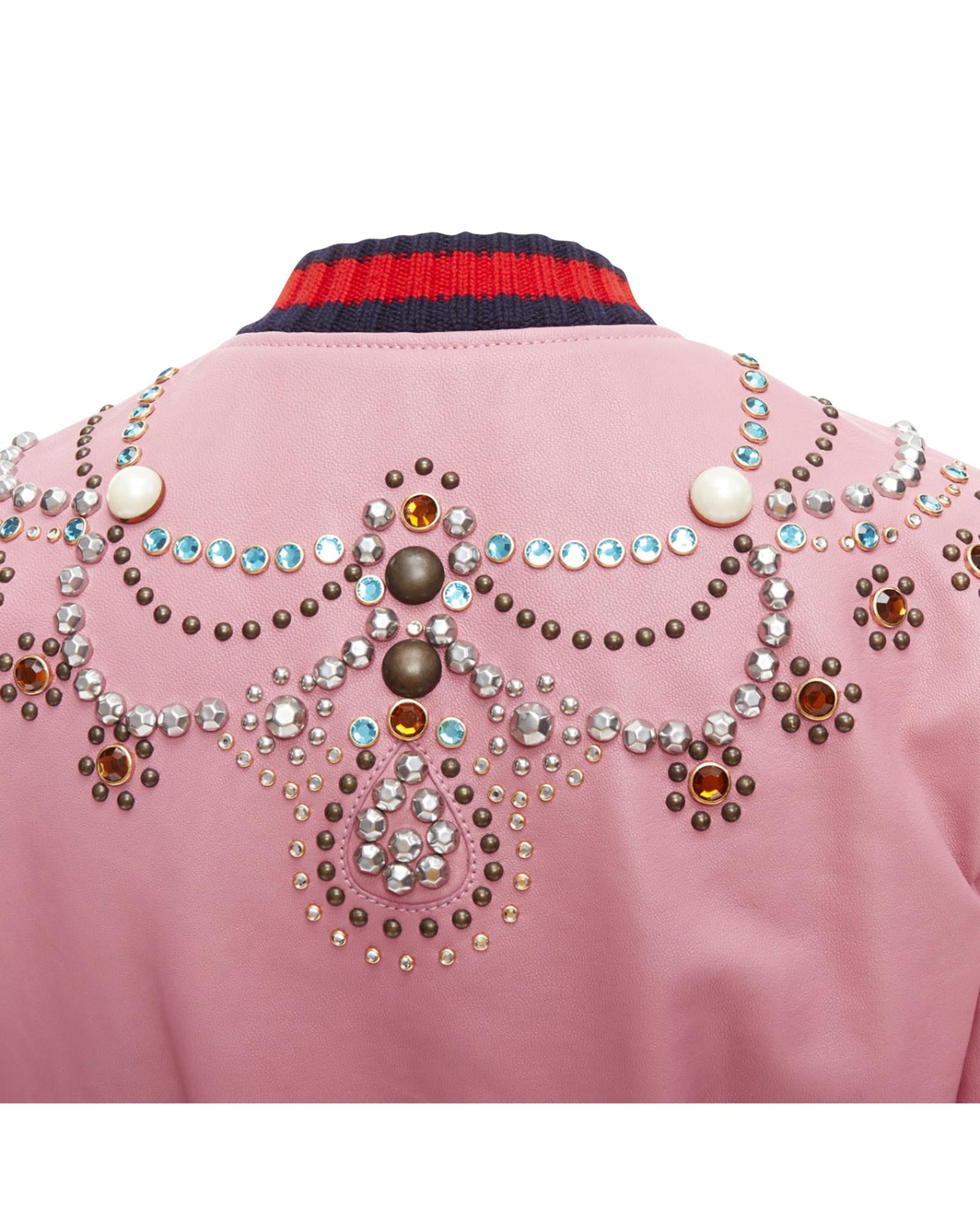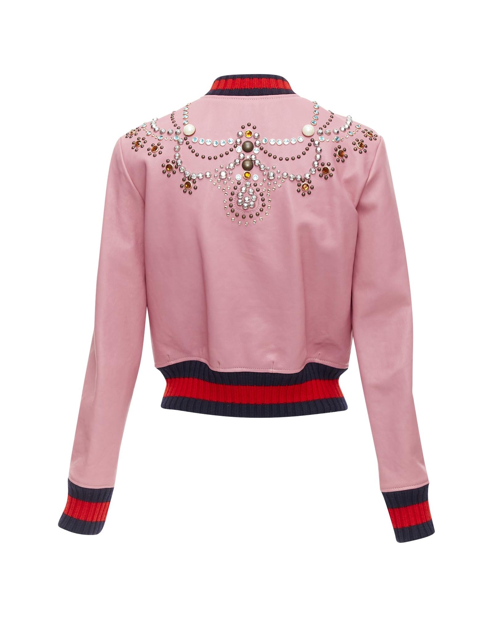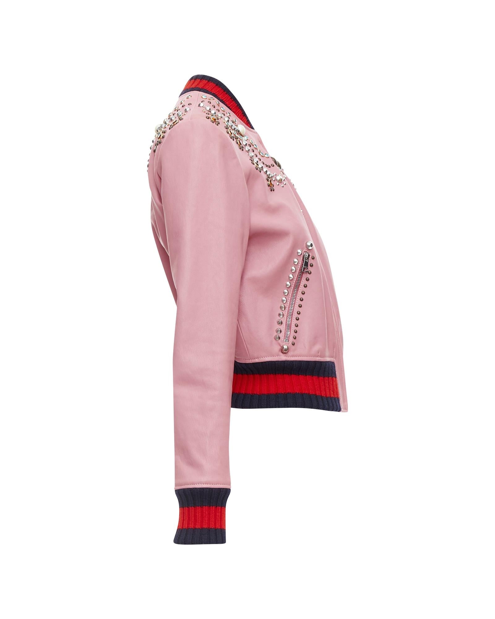 Pre-owned Embellished Leather Jacket with Zip Closure and Ribbed Details