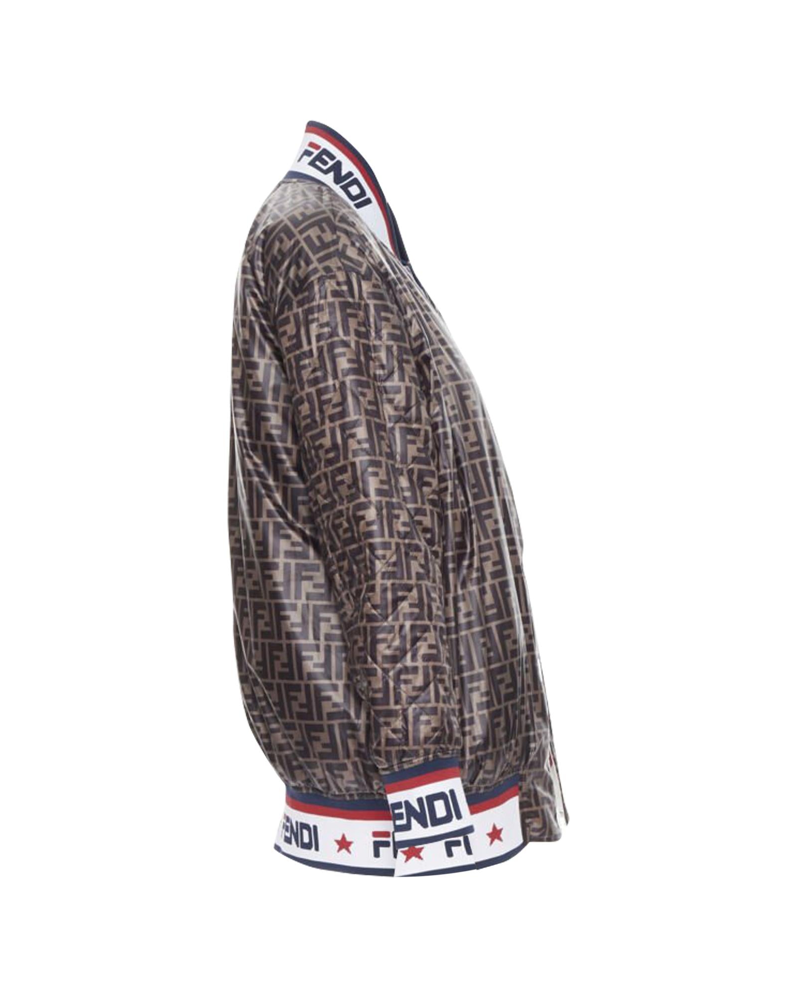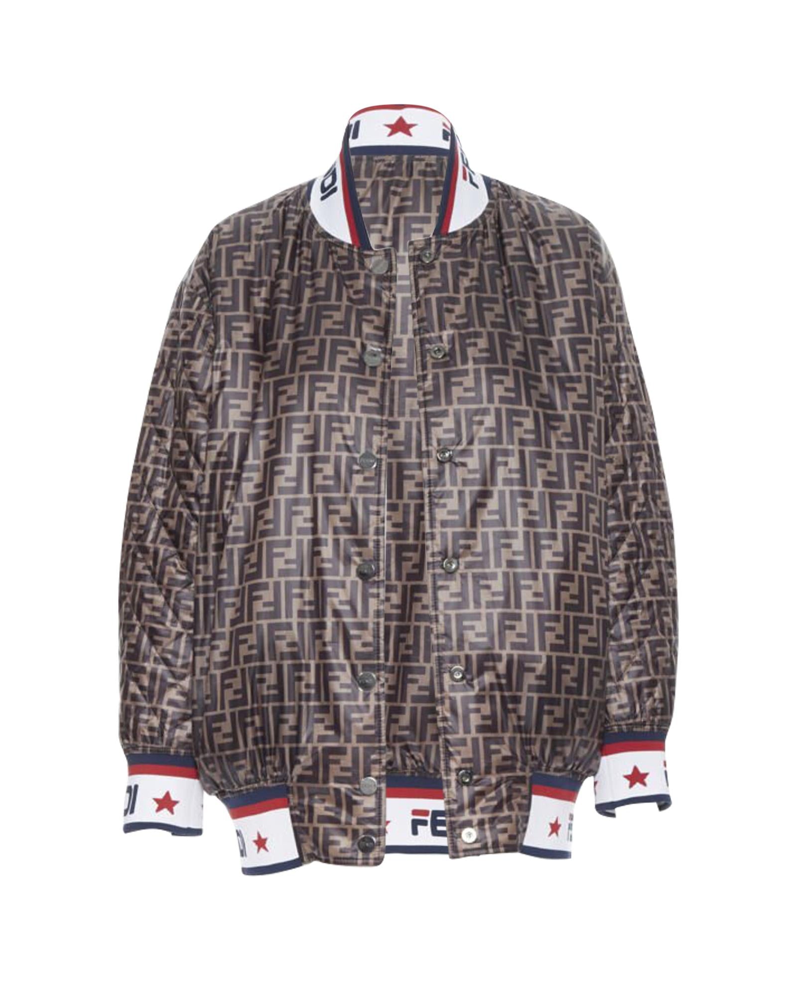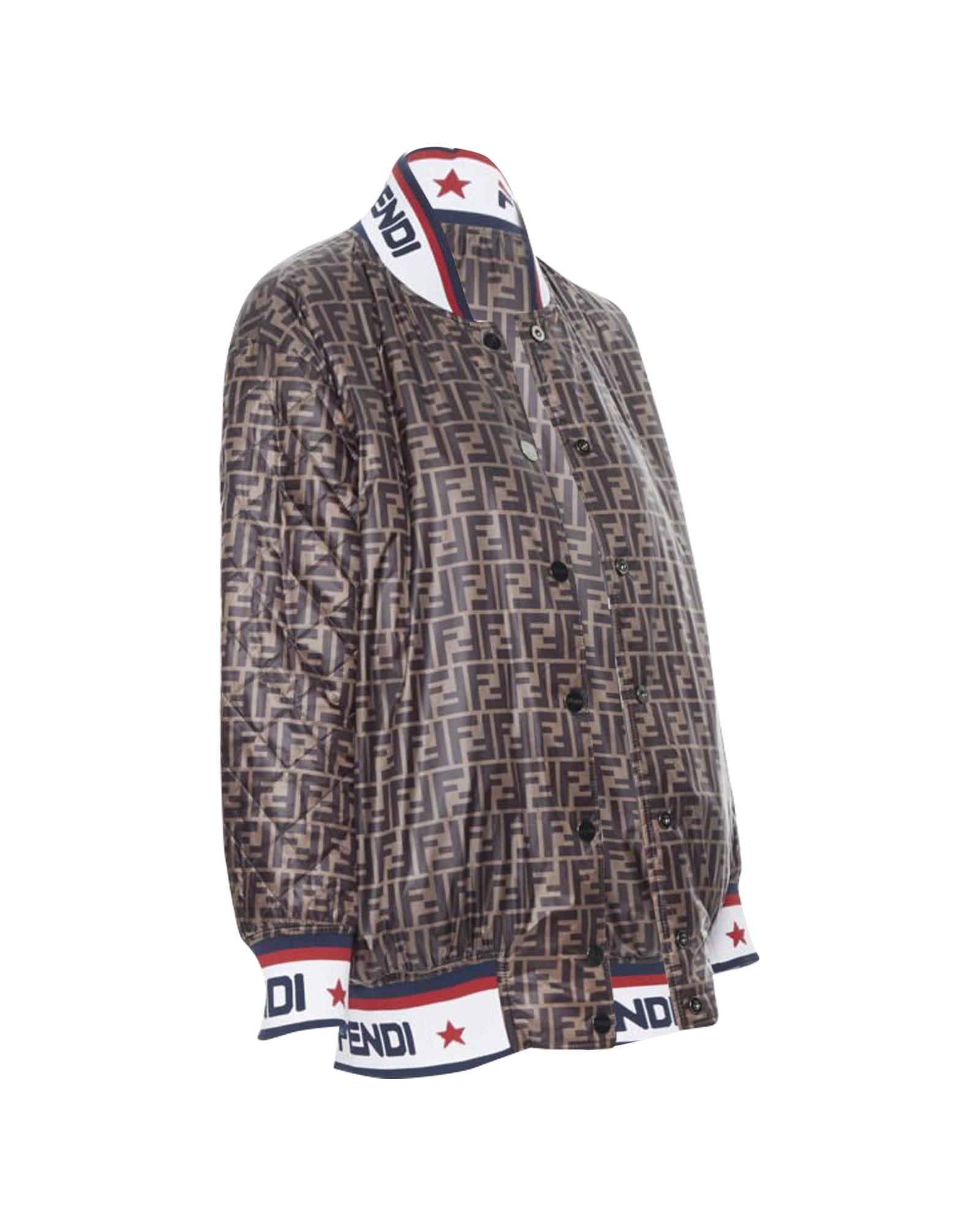 Printed Nylon Bomber Jacket with Ribbed Trim and Button Fastening