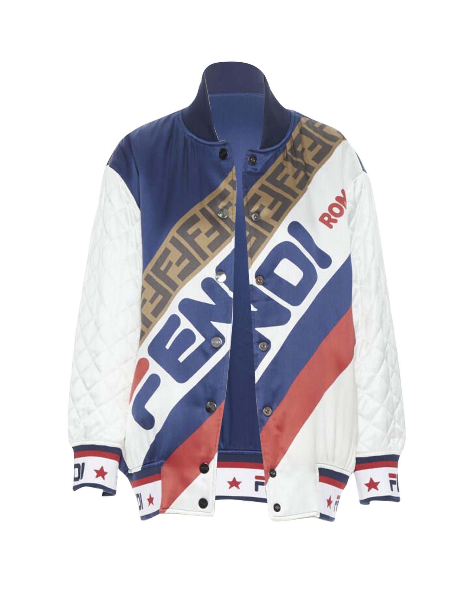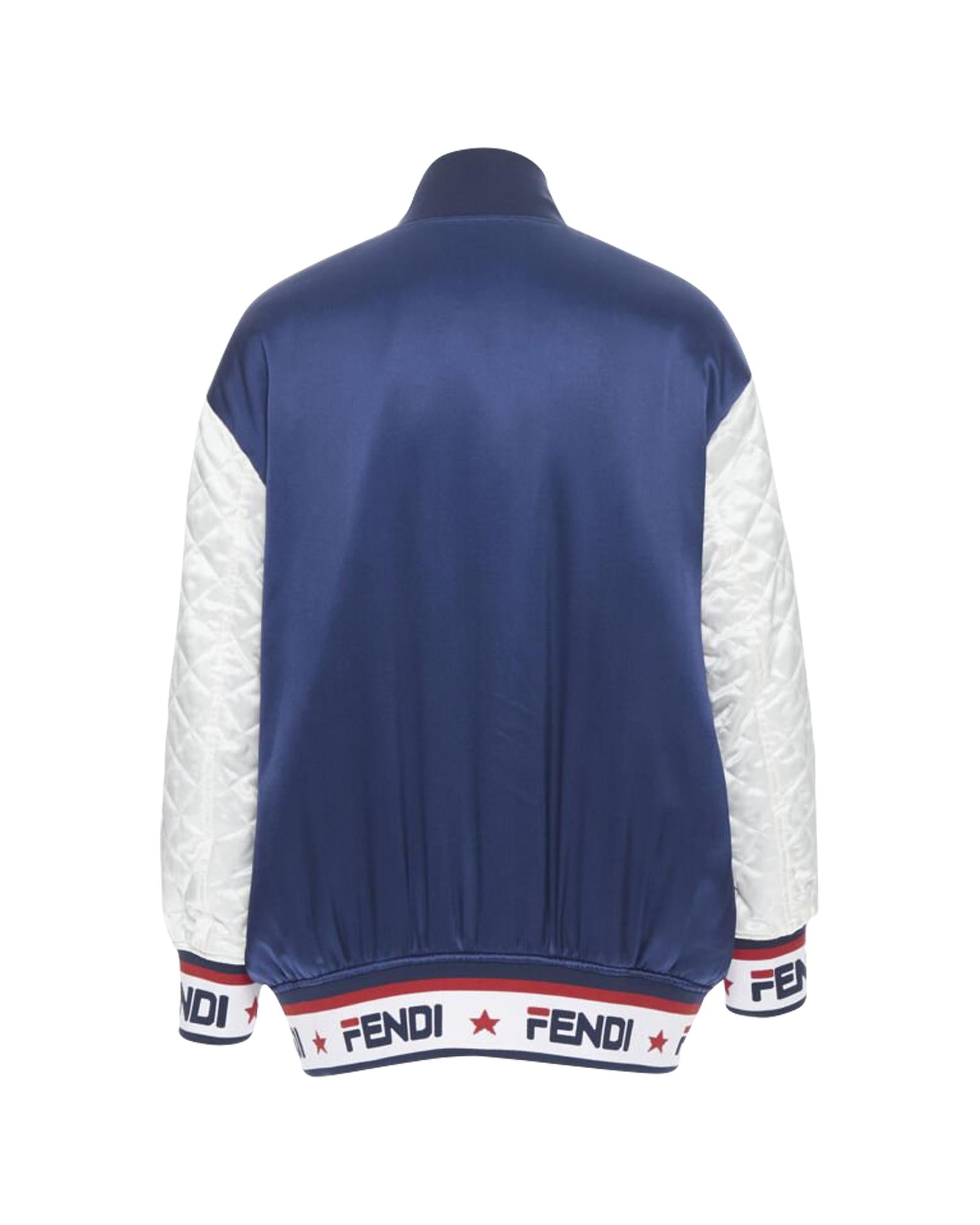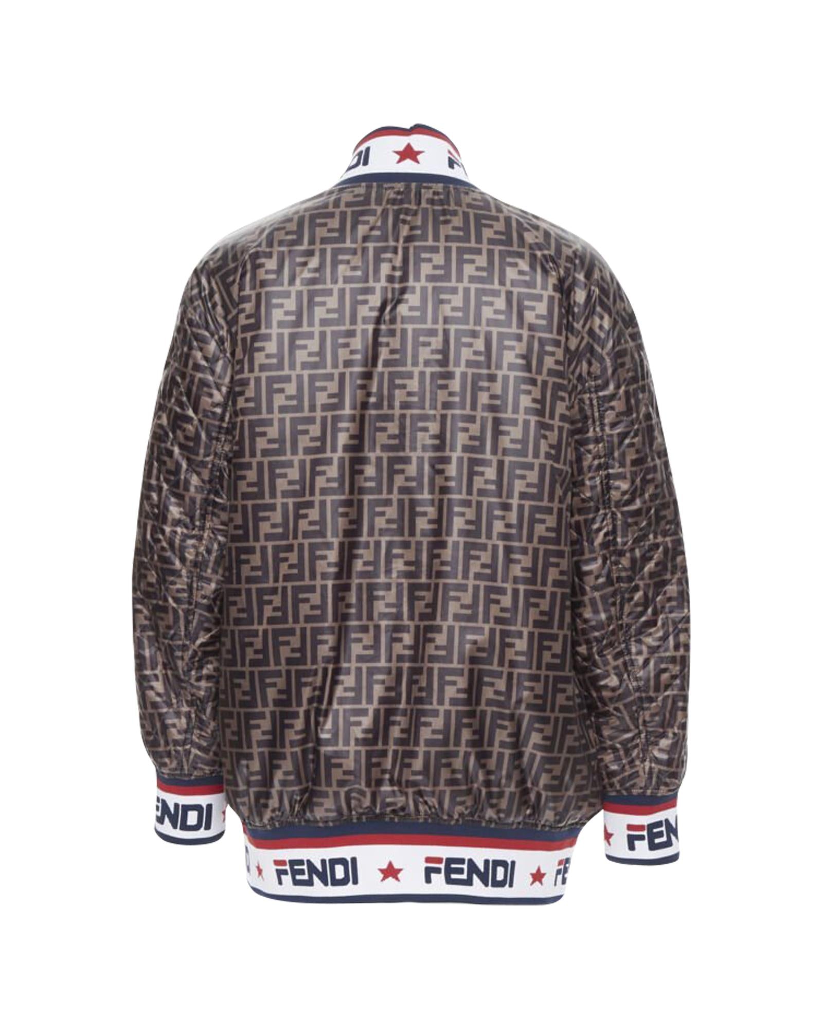 Printed Nylon Bomber Jacket with Ribbed Trim and Button Fastening