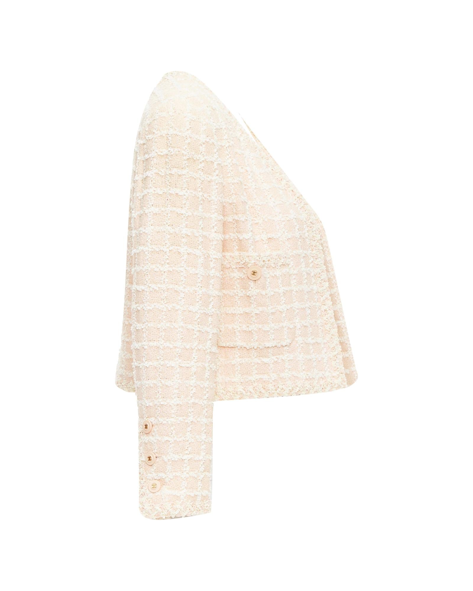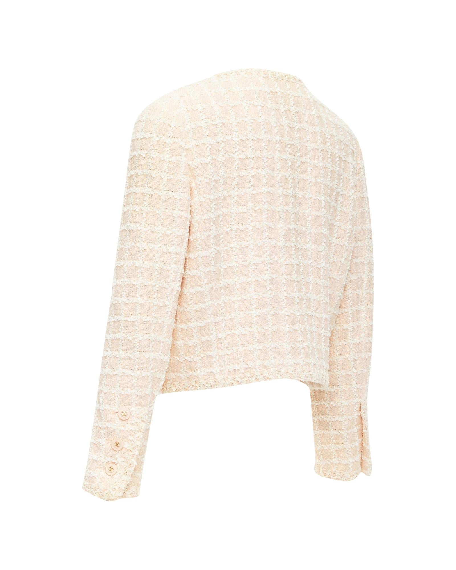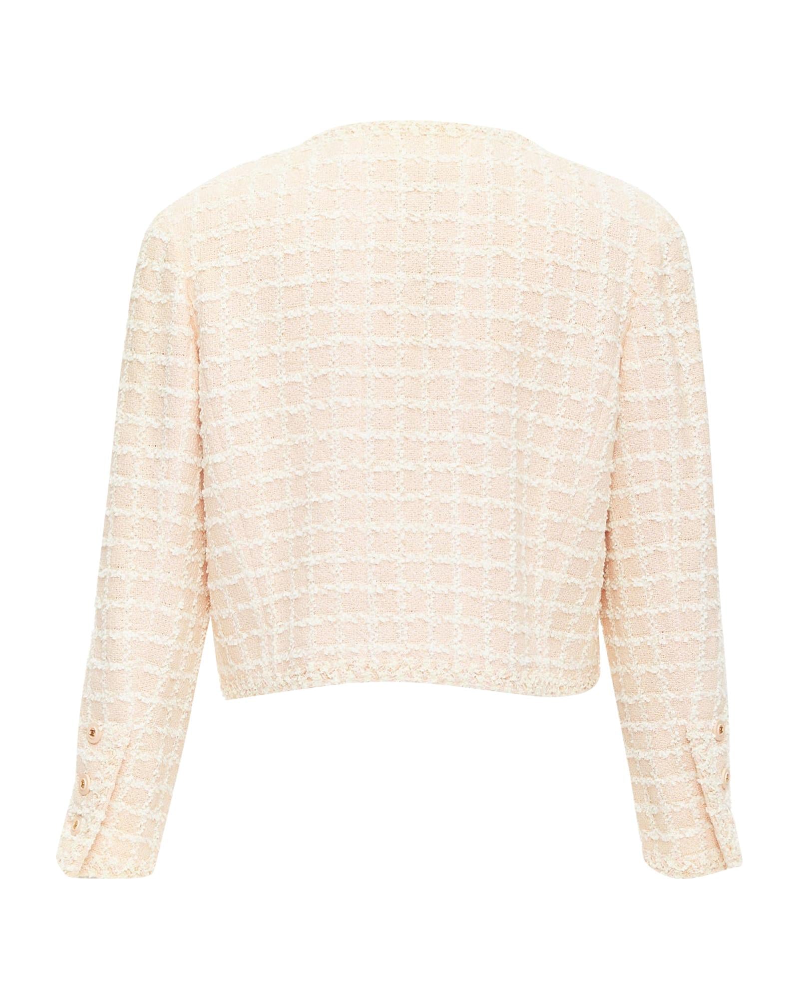 Pre-owned Elegant Boucle Jacket with Front Pockets and Long Sleeves