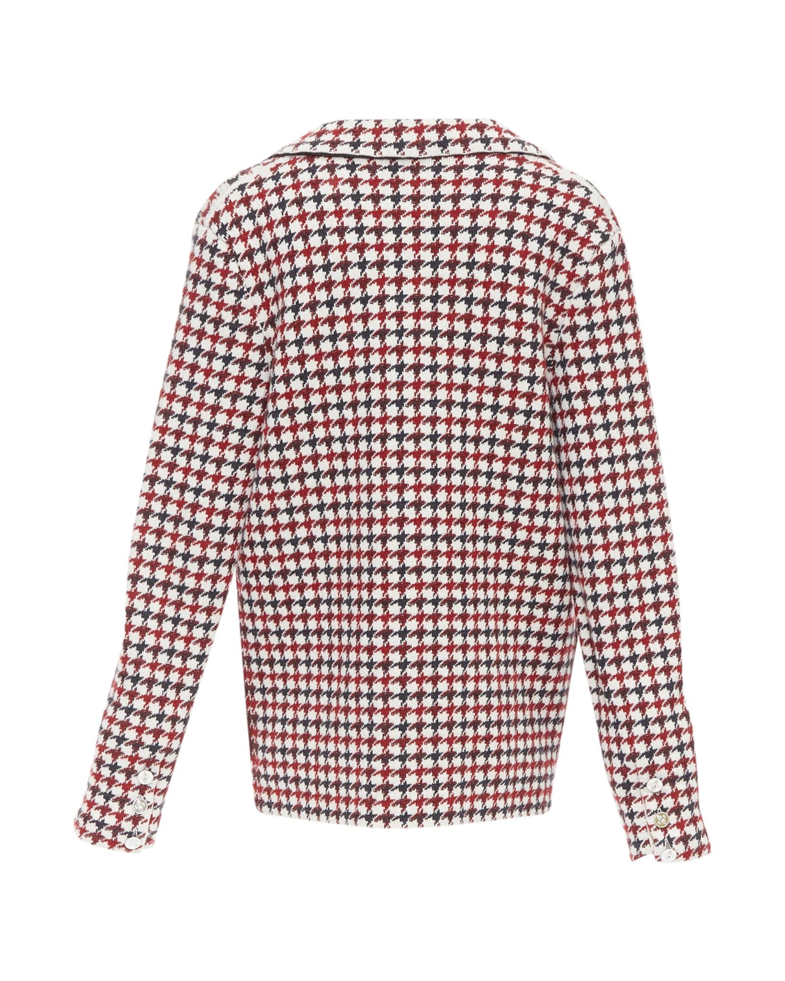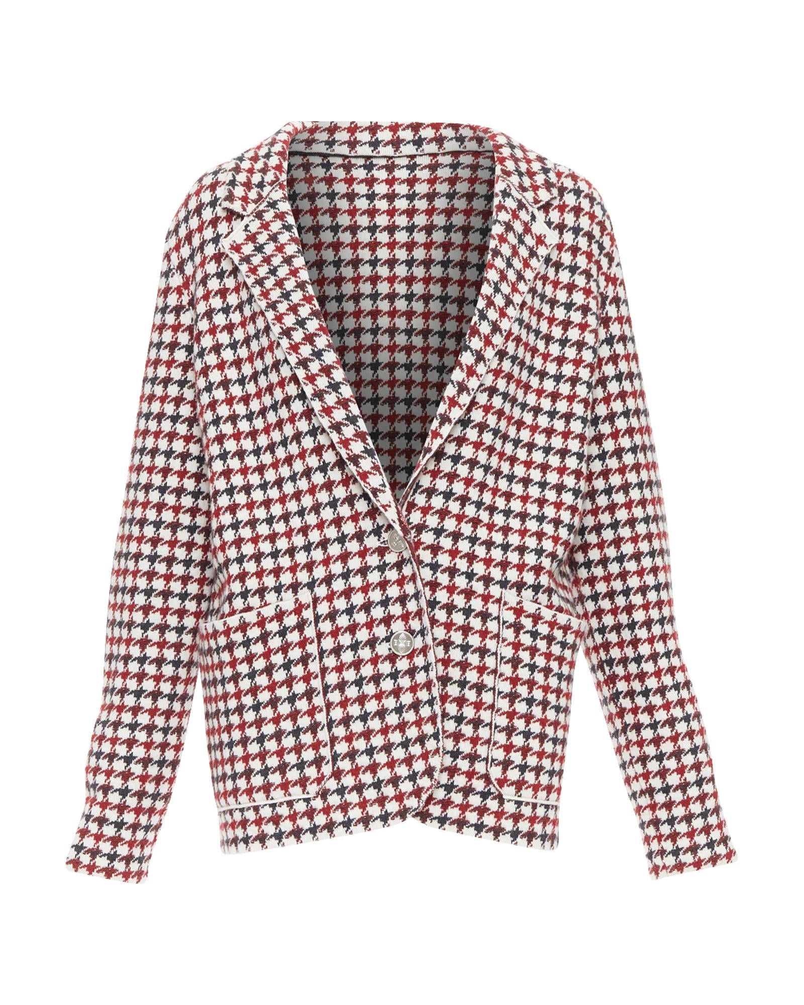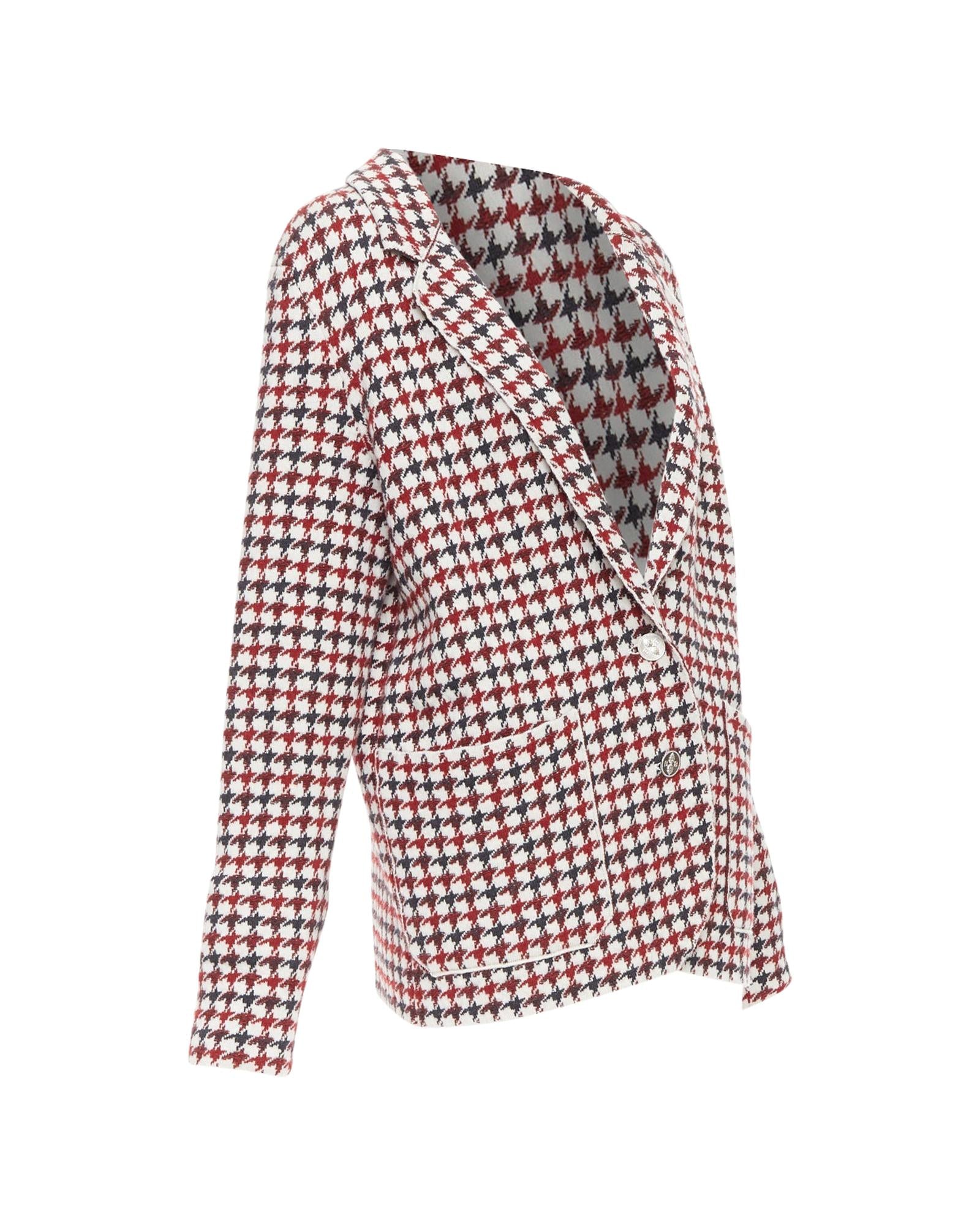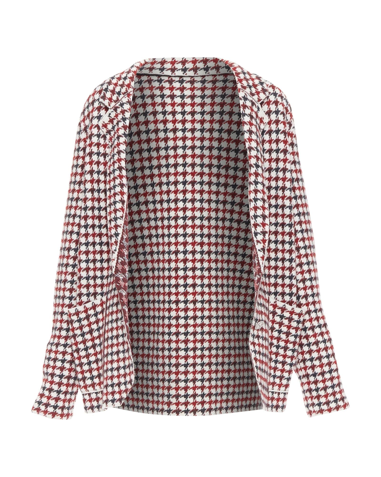 Pre-owned Elegant Houndstooth Blazer with Notched Lapels and Patch Pockets