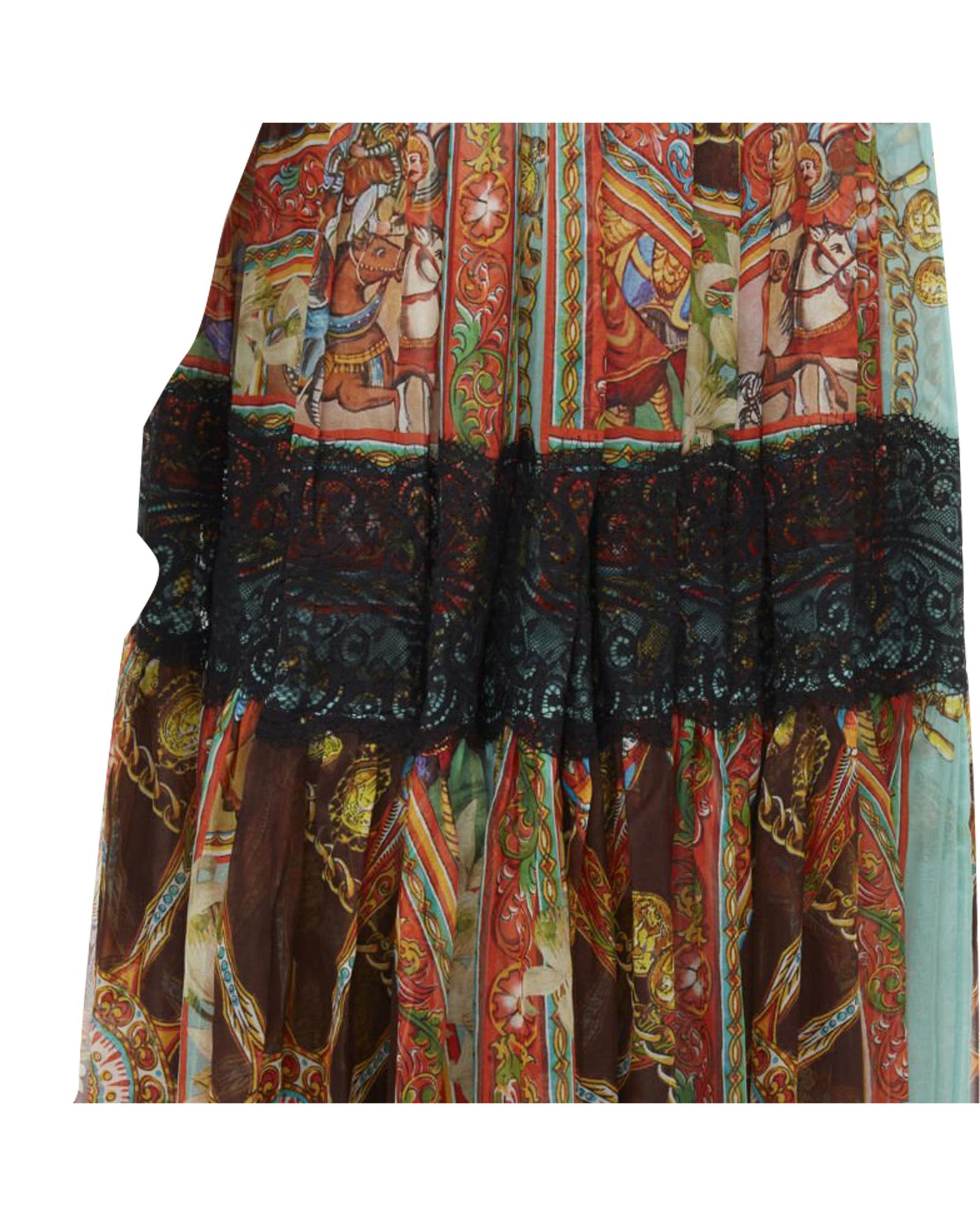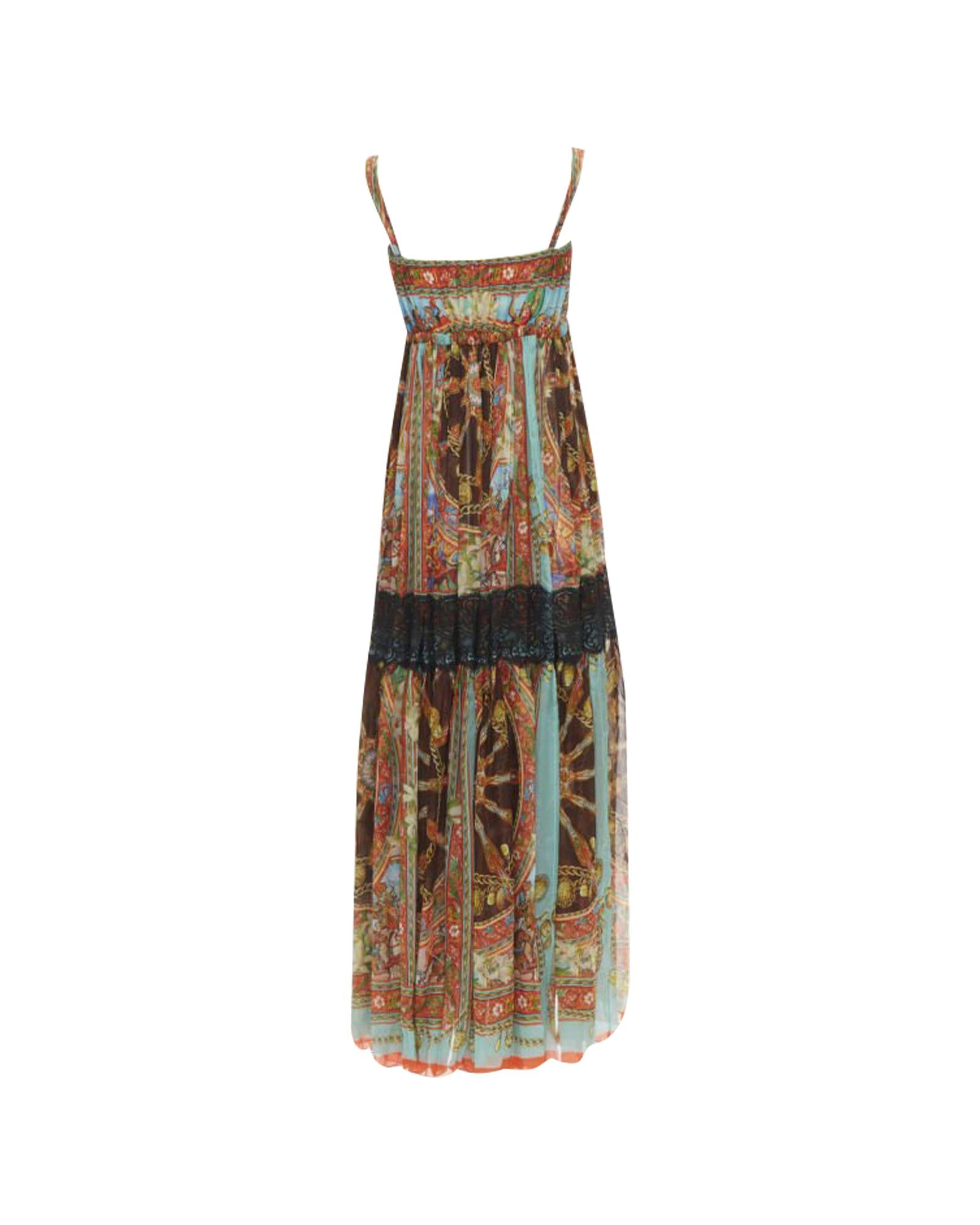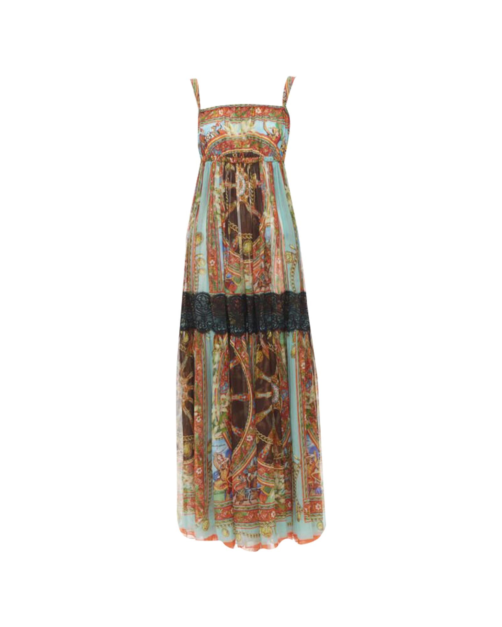 Pre-owned Elegant Printed Dress with Lace Detail Sleeveless and Comfortable for Various Occasions