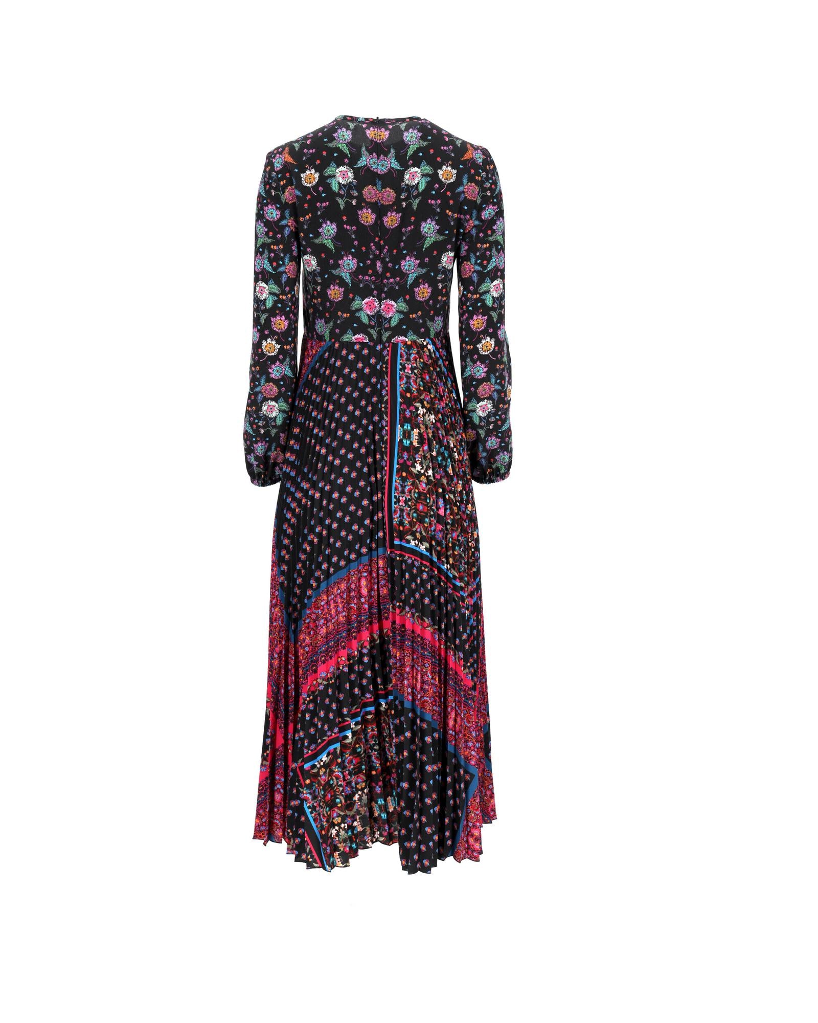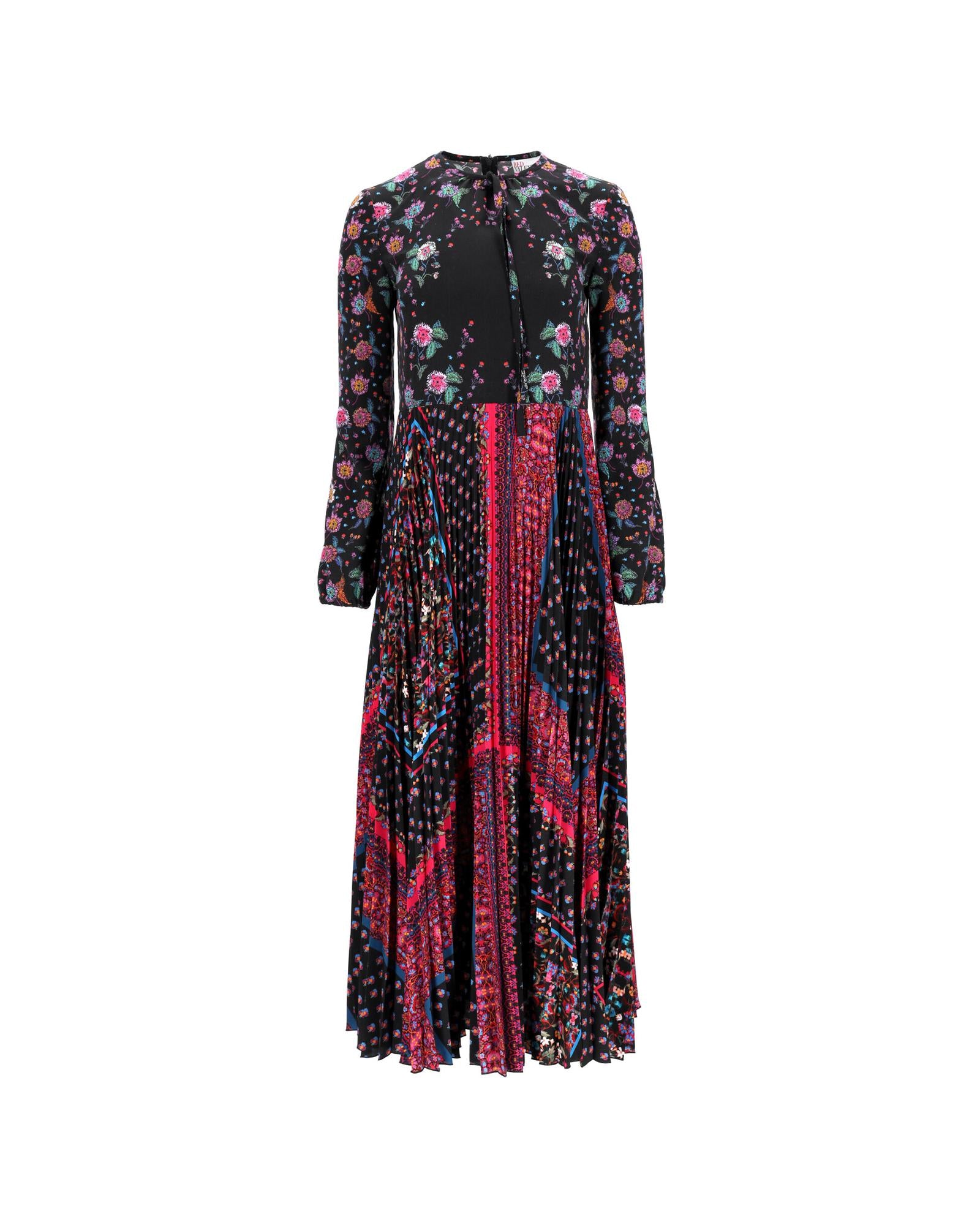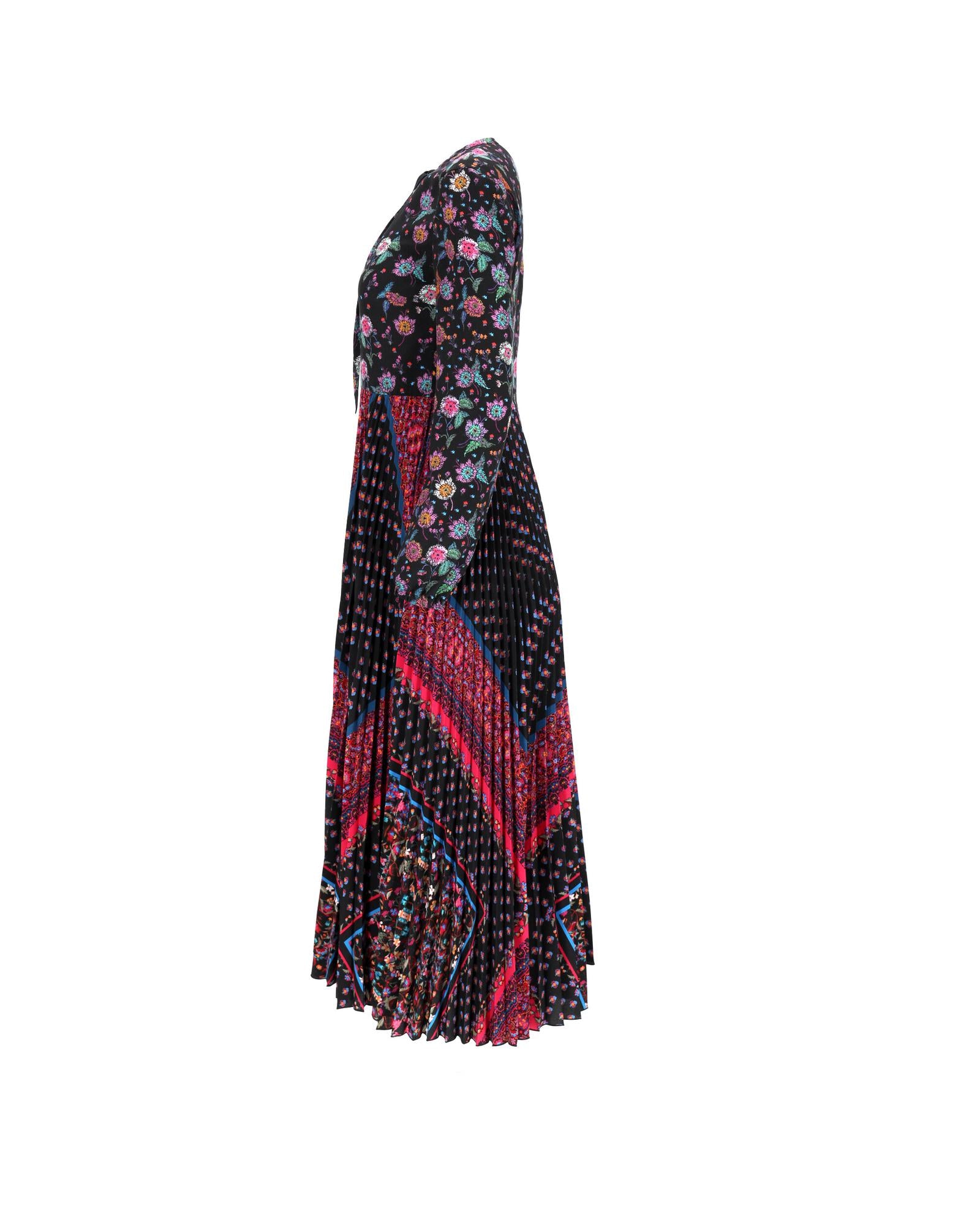 • Printed Pleated Maxi Dress in Multicolor Viscose
