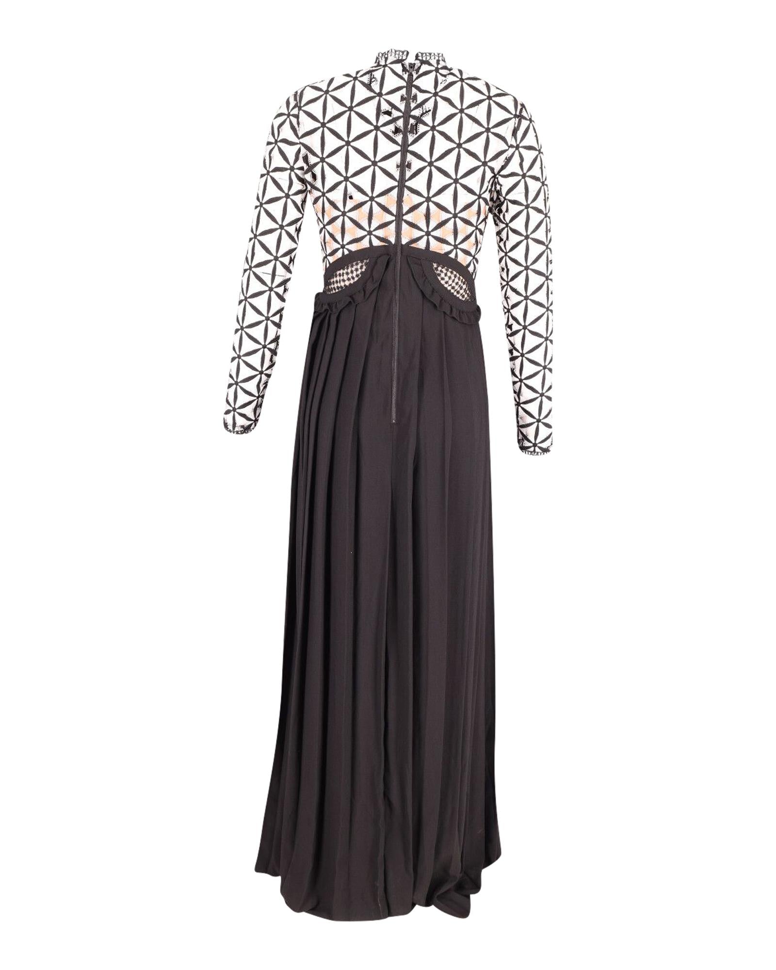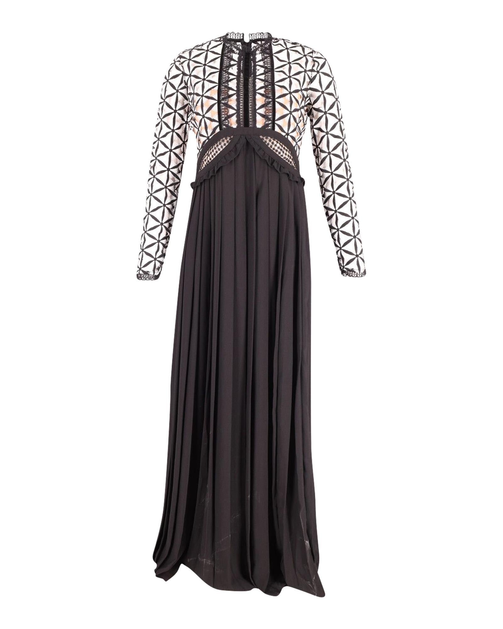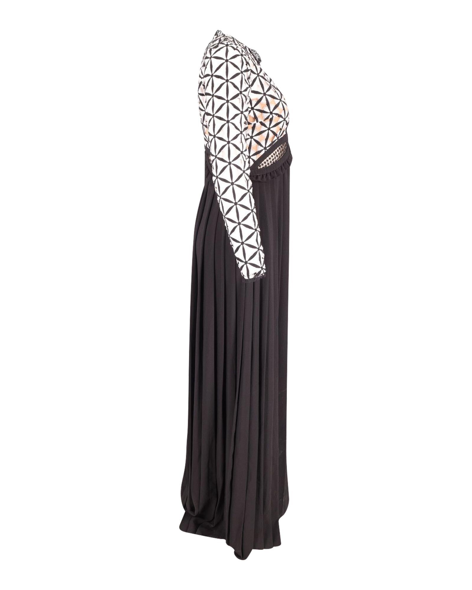 Pre-owned Pleated Maxi Dress Geometric Lace