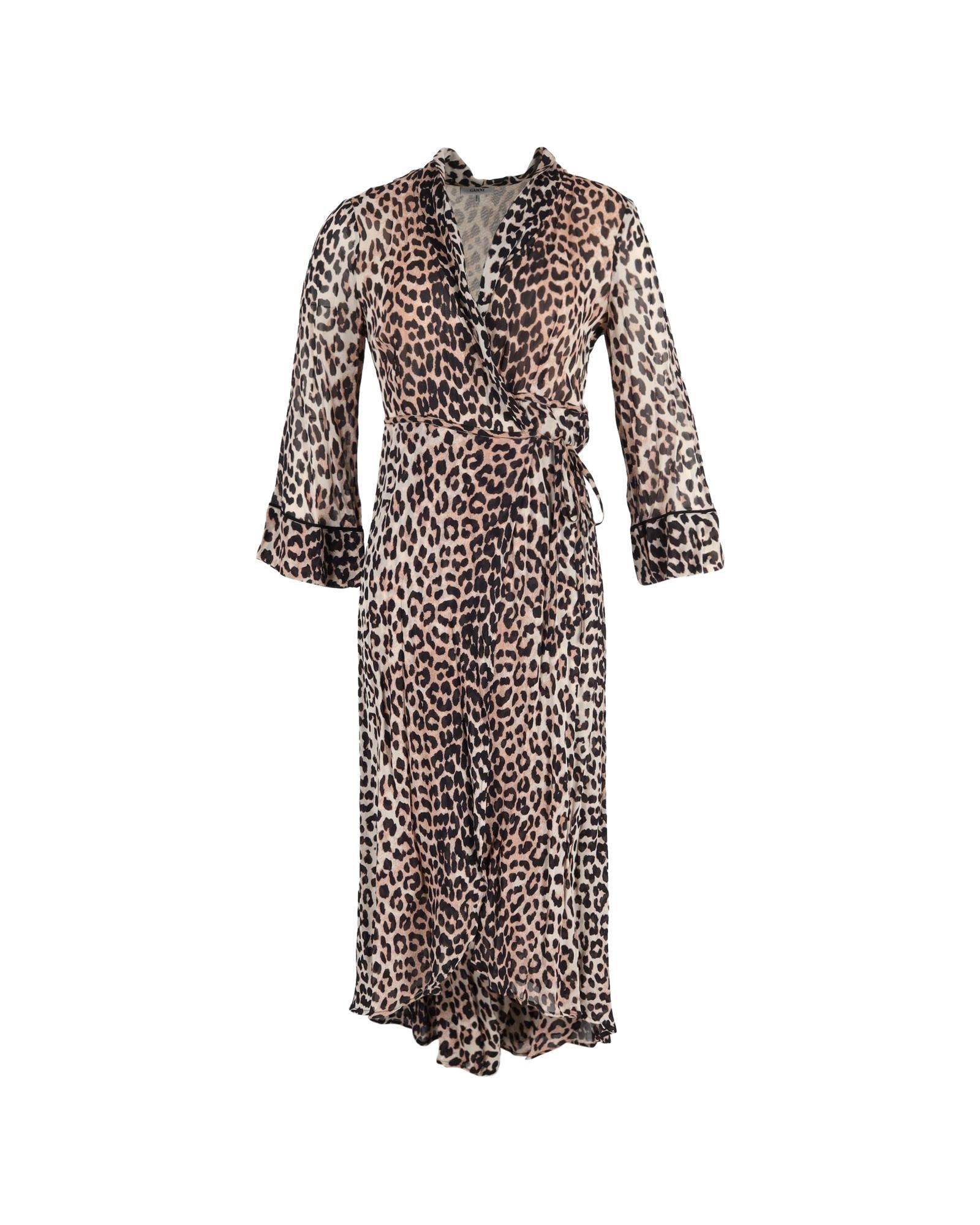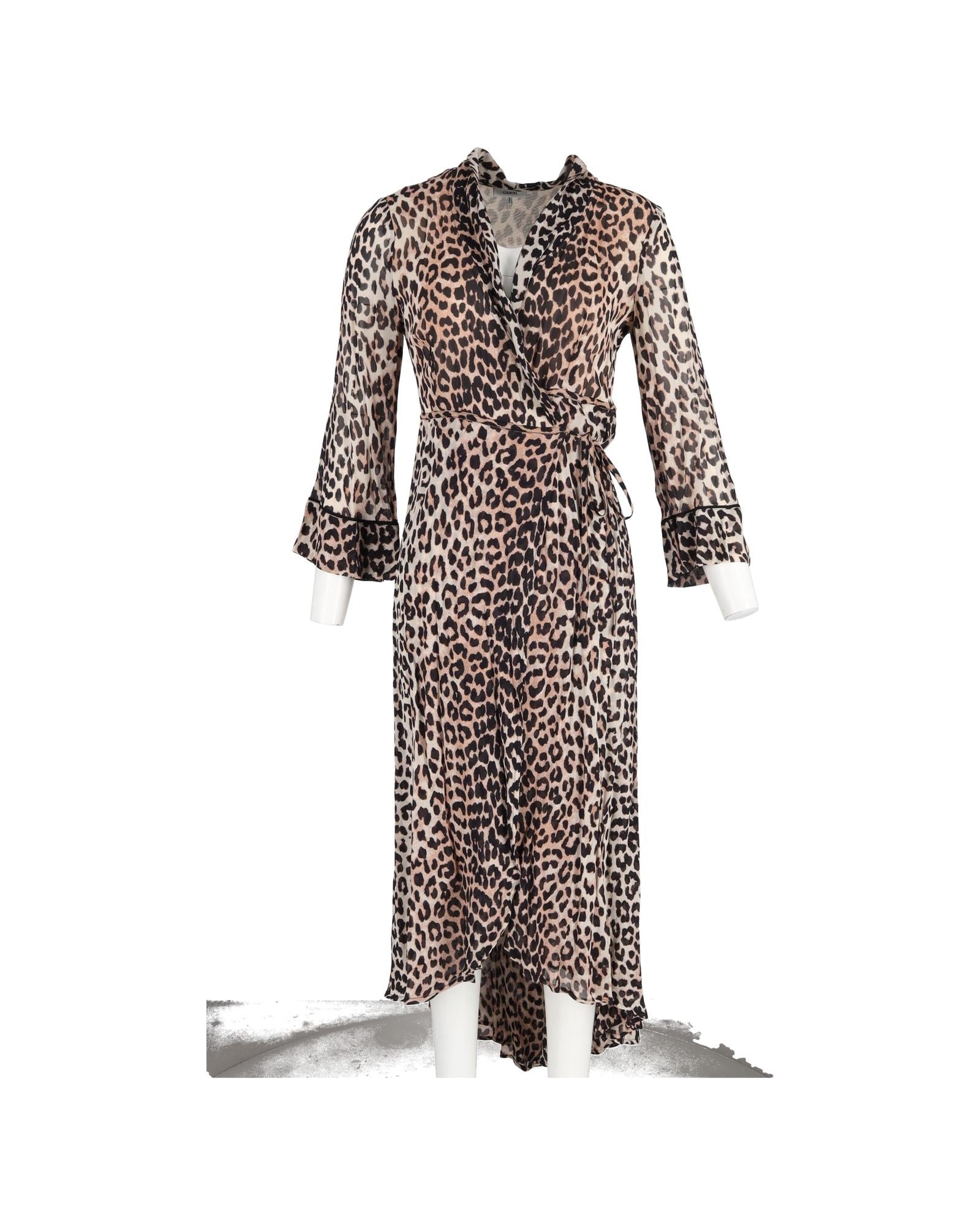 Pre-owned Leopard Print Wrap Dress HighLow Hem