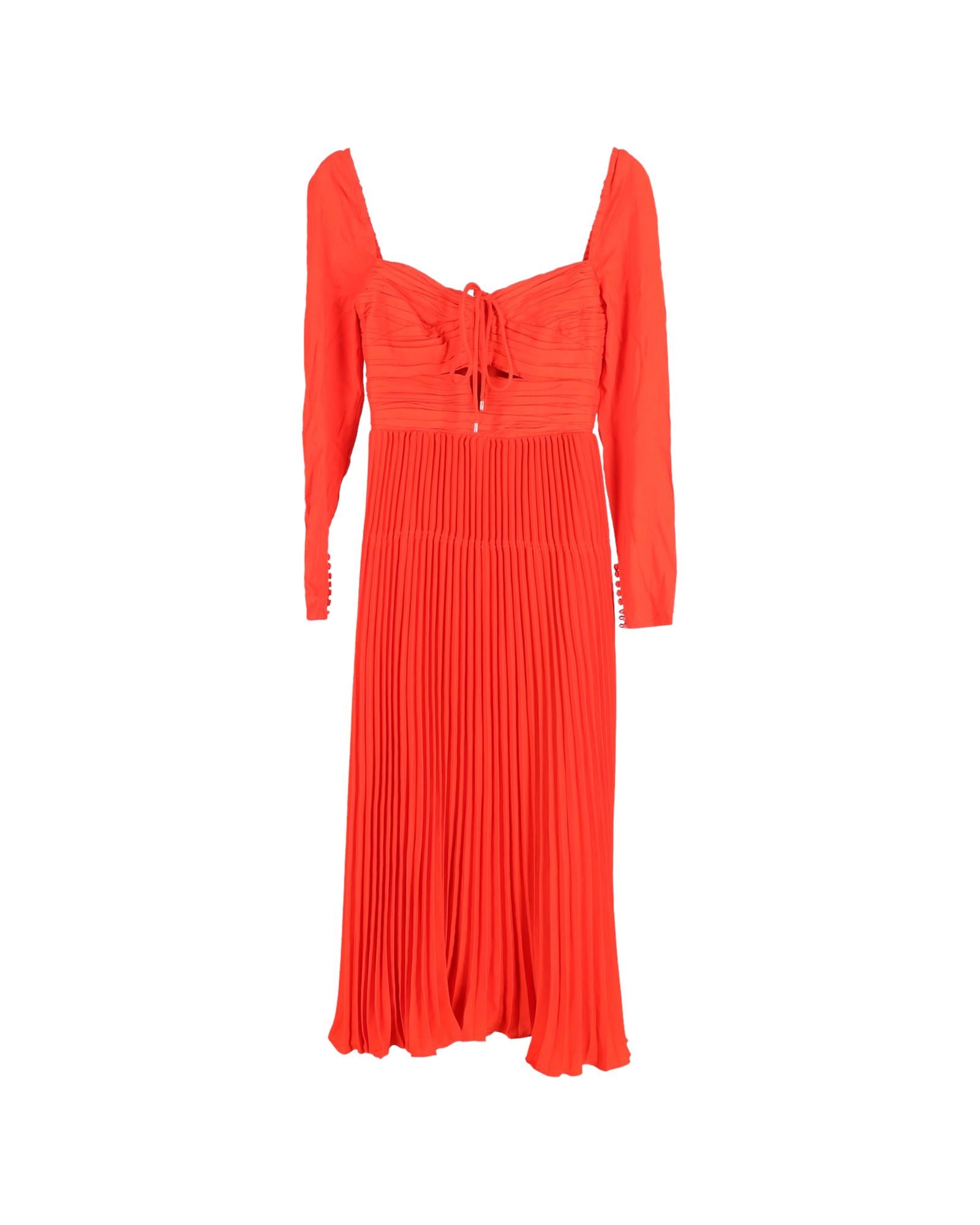 Pre-owned Pleated Midi Dress Sweetheart Neckline
